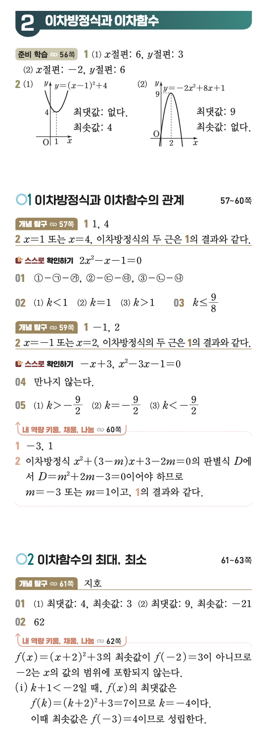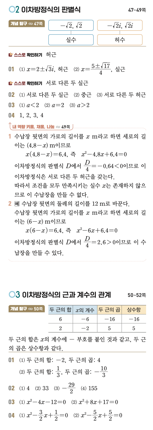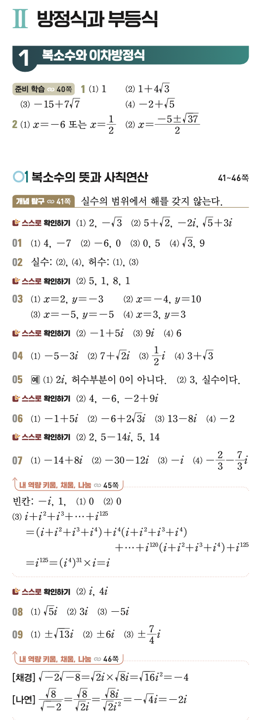 - 방정식과 부등식: 복소수와 이차방정식, 이차함수, 여러 가지 방정식과 부등식
