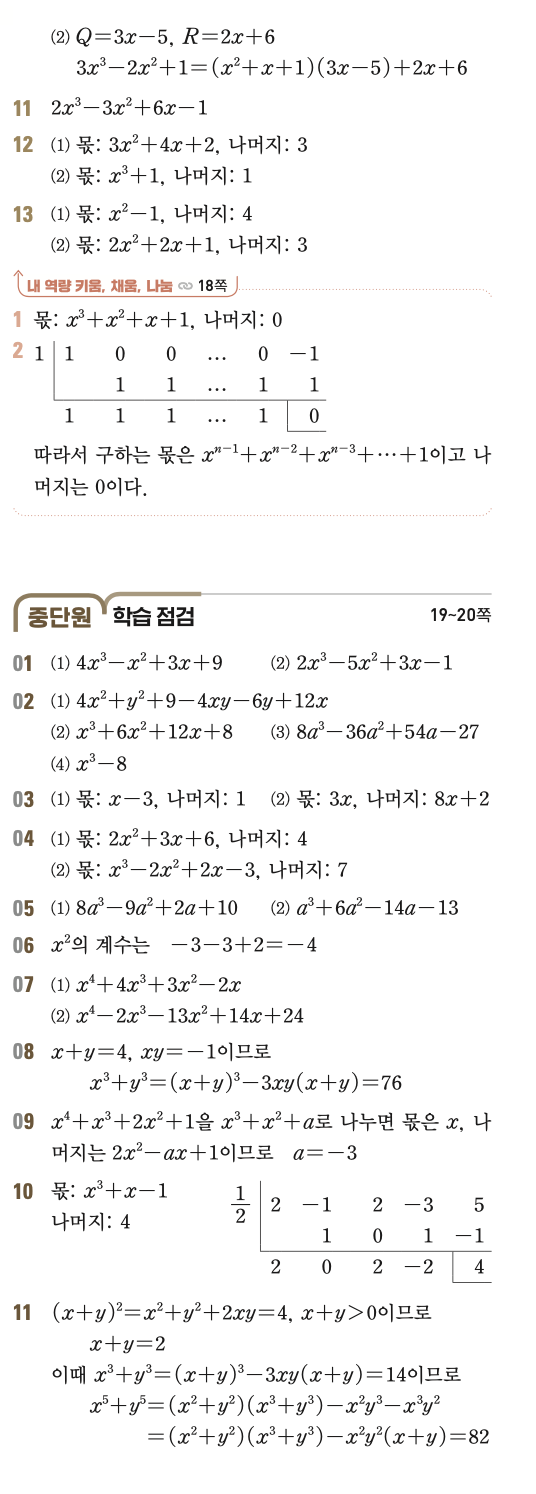 수학교과서 비상출판 공통수학1 답지 해설 – 답지