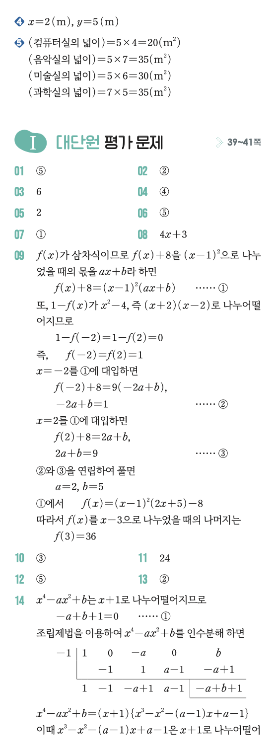 고등학교수학교과서 미래엔 공통수학1 답지 – 답지