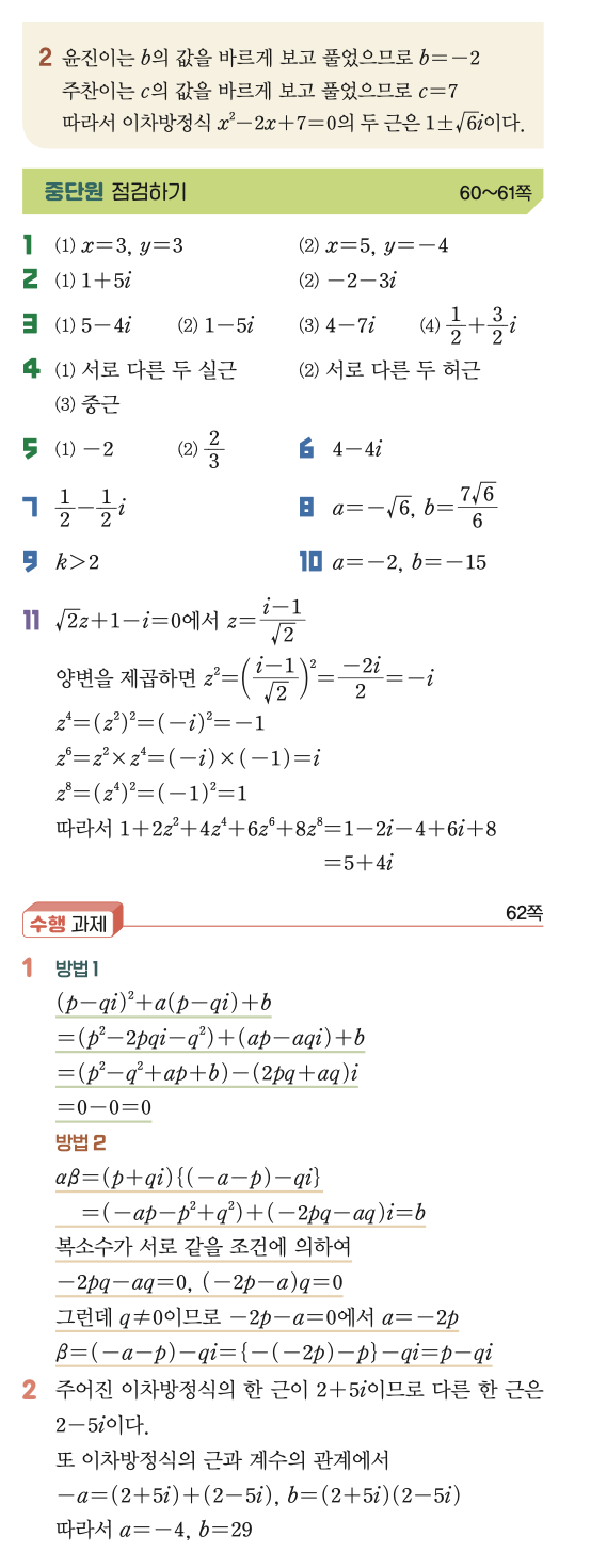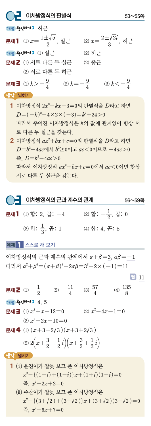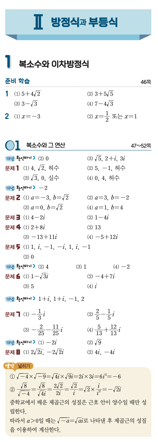 - II. 방정식과 부등식: 복소수의 성질과 이차방정식, 이차함수의 관계를 집중적으로 학습합니다.