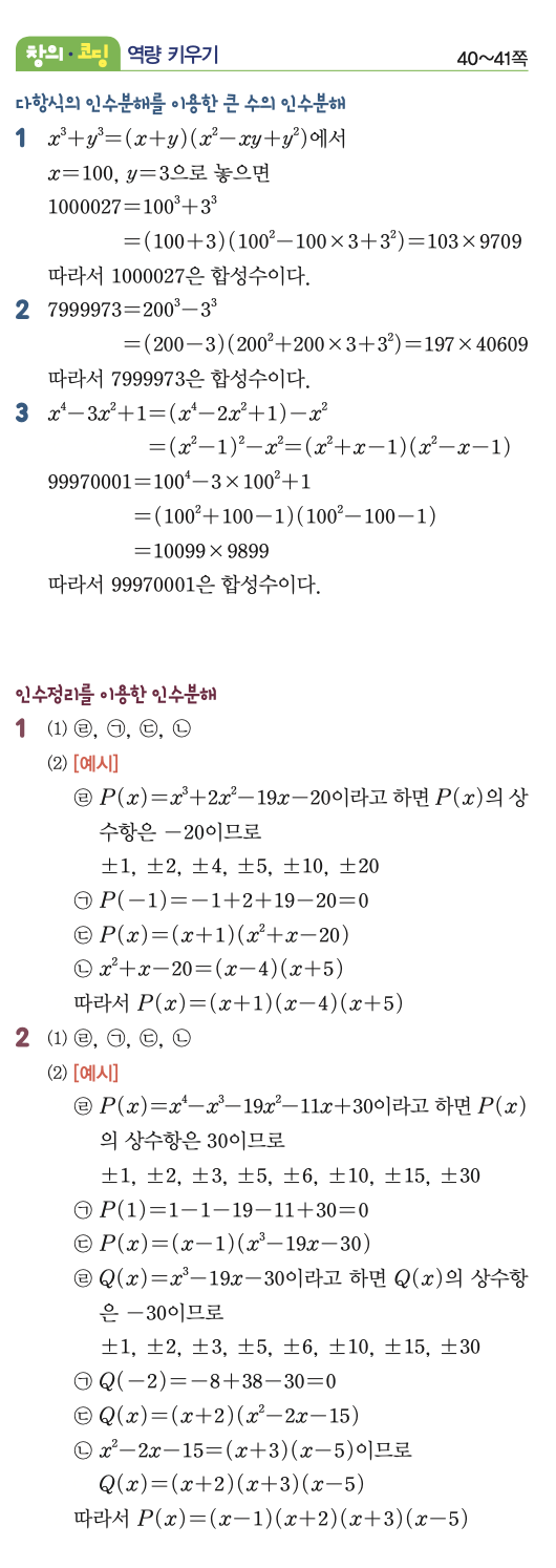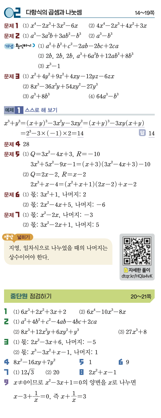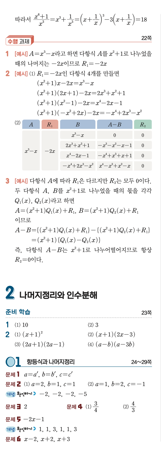 천재교육 수학교과서 공통수학1답지(홍진곤) 해설지 풀버전링크