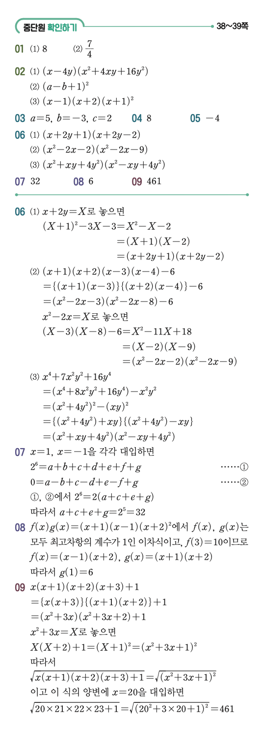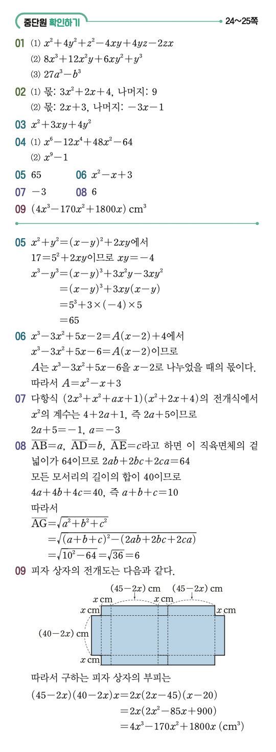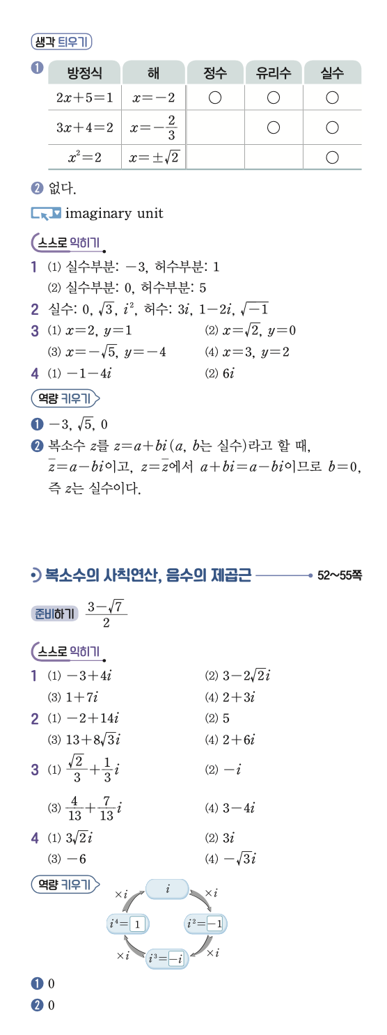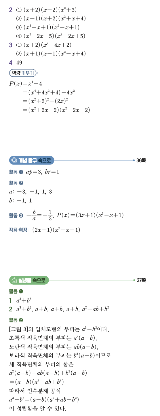 - 교과서 본문 뒤 '정답과 풀이': 교과서 맨 뒷부분에 수록된 정답 섹션에는 모든 예제와 연습문제의 정답 및 주요 문항 해설이 포함되어 있습니다.