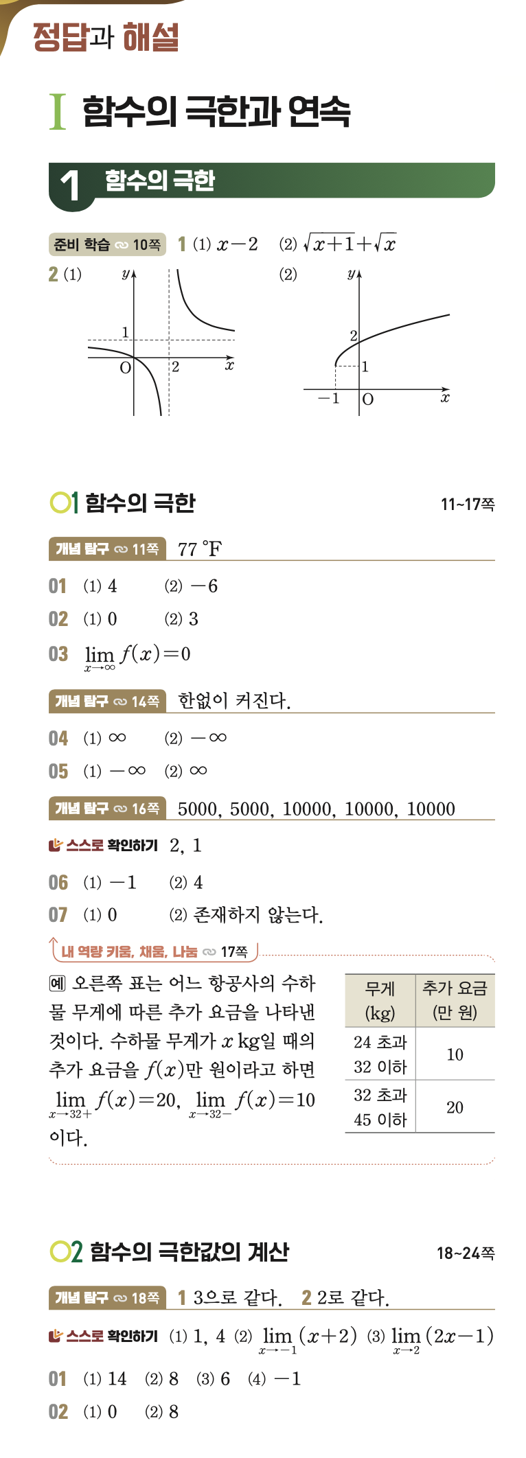 비상교육 수학교과서 미적분1 해설지 풀버전링크