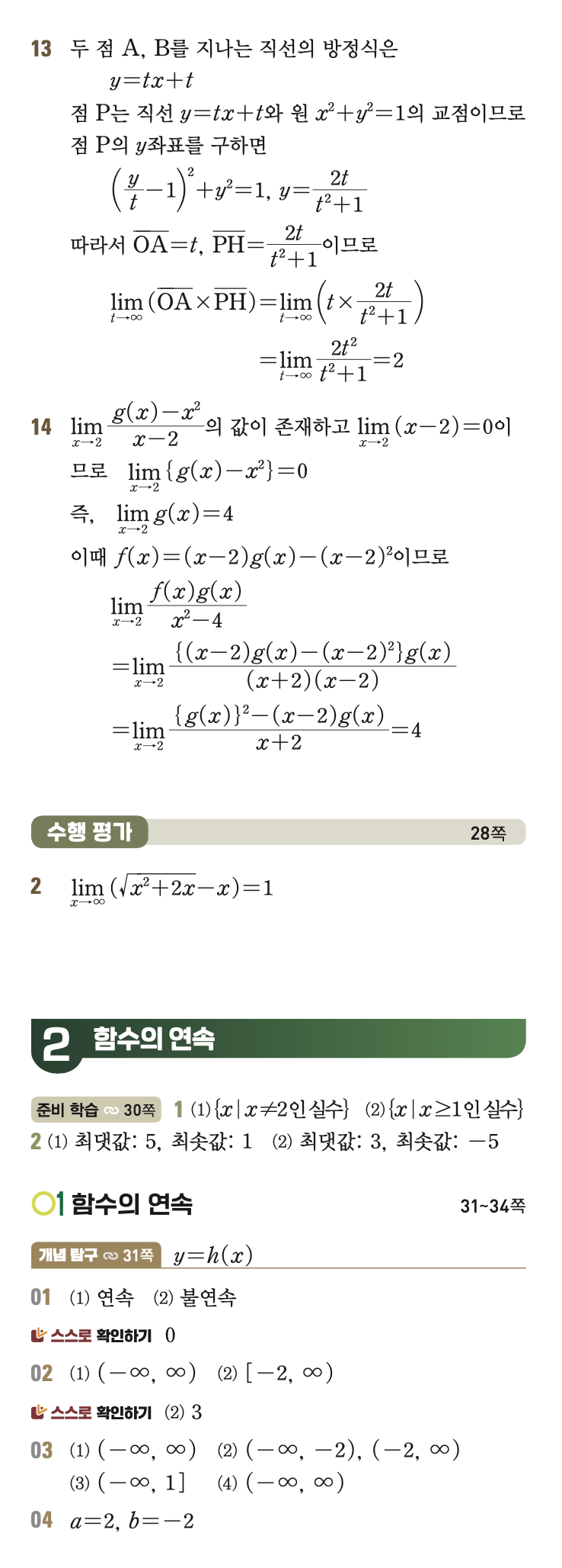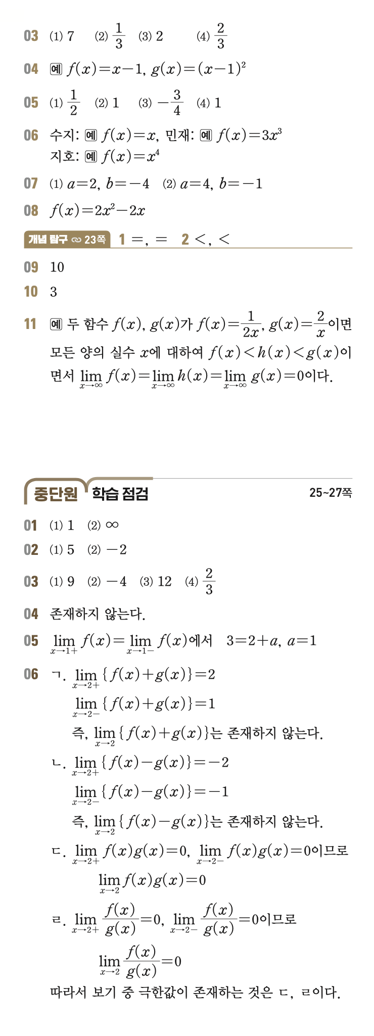 고등학교 수학교과서 비상출판 미적분1답지(김원경)해설 – 답지