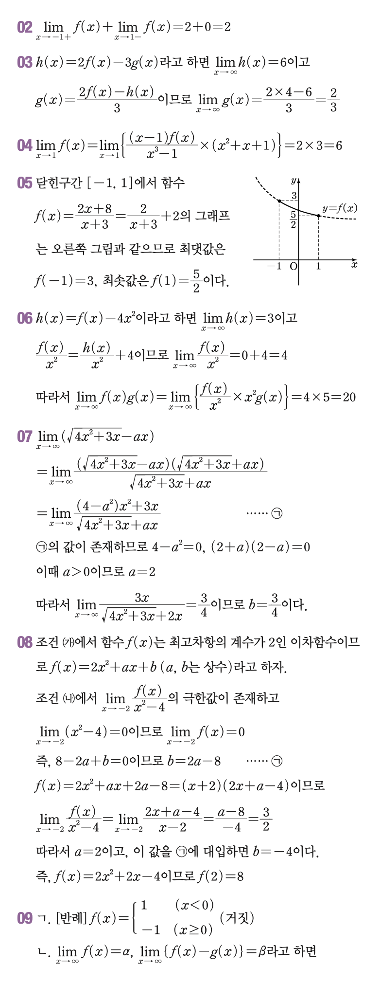 - 그래프 개형 대조: 함수의 그래프를 그리는 문제에서는 극값, 변곡점, 점근선의 위치가 해설지의 표준 그래프와 일치하는지 확인하여 기하학적 감각을 익혀야 합니다.