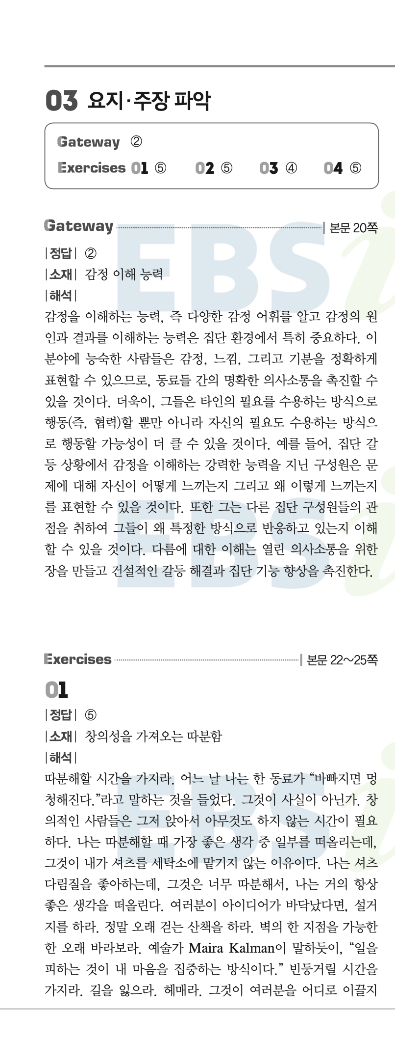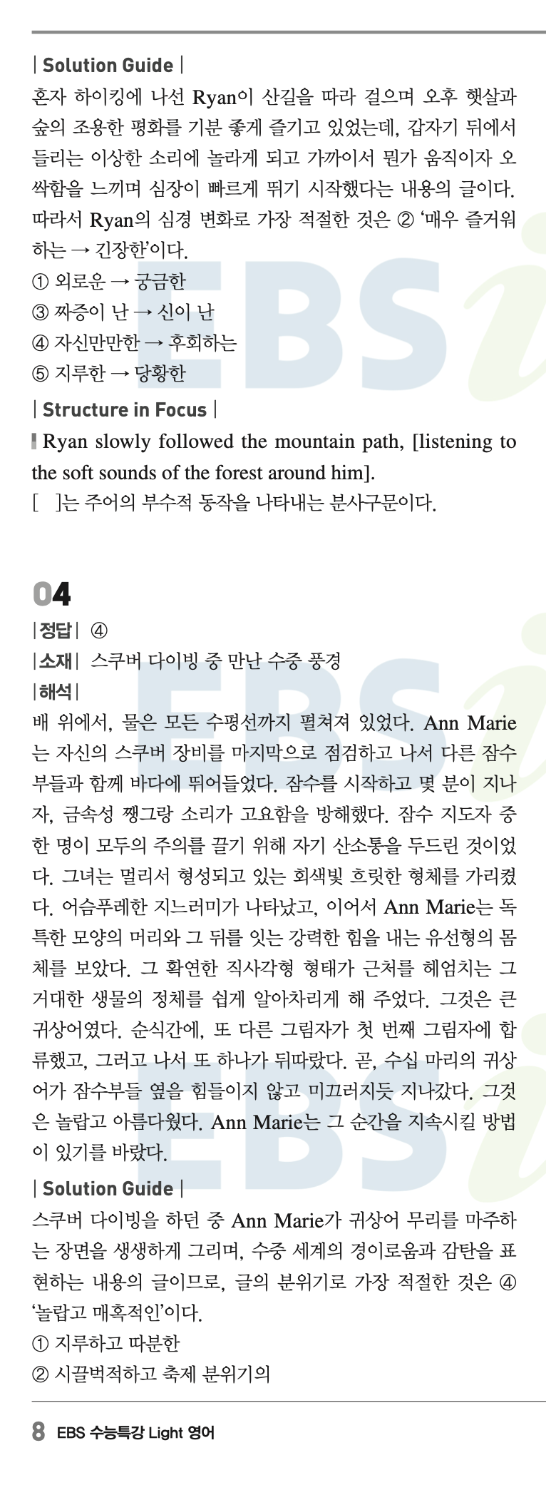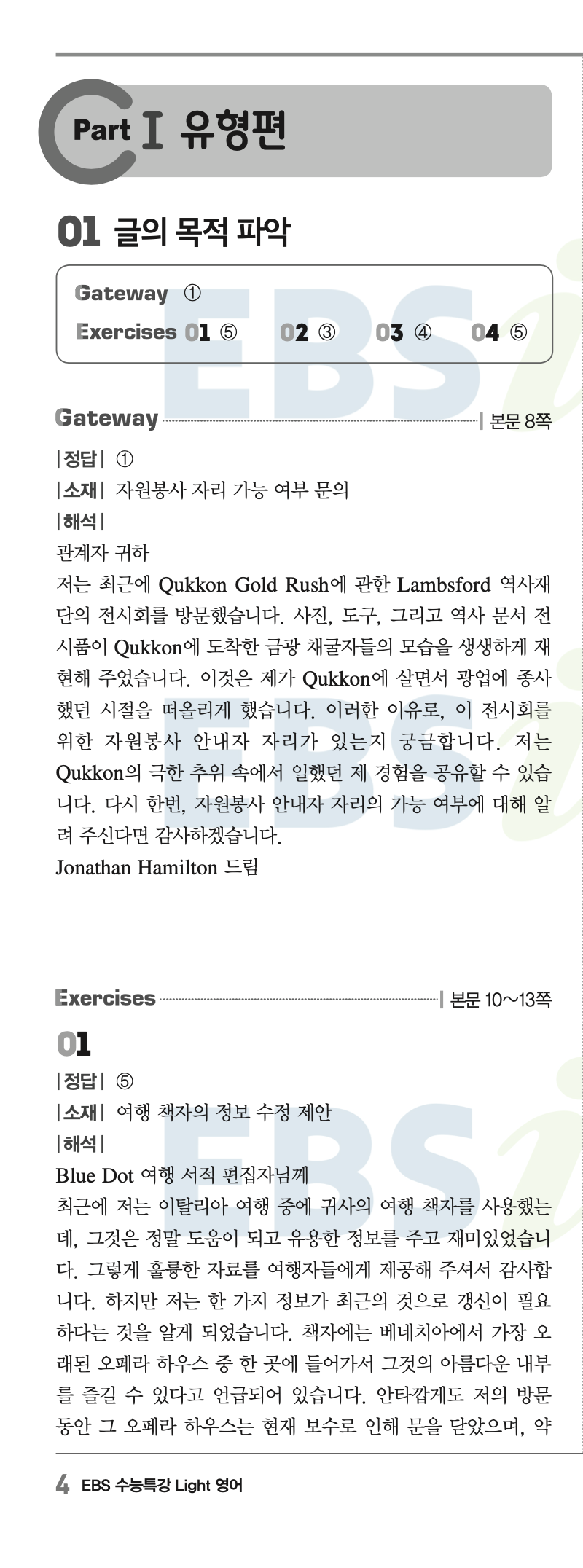 아래는 2027 수능특강 Light 영어 답지 일부입니다.