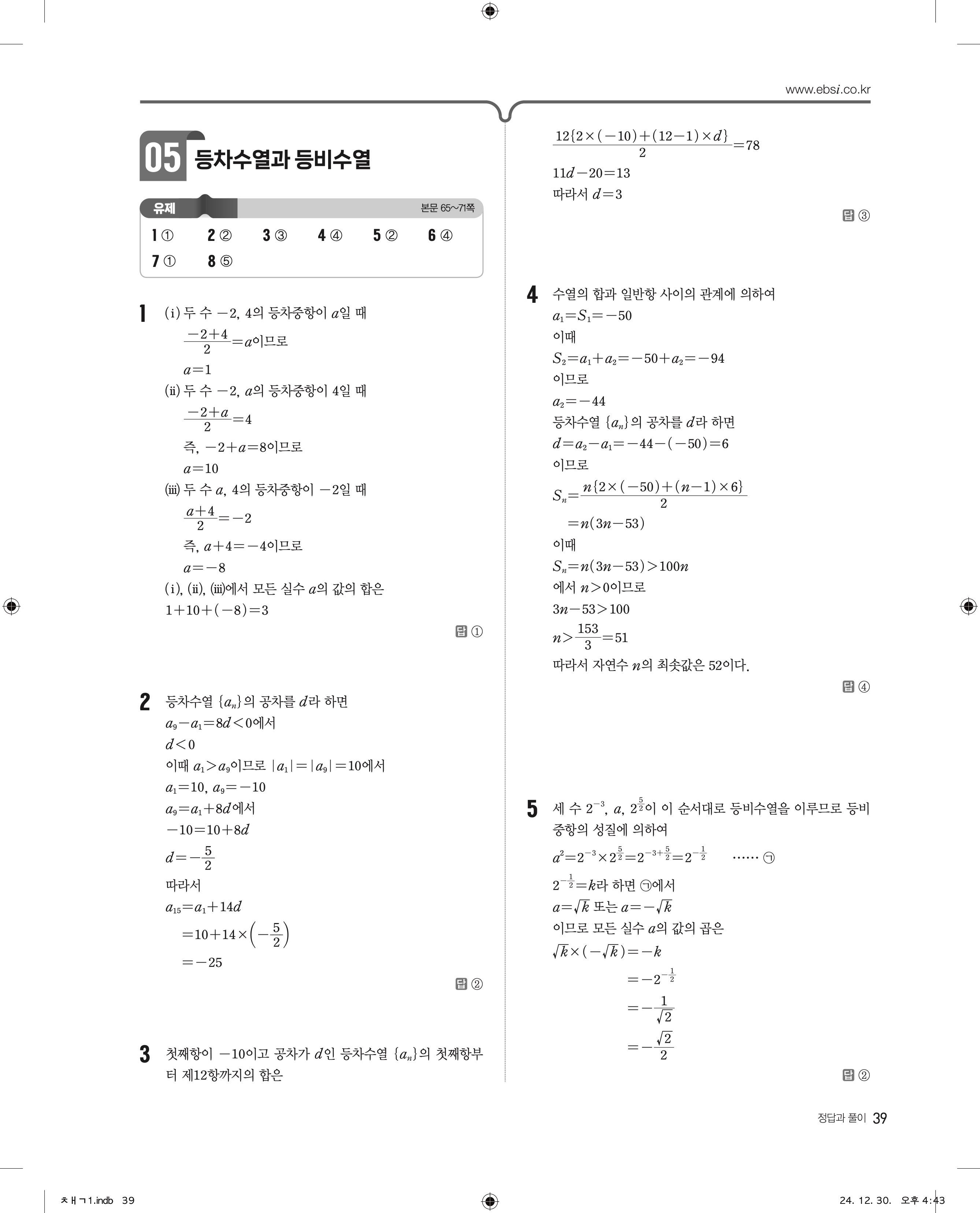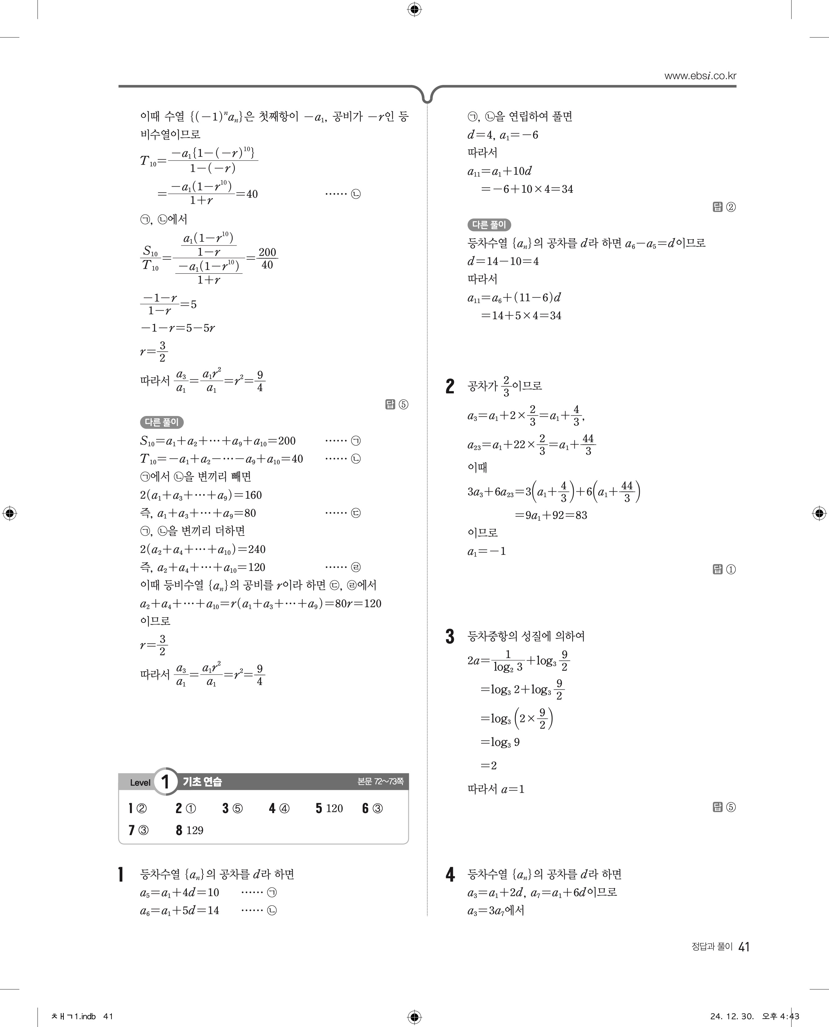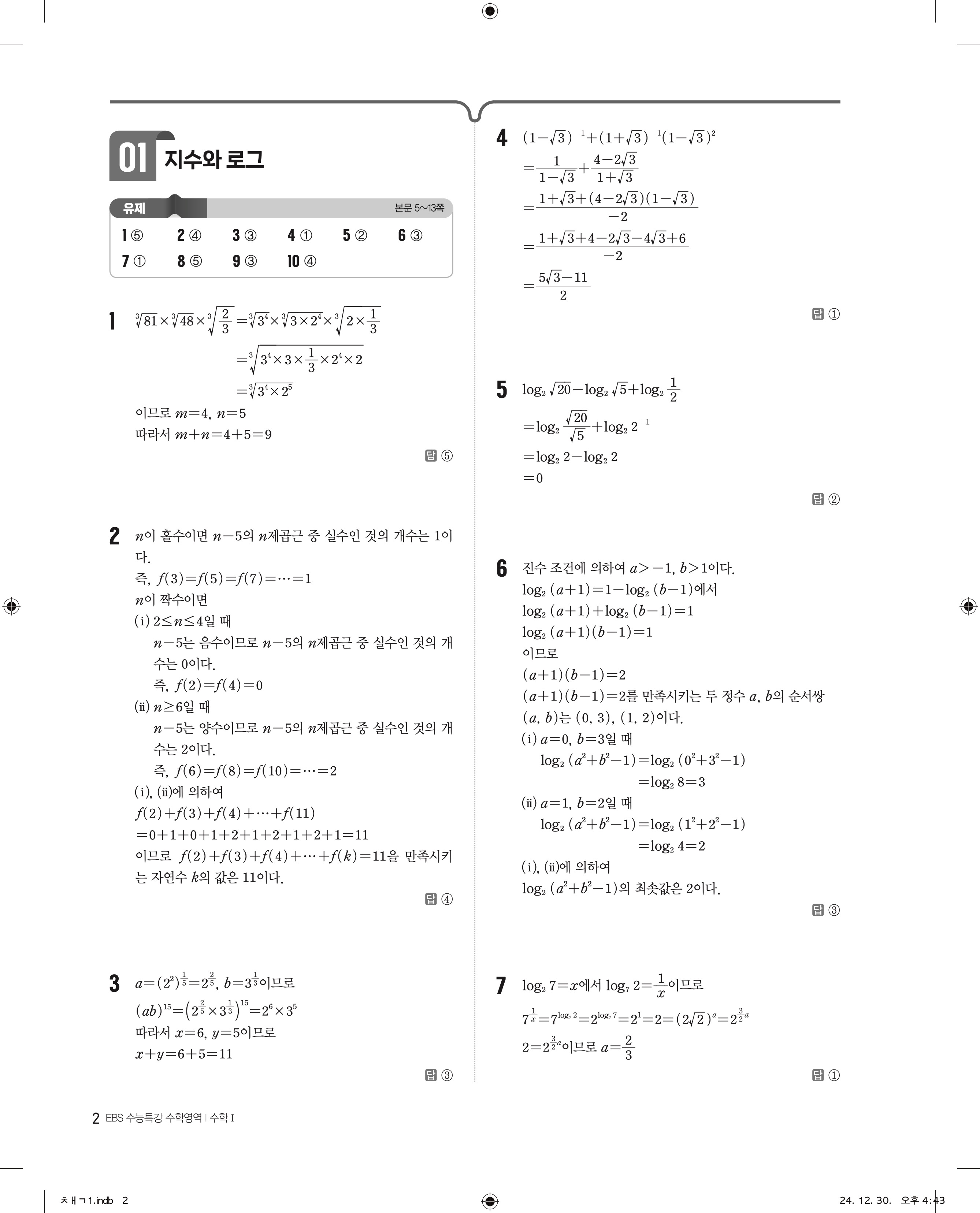 2027 수능특강 수학1 답지 - 정답 및 해설 PDF 다운로드 | 답지나라 - 답지나라