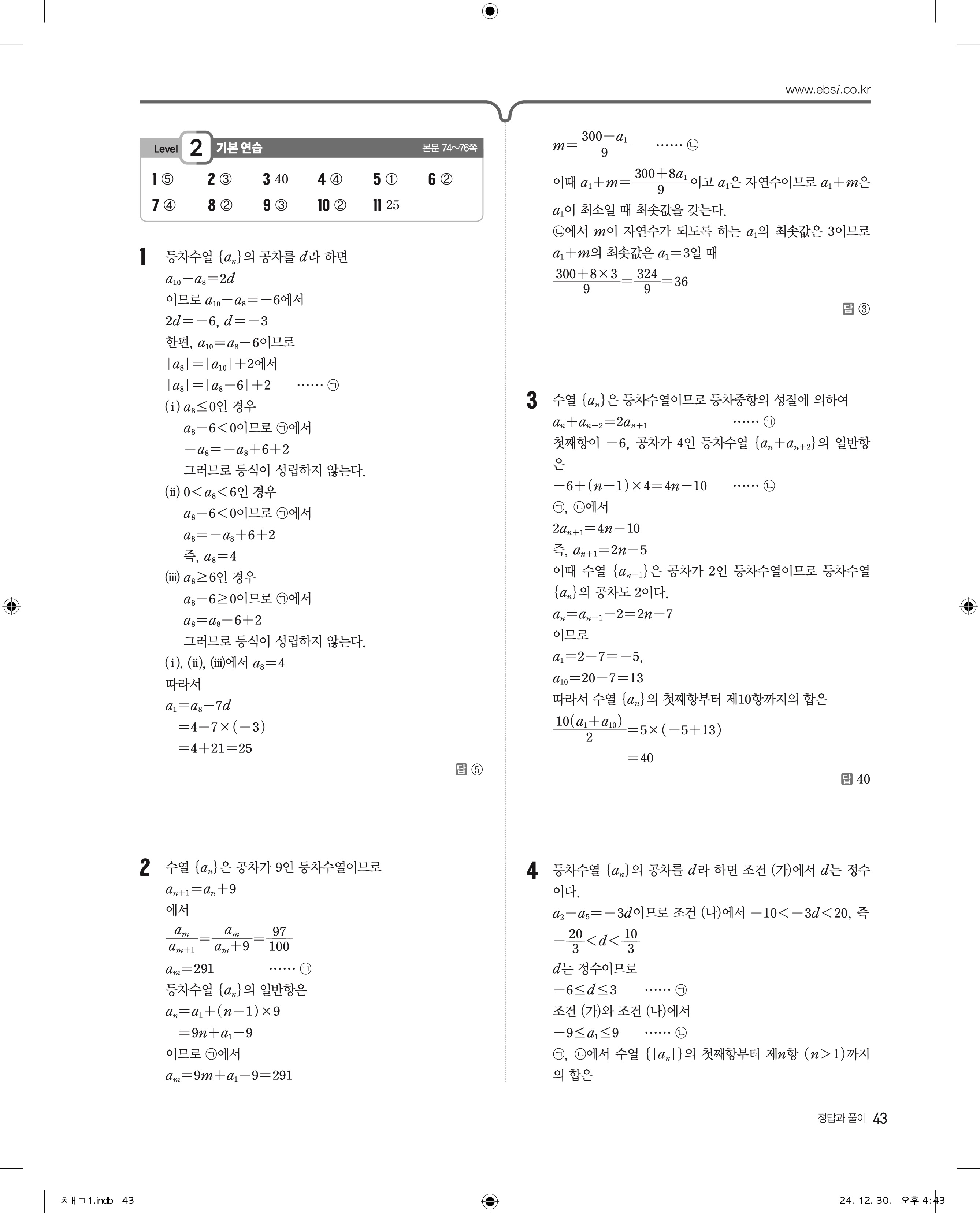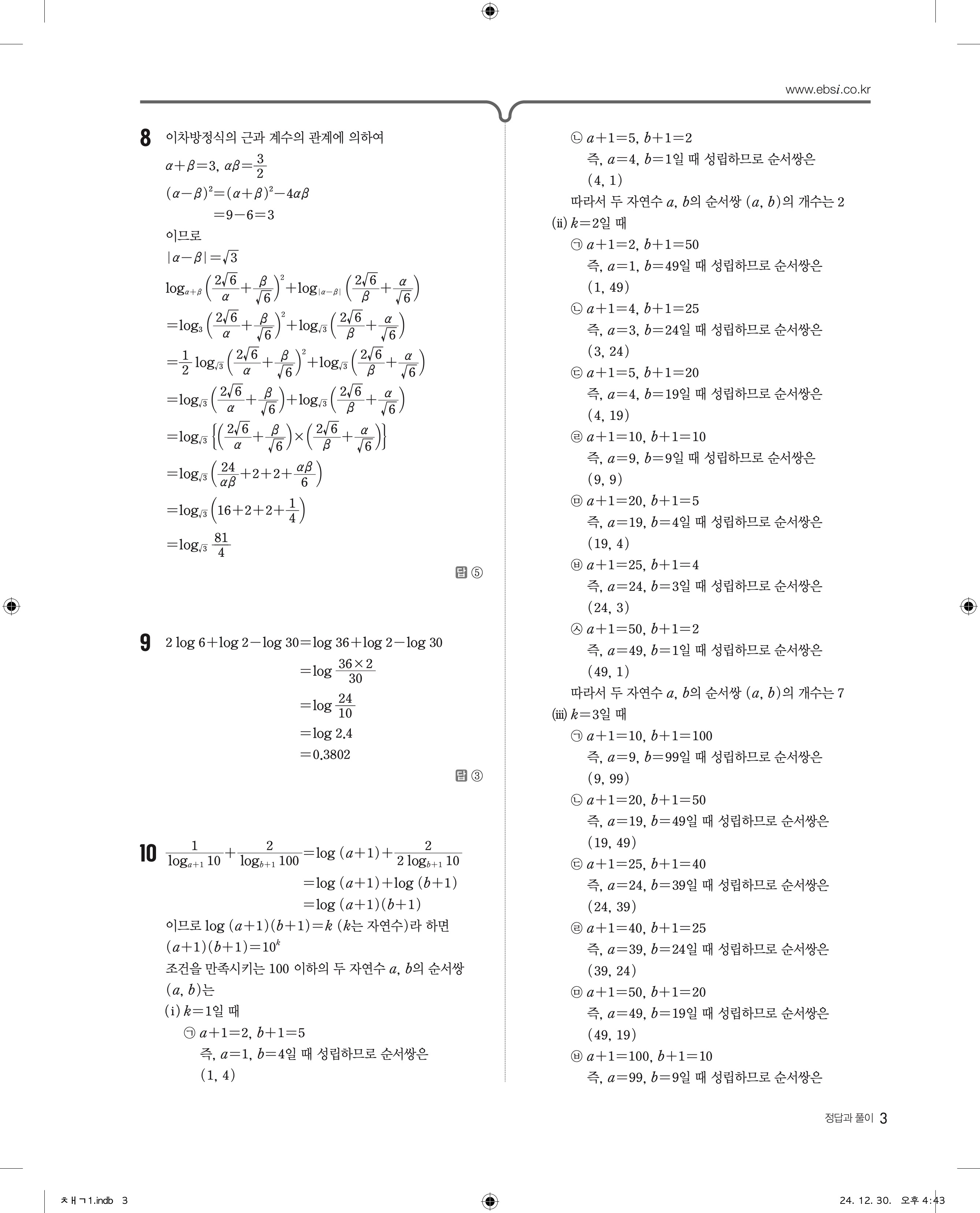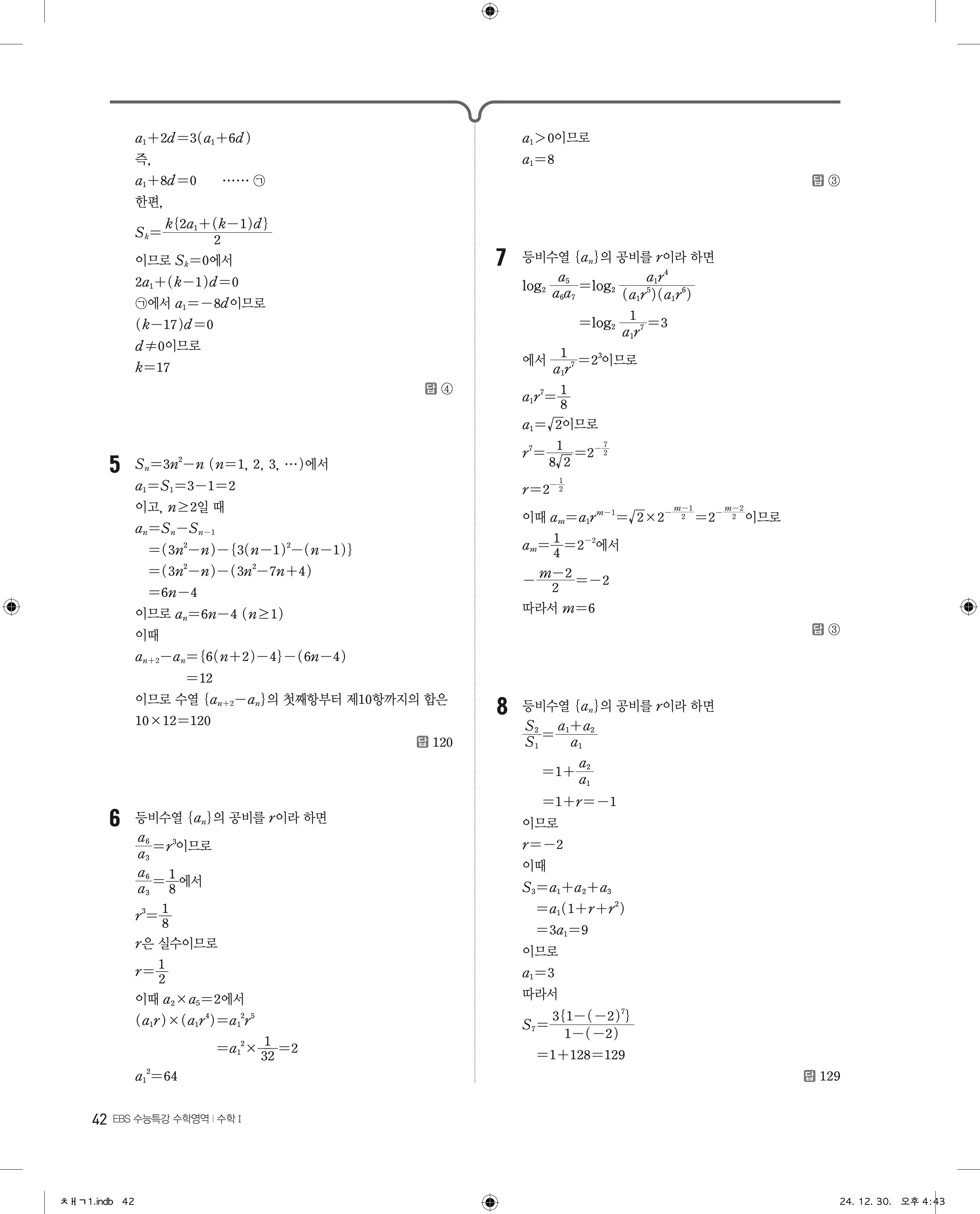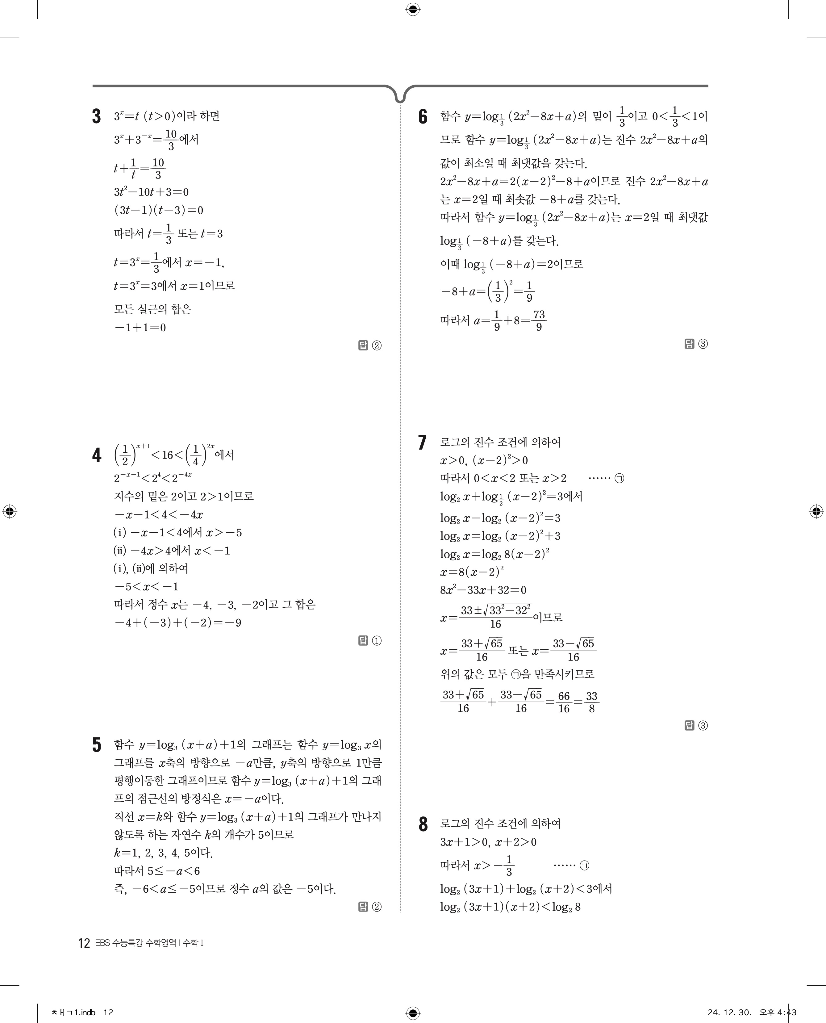 2027 수능특강 수학1 답지 - 정답 및 해설 PDF 다운로드 | 답지나라 - 답지나라