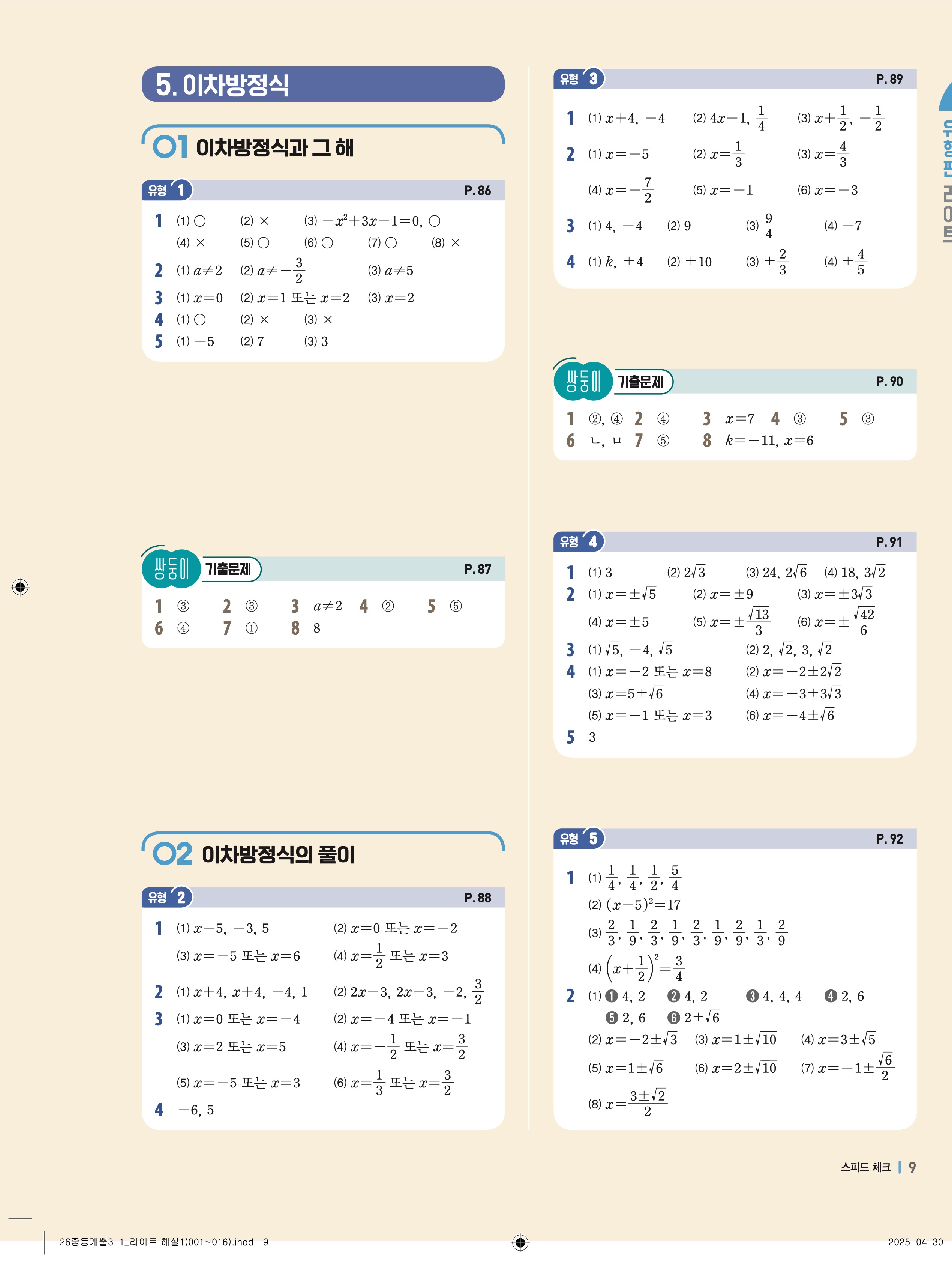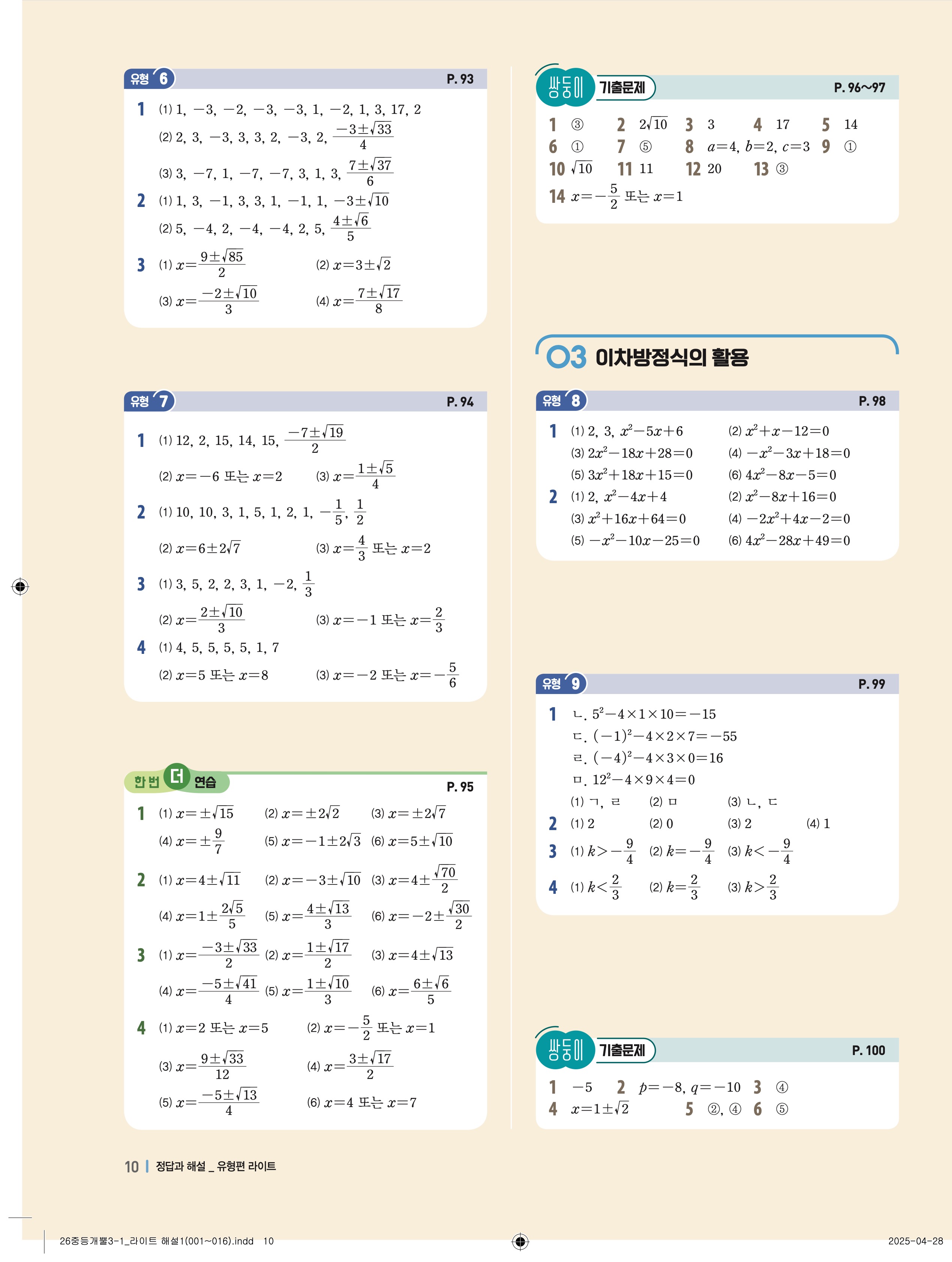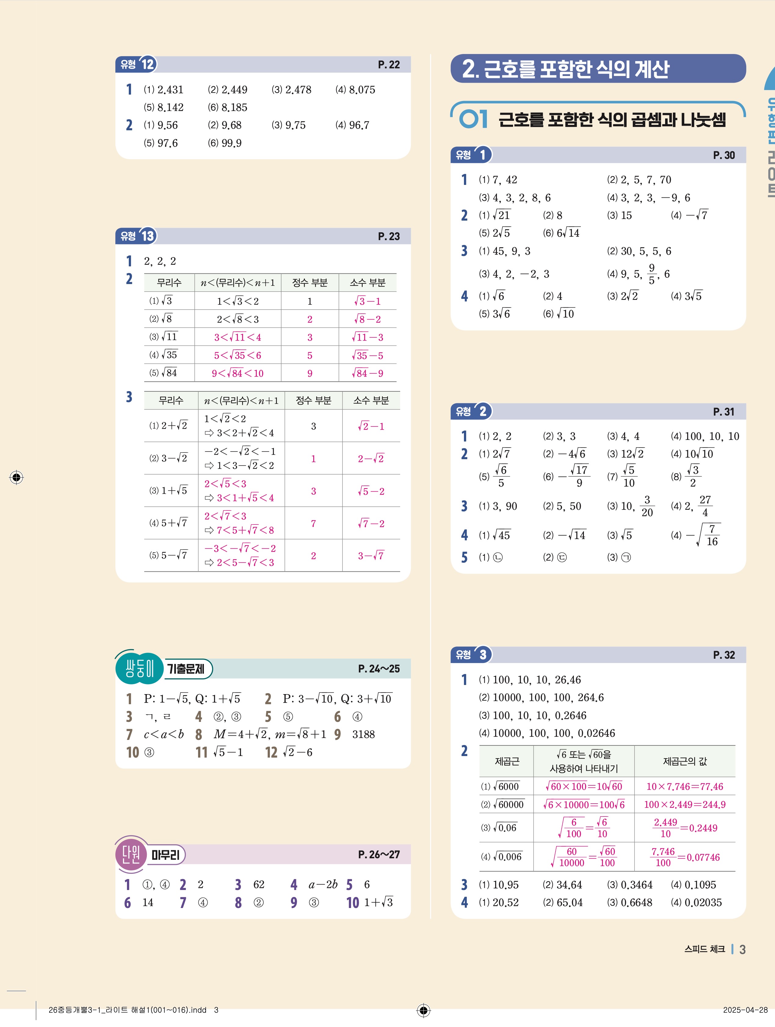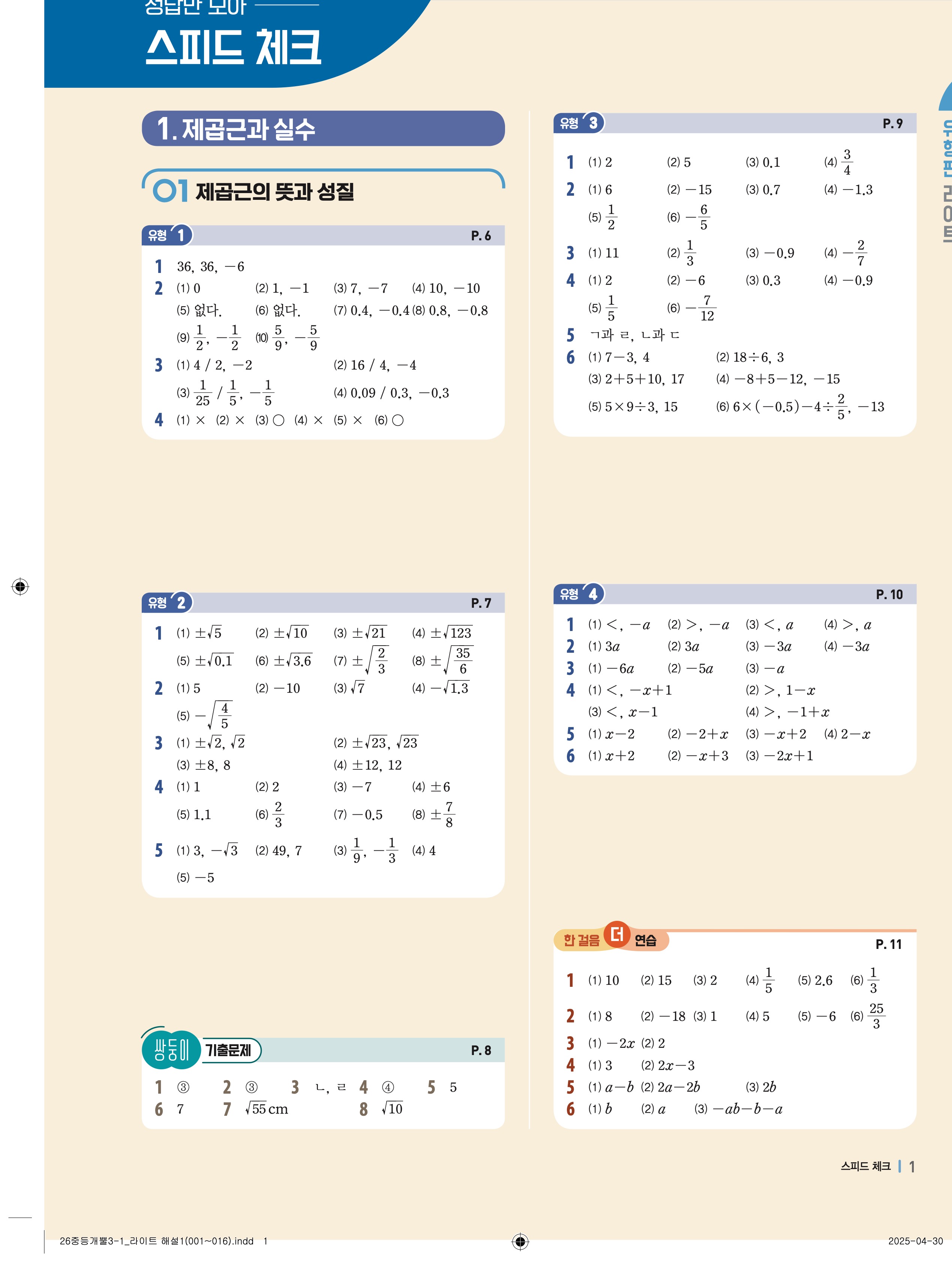 🔗 2025 최신개정 개념플러스유형 중등 유형편 라이트 3-1 빠른답지 PDF