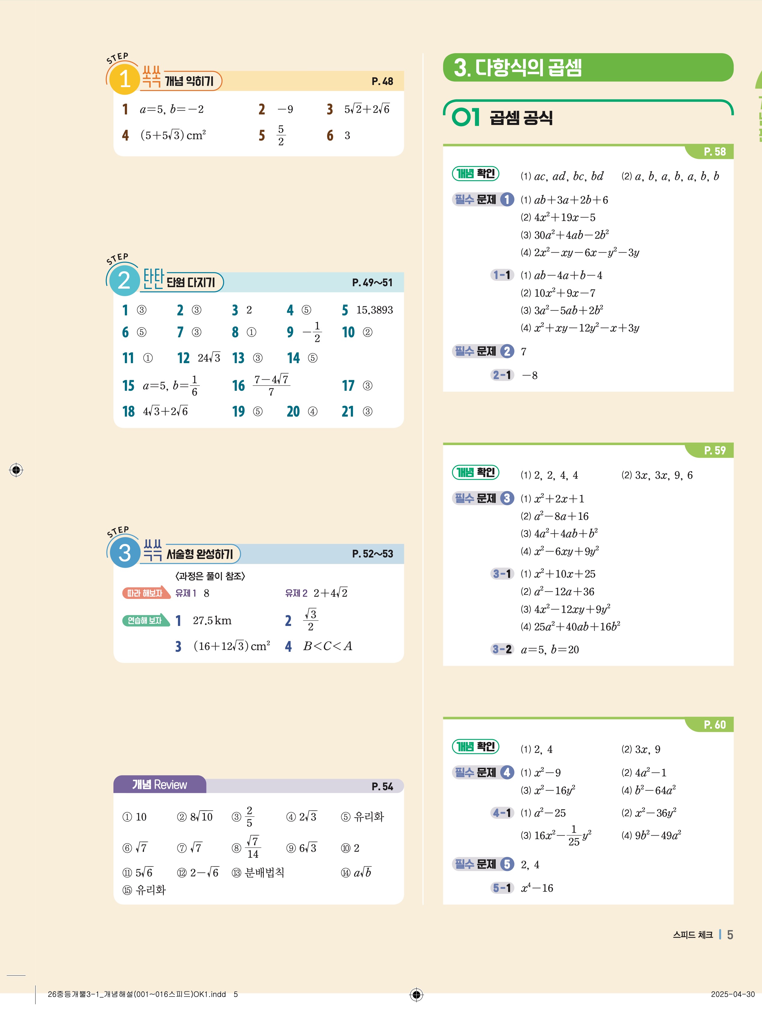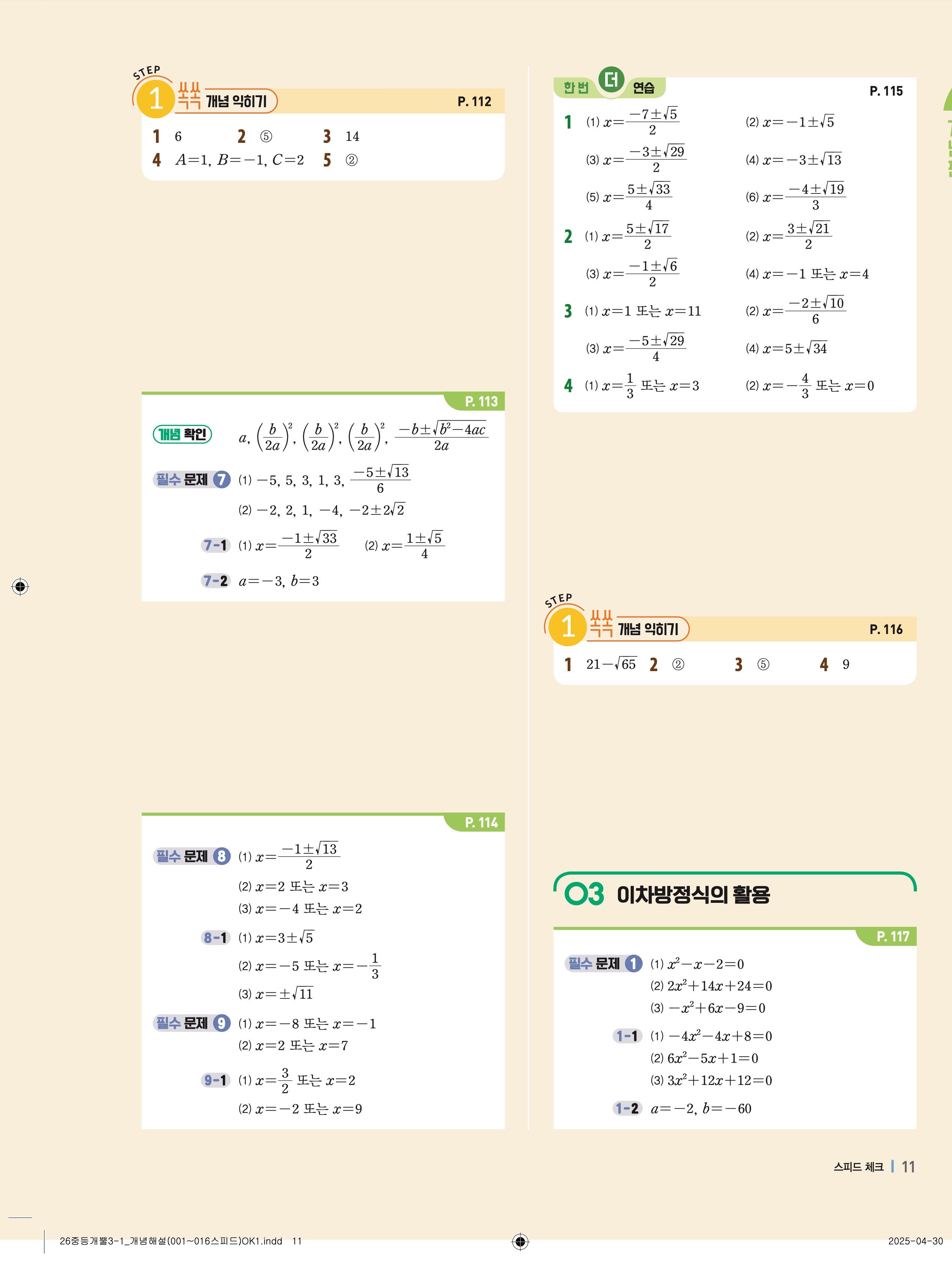 🔗 2025 최신개정 개념플러스유형 중등 개념편 라이트 3-1 빠른답지 PDF