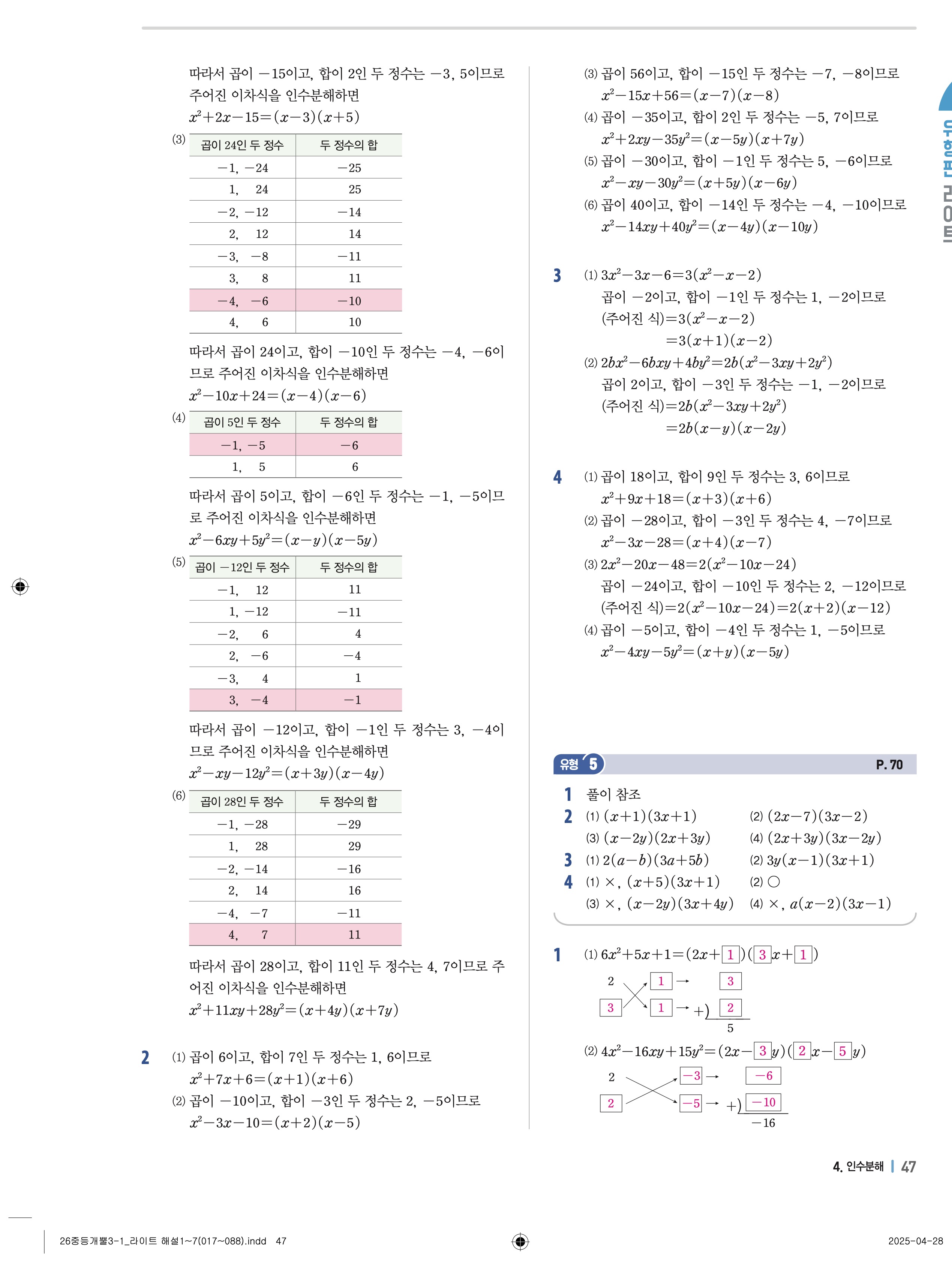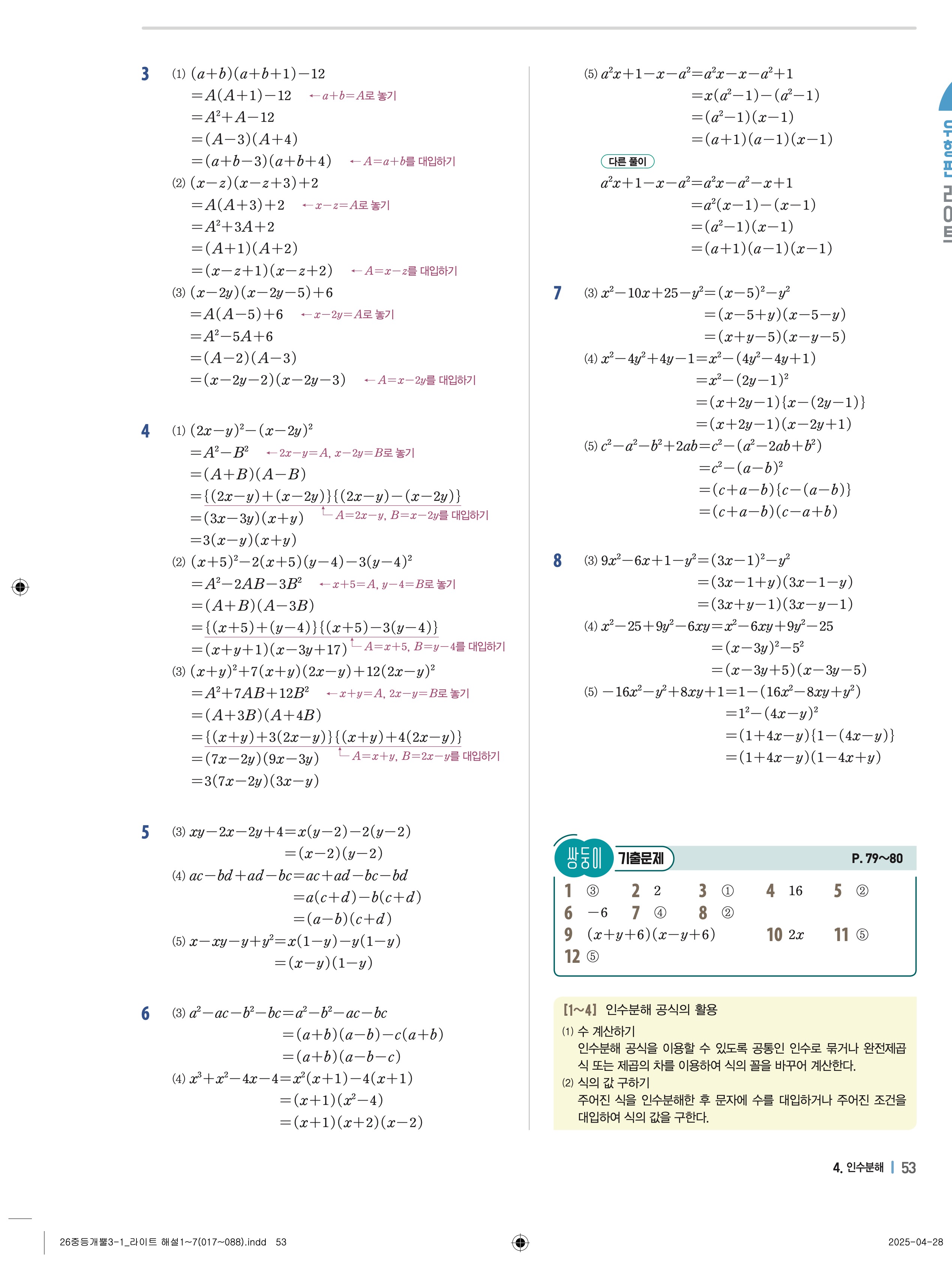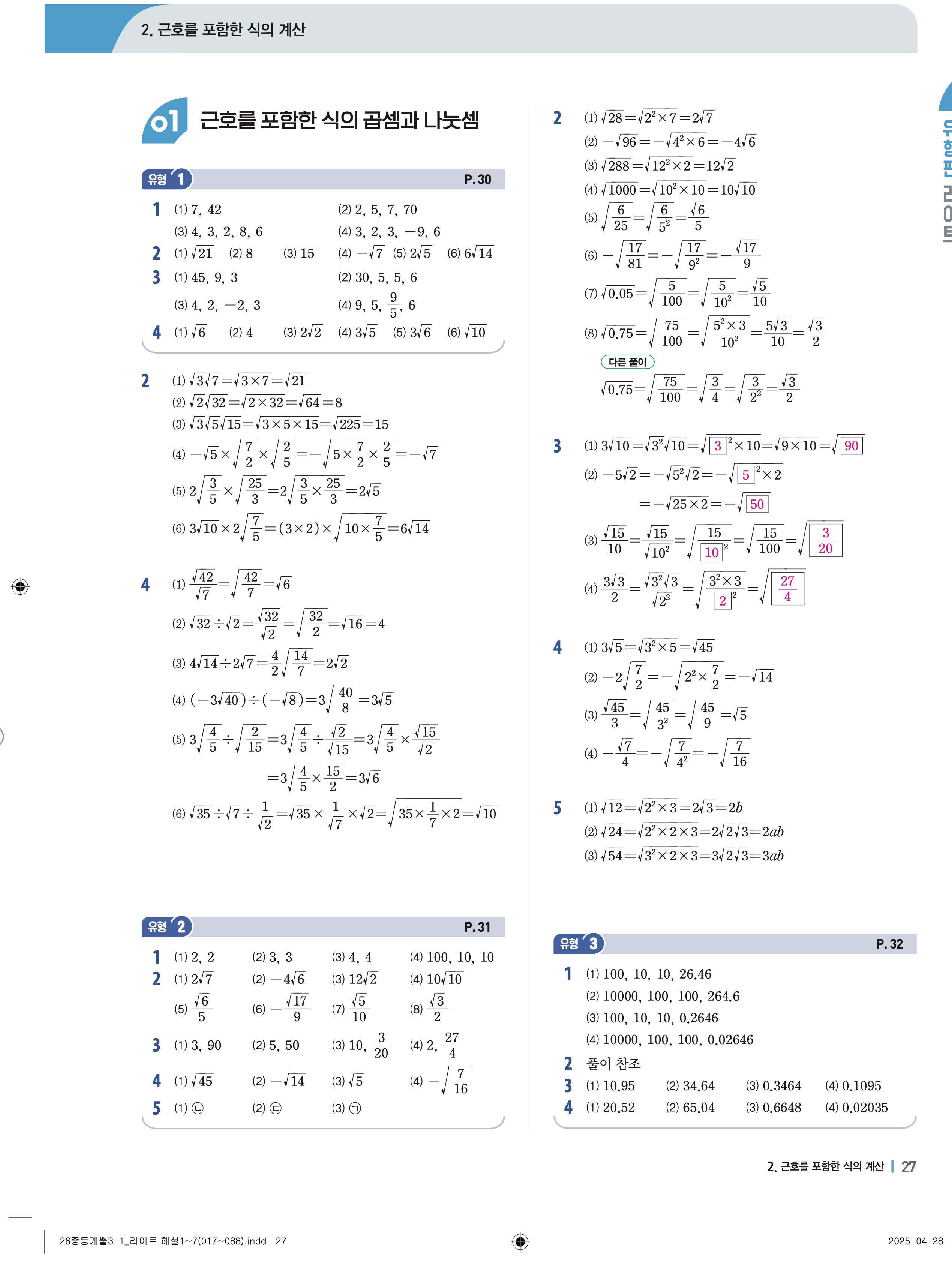 개념플러스유형라이트3-1 유형편 풀이해설