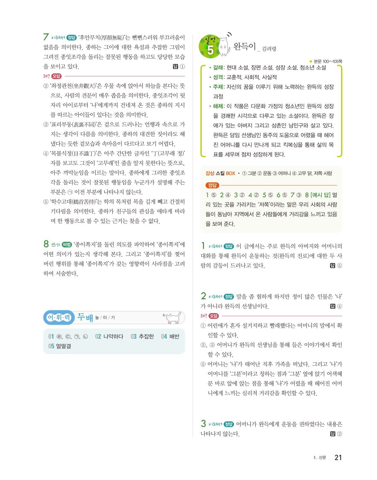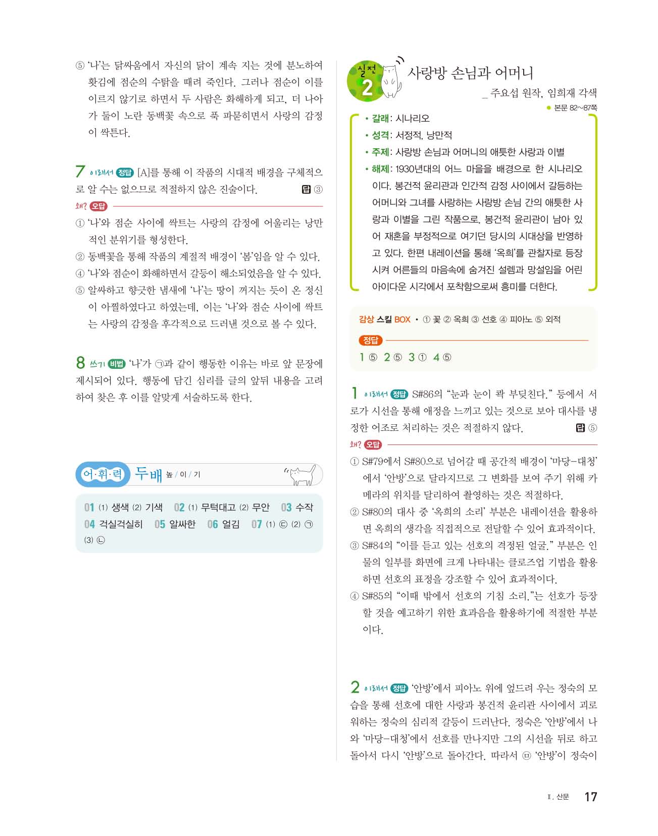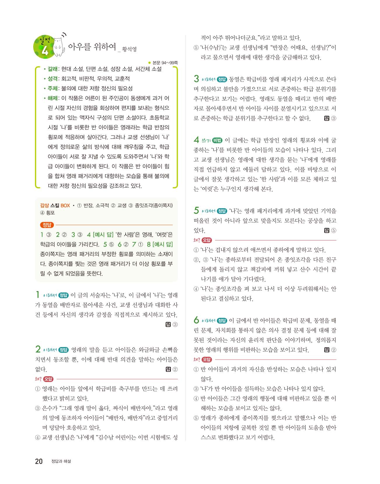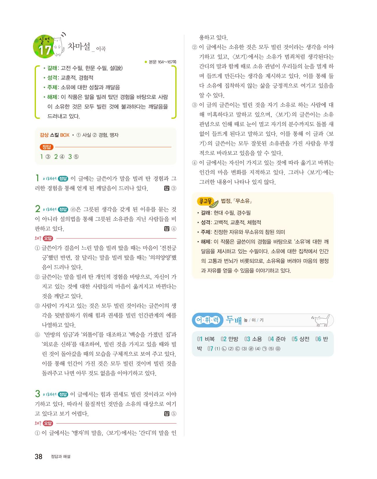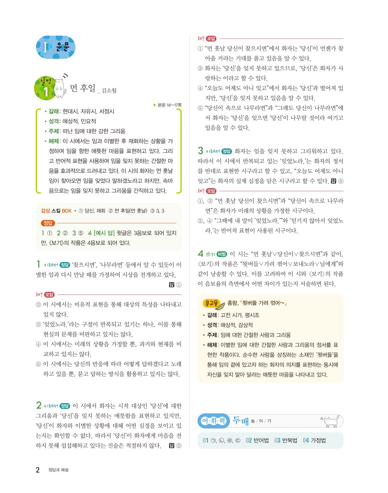 우공비 중학국어 문학2 답지 해설지 사진답지 빠른답지 모바일최적화