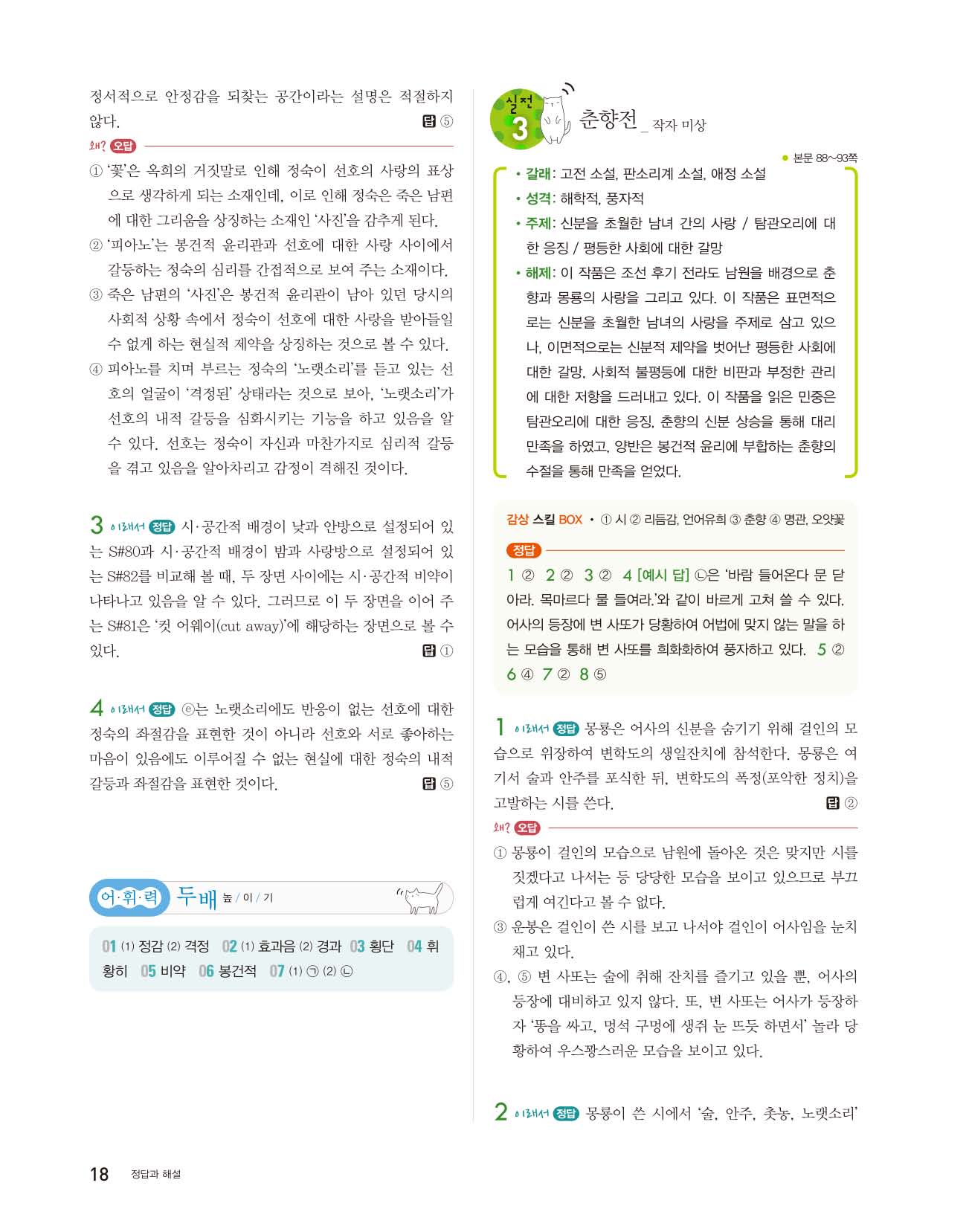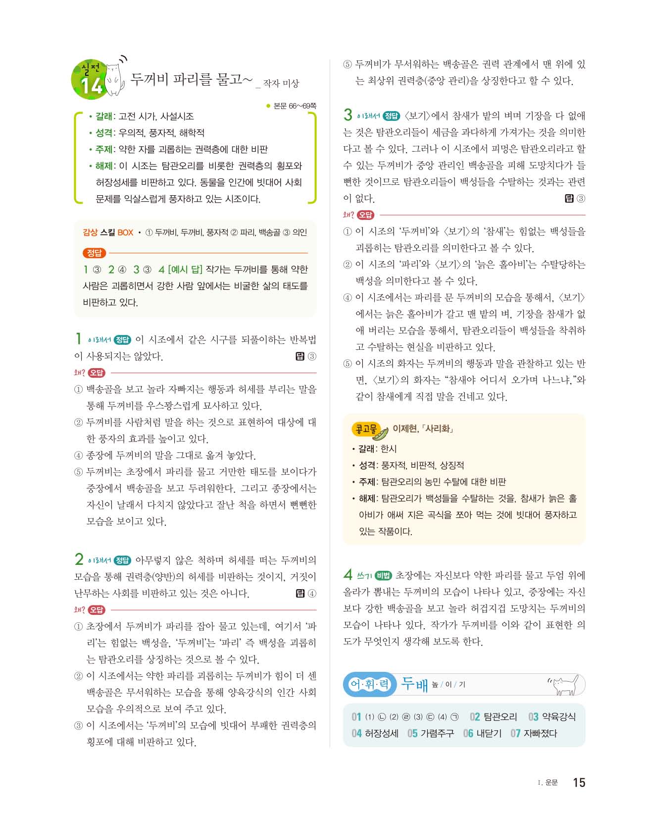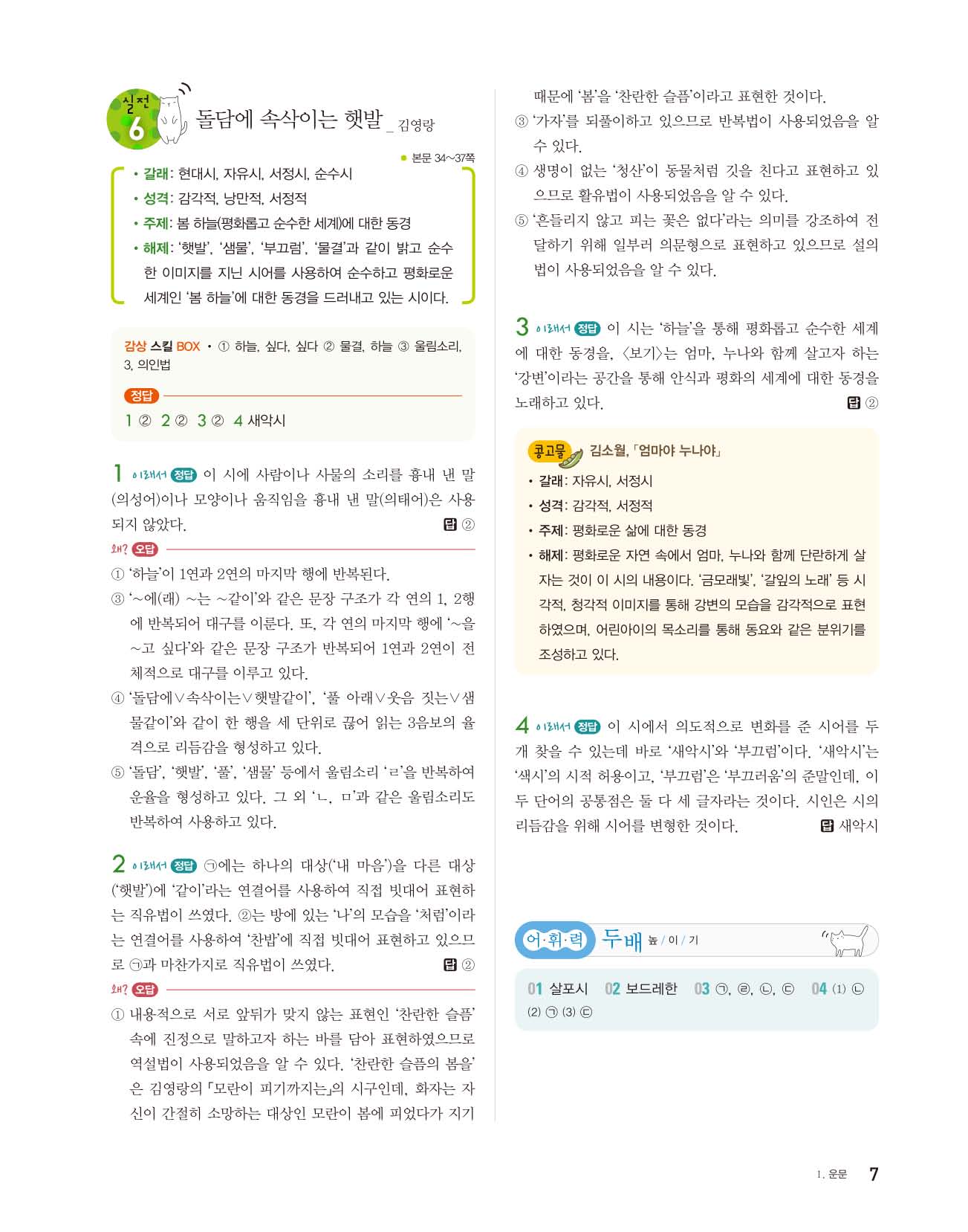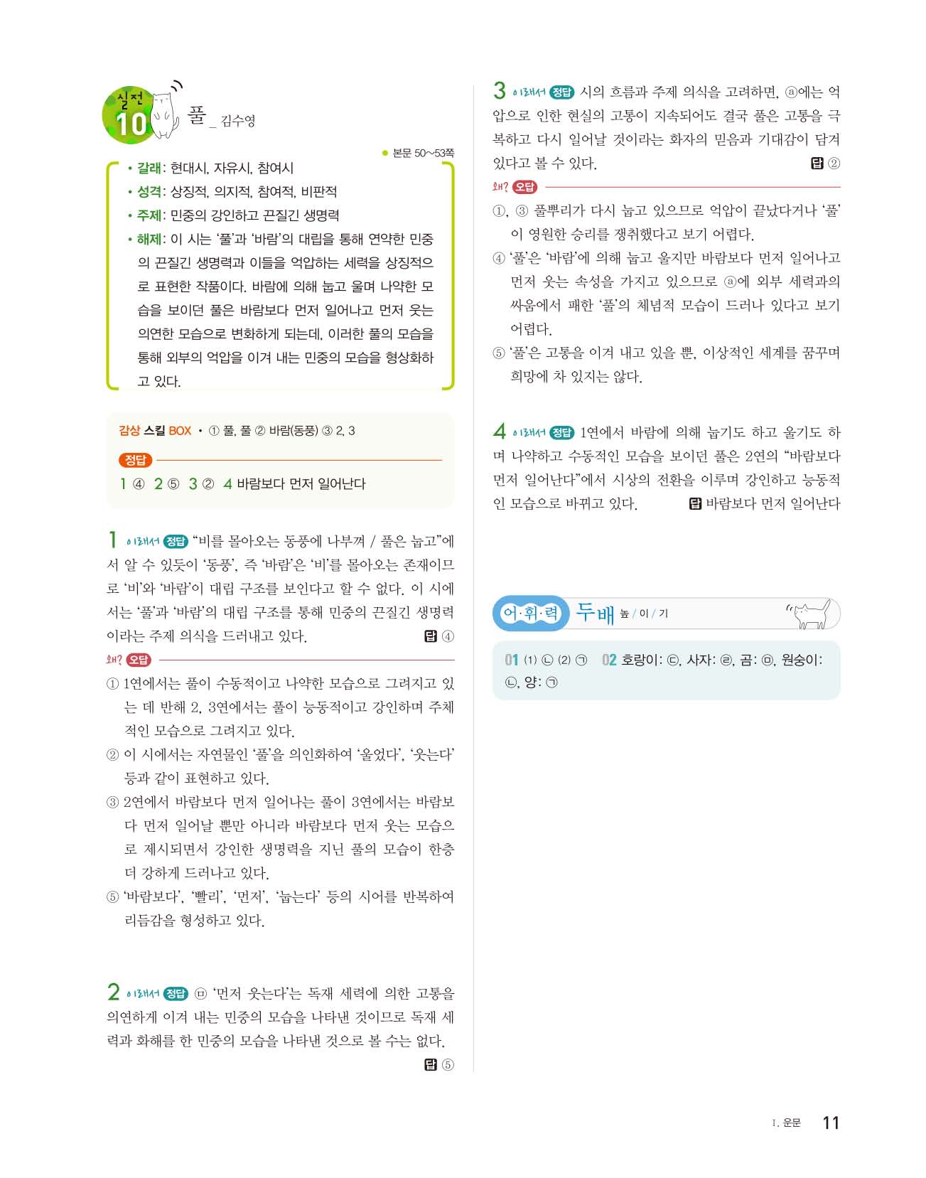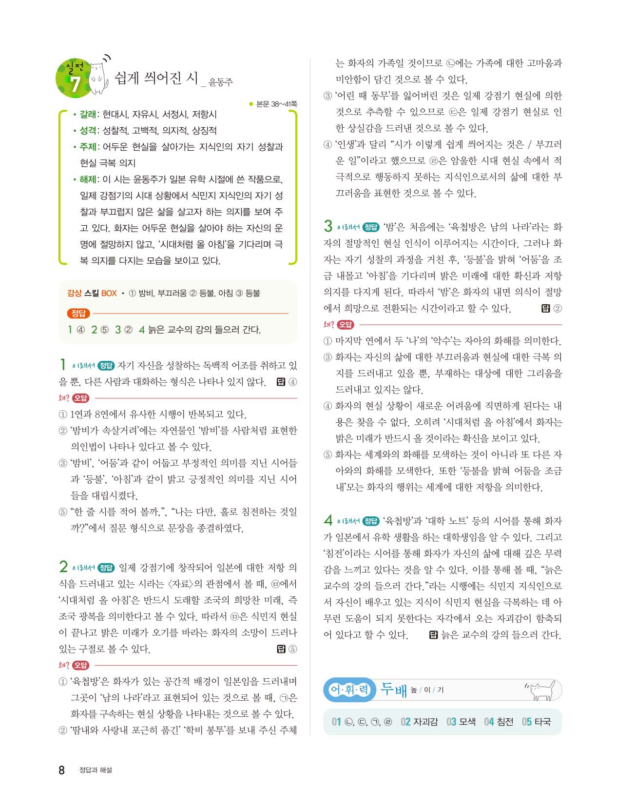 우공비 중학국어 문학2 답지 해설지 사진답지 빠른답지 모바일최적화