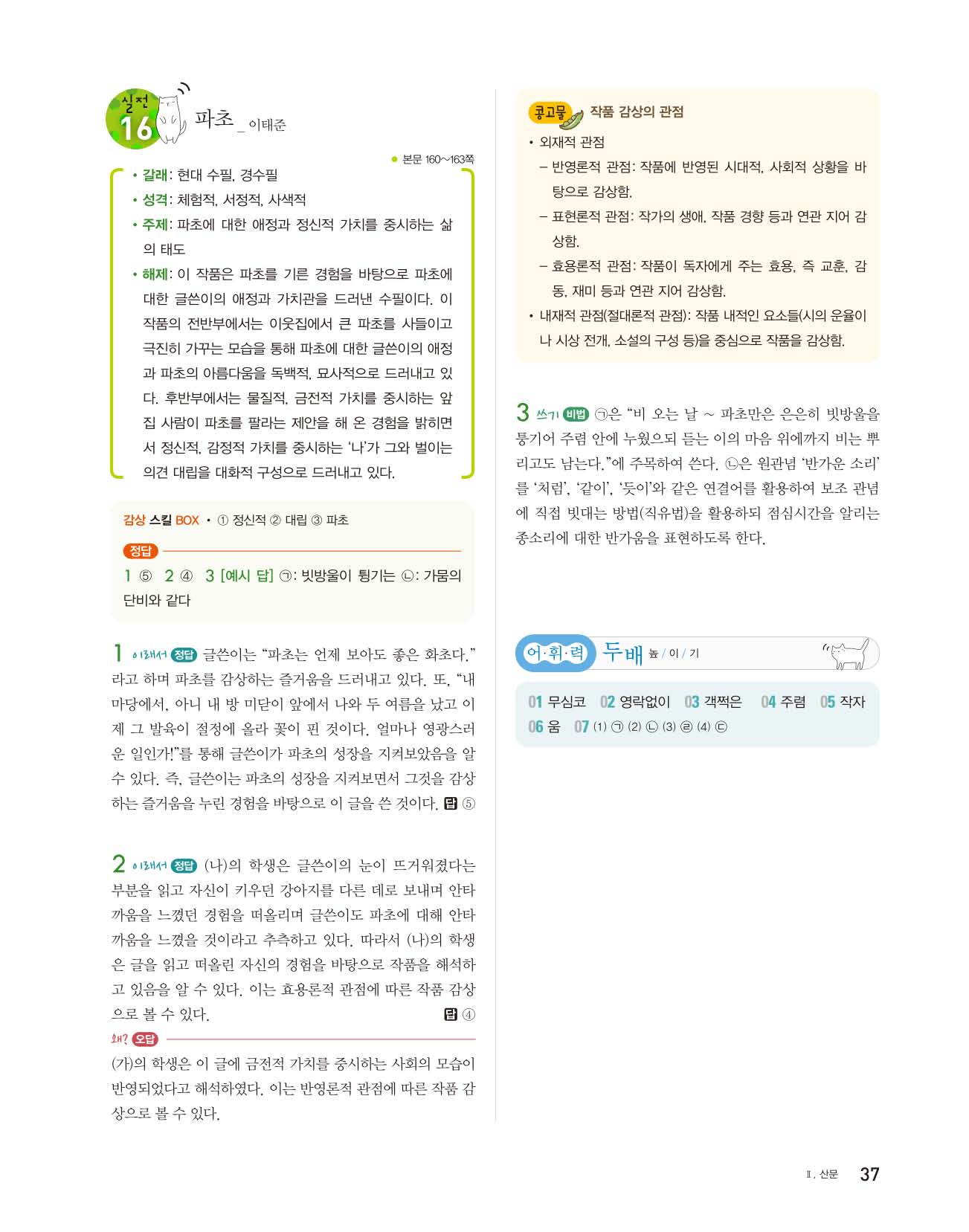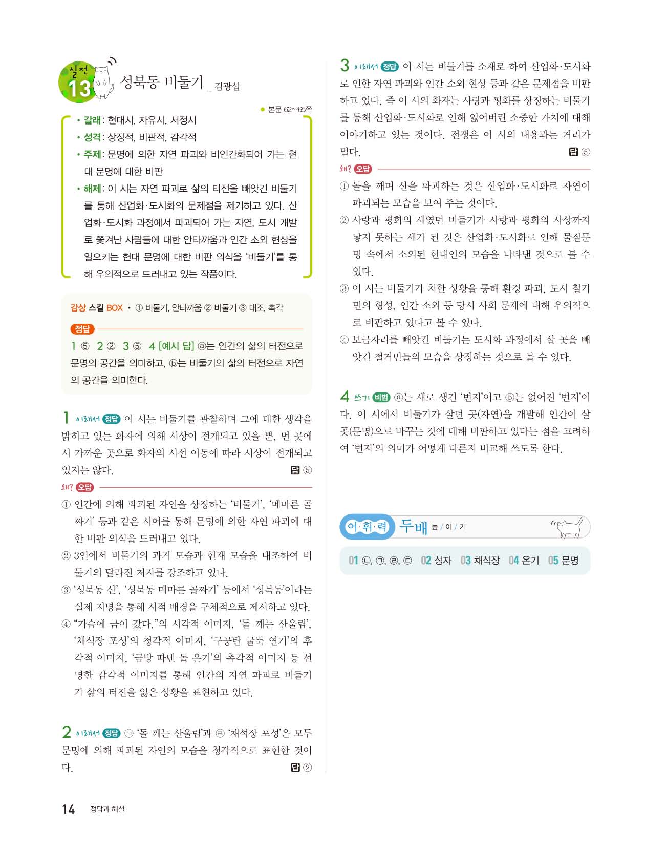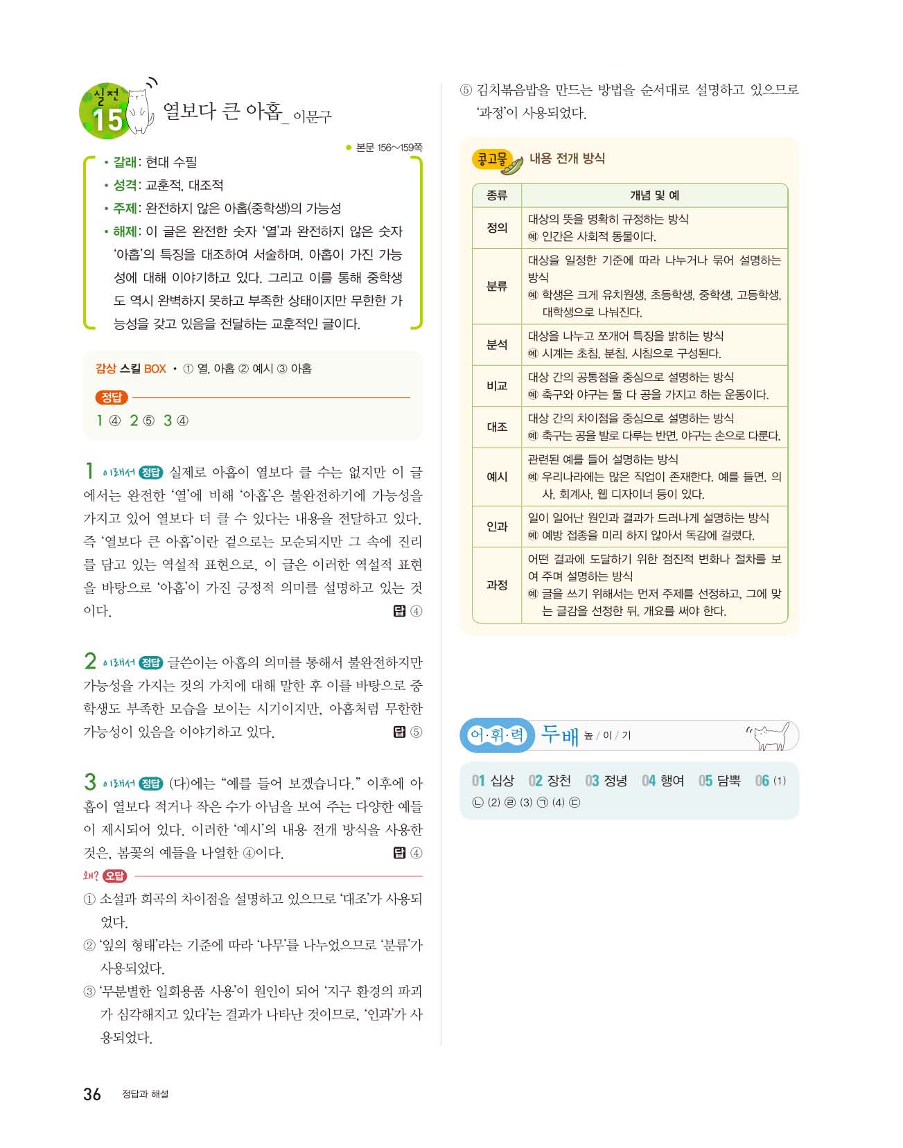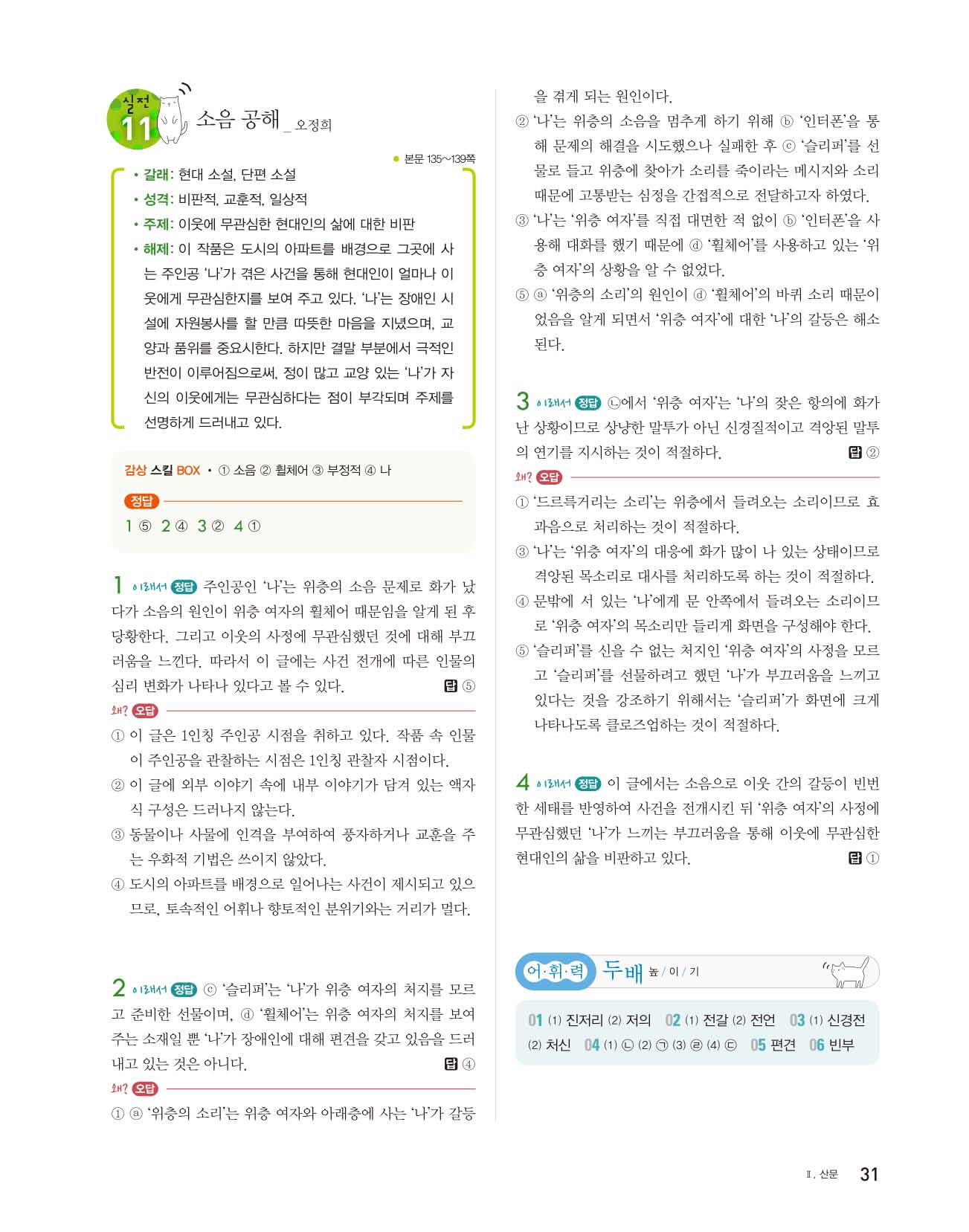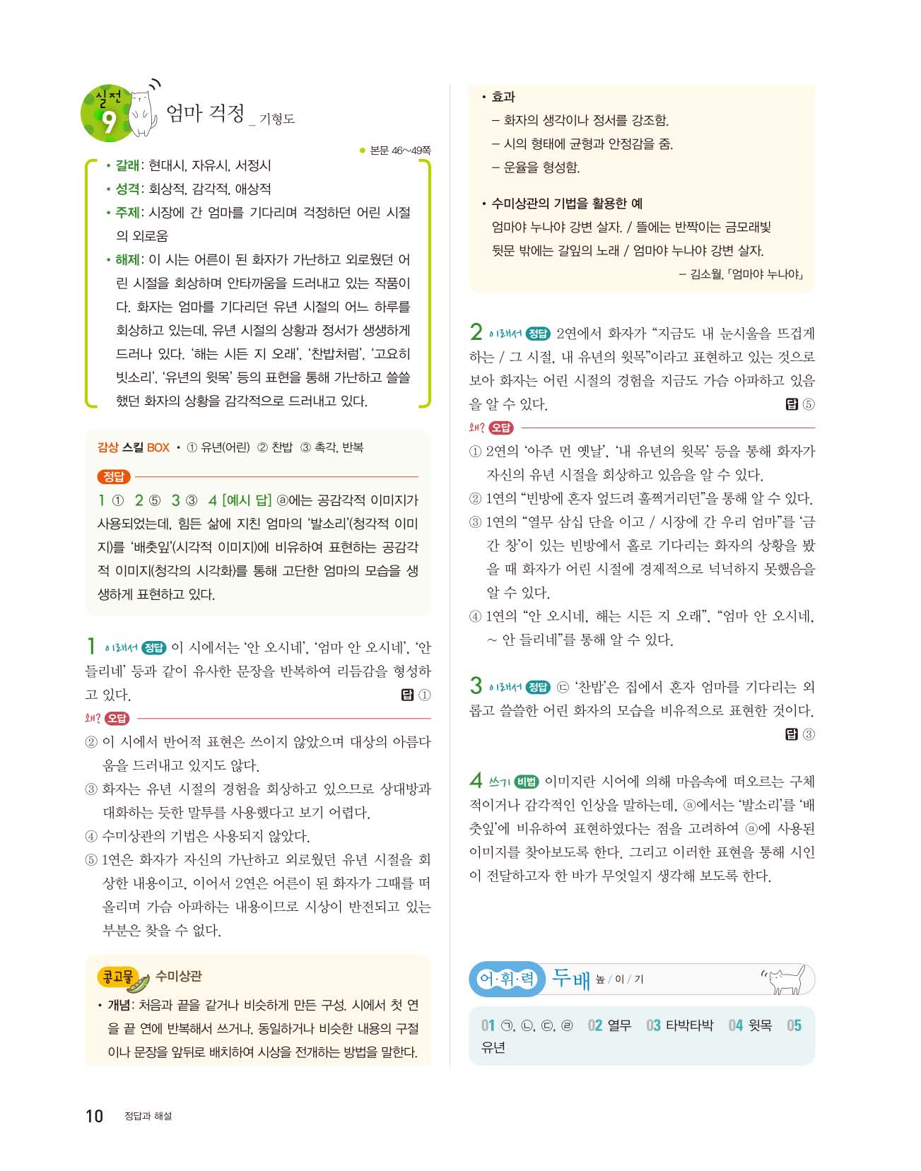 우공비 중학국어 문학2 답지 해설지 사진답지 빠른답지 모바일최적화