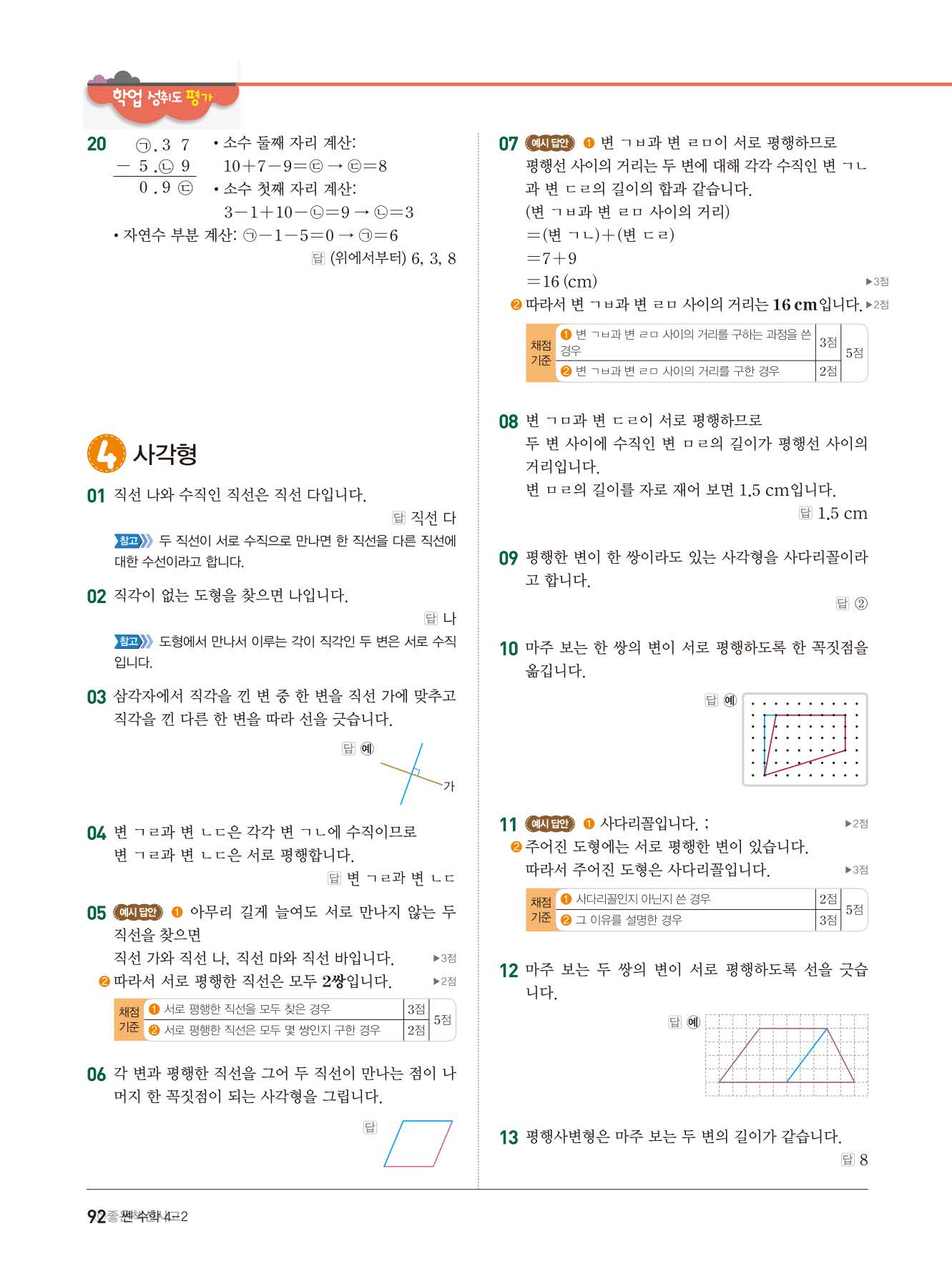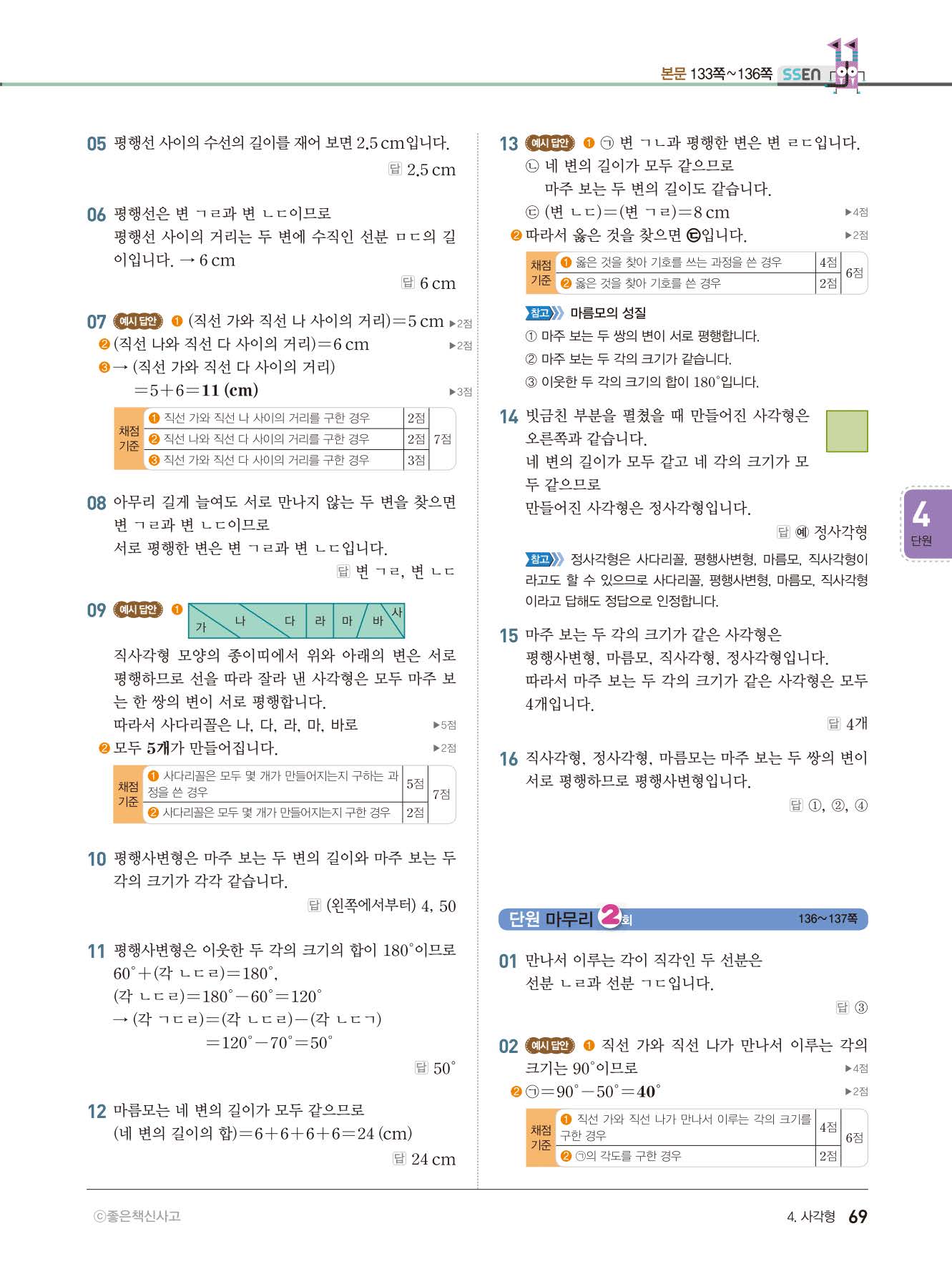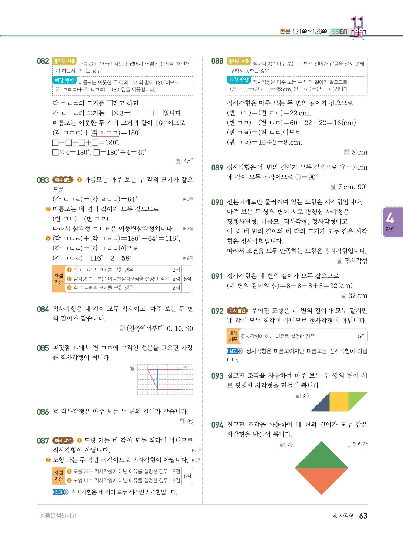 초등쎈초등 4-2 답지 해설지 사진답지 빠른답지 모바일최적화