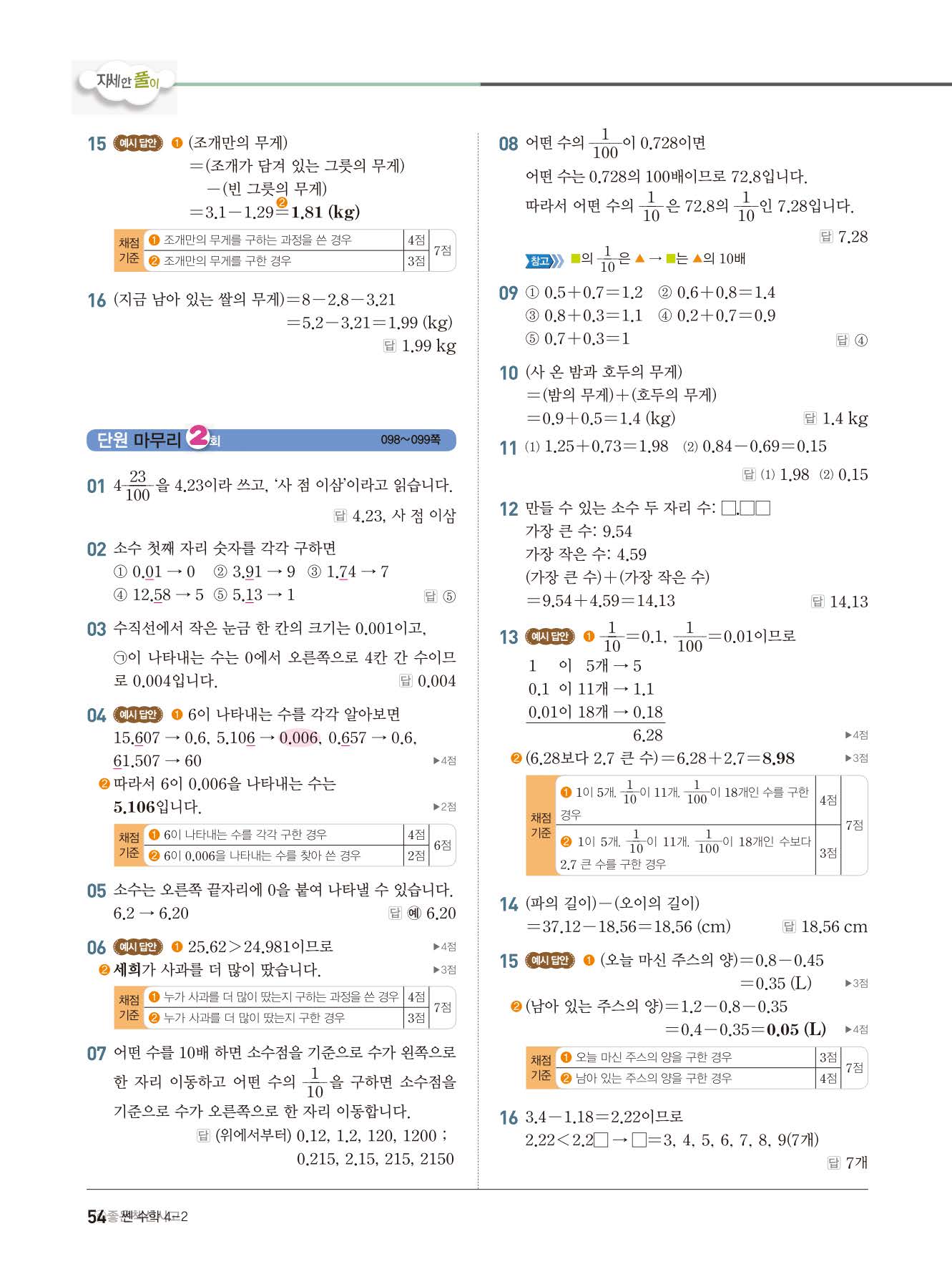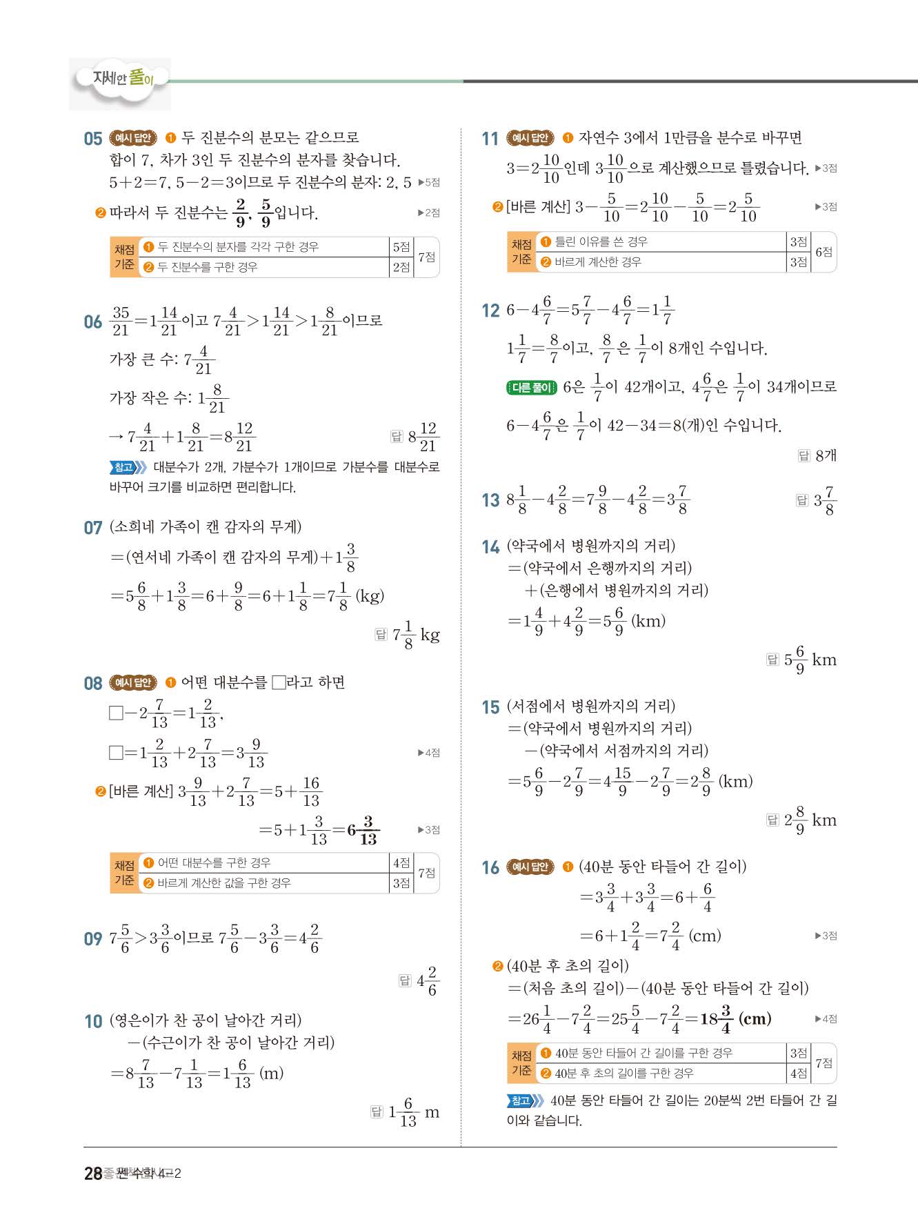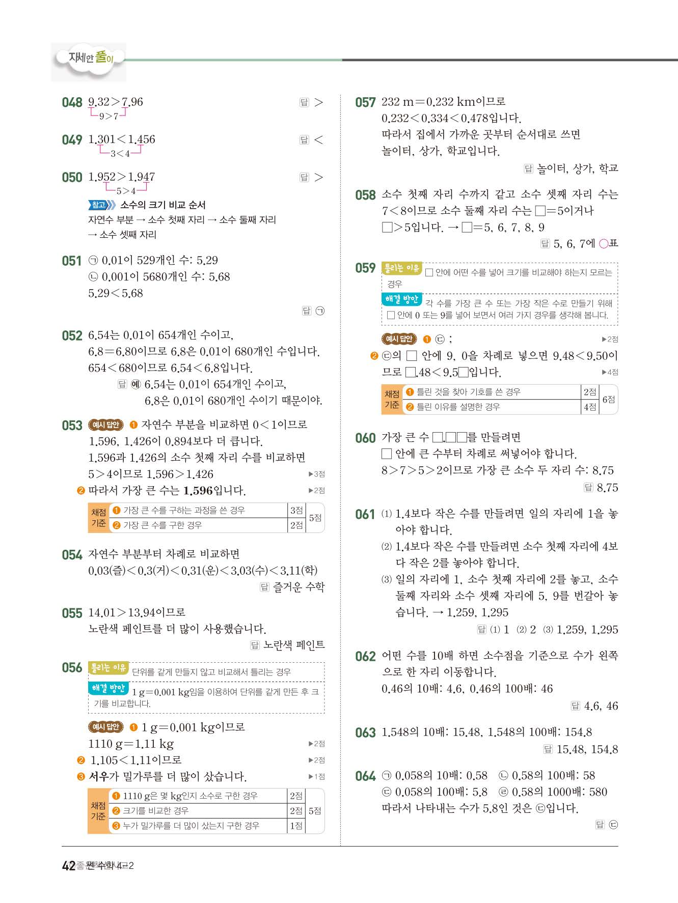 초등쎈초등 4-2 답지 해설지 사진답지 빠른답지 모바일최적화