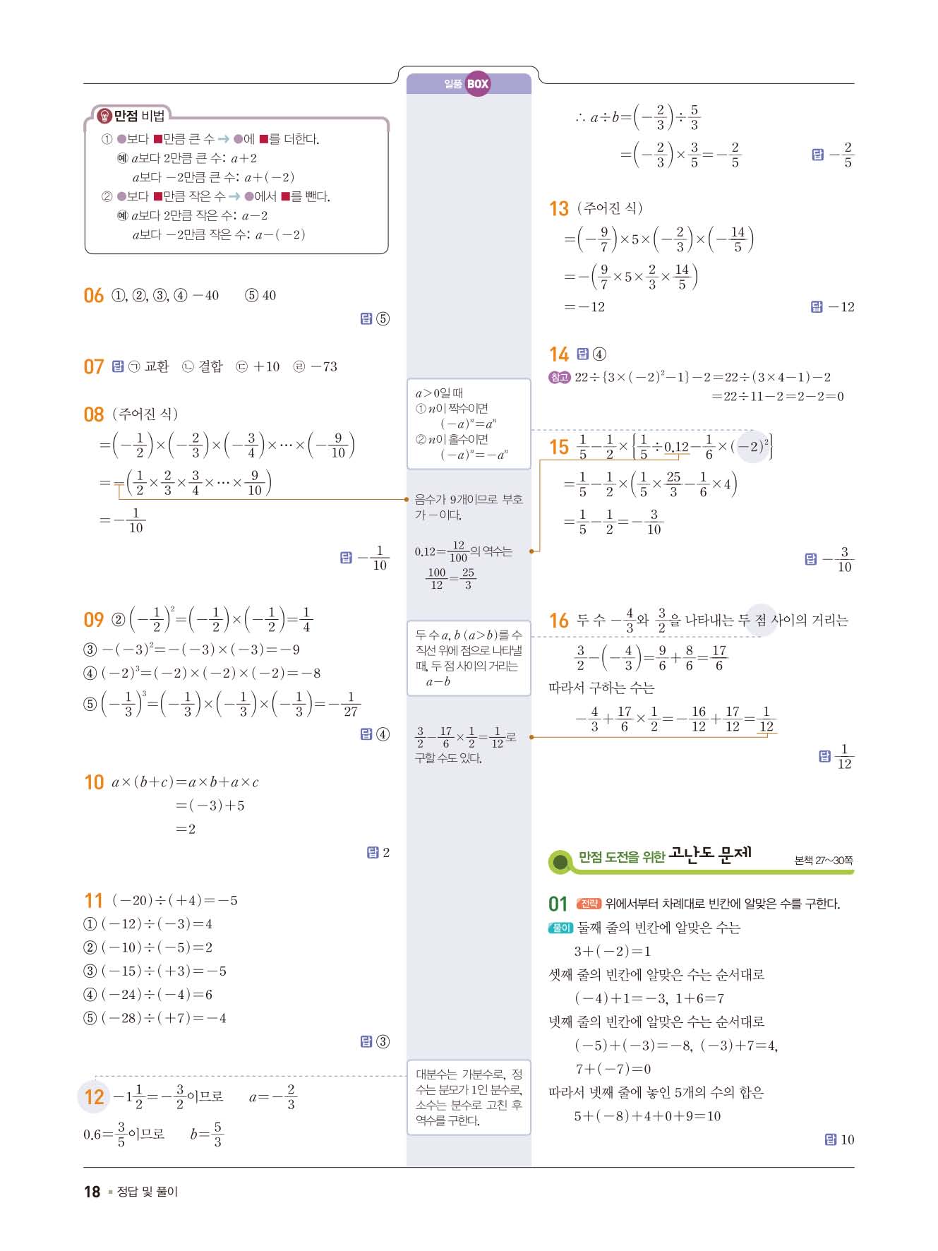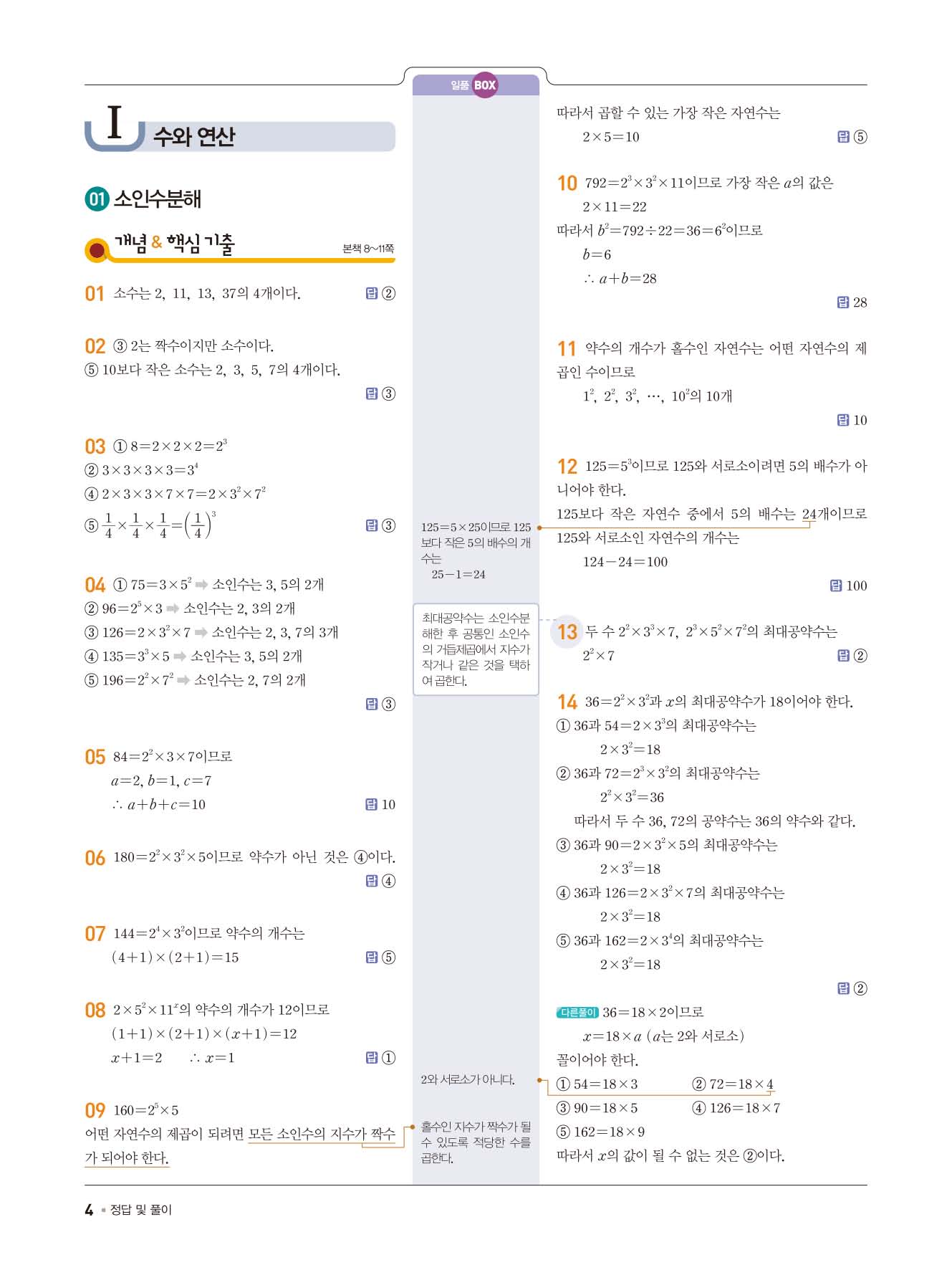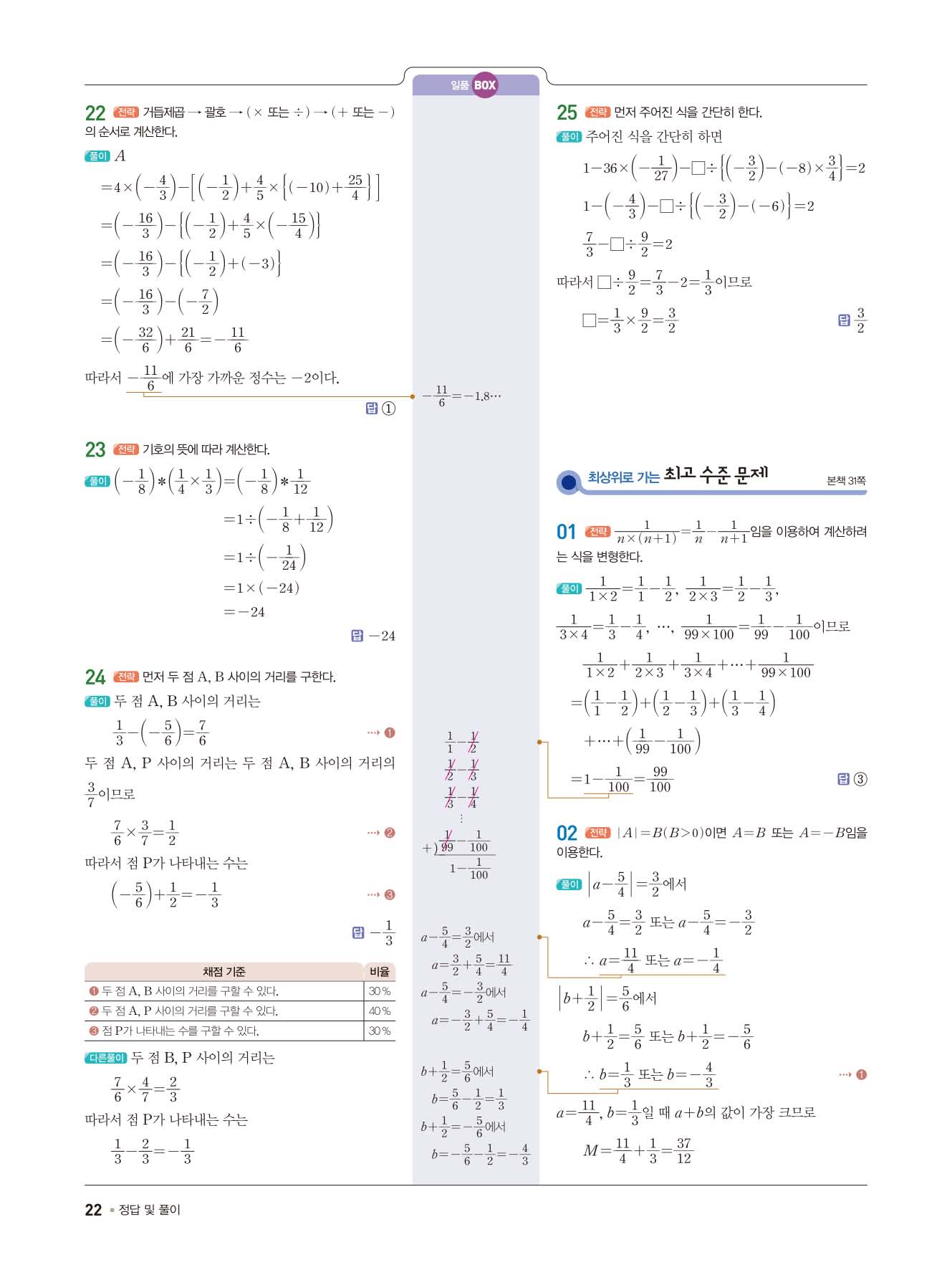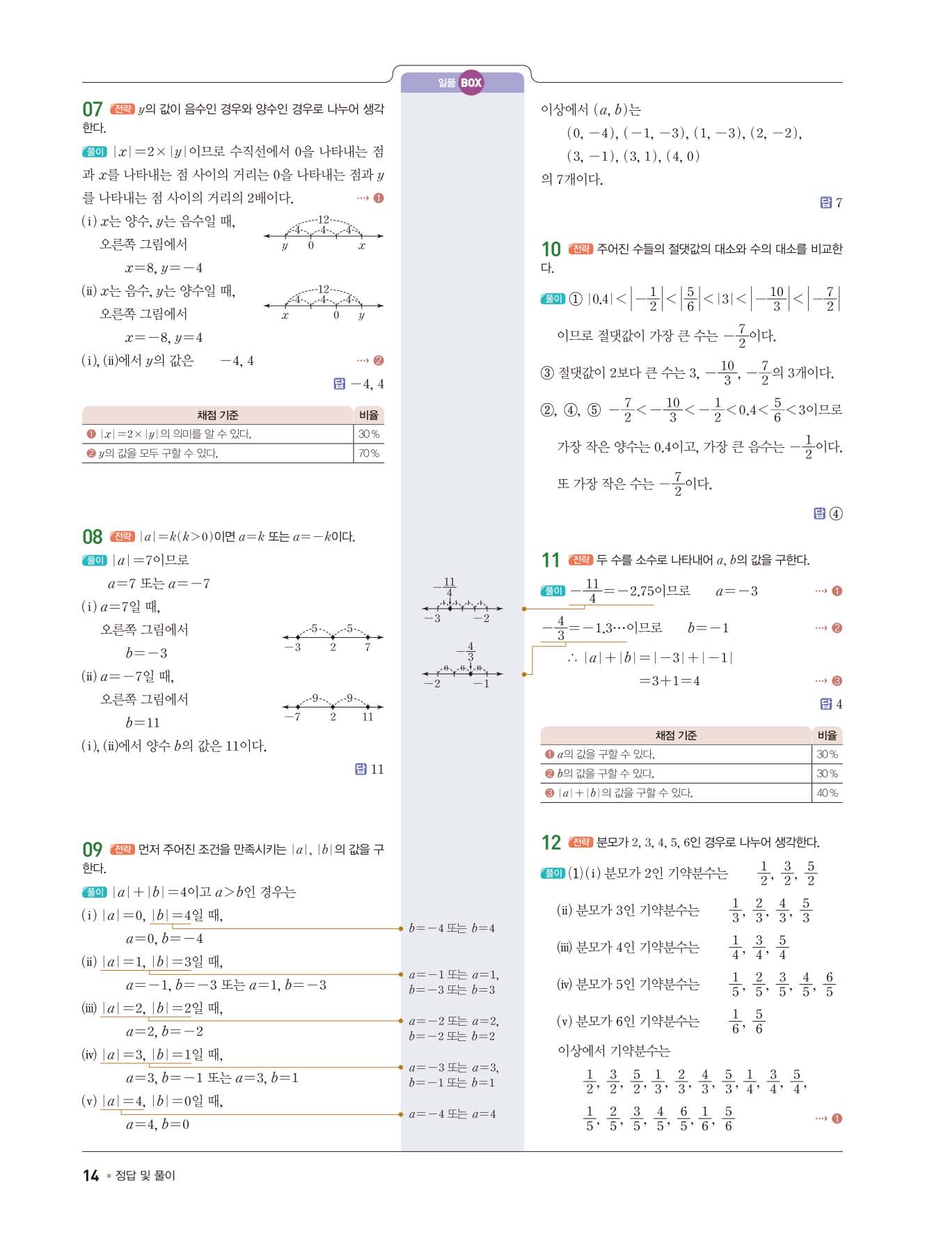 일품중등수학 중1상 1-1 사진답지 빠른답지 모바일최적화