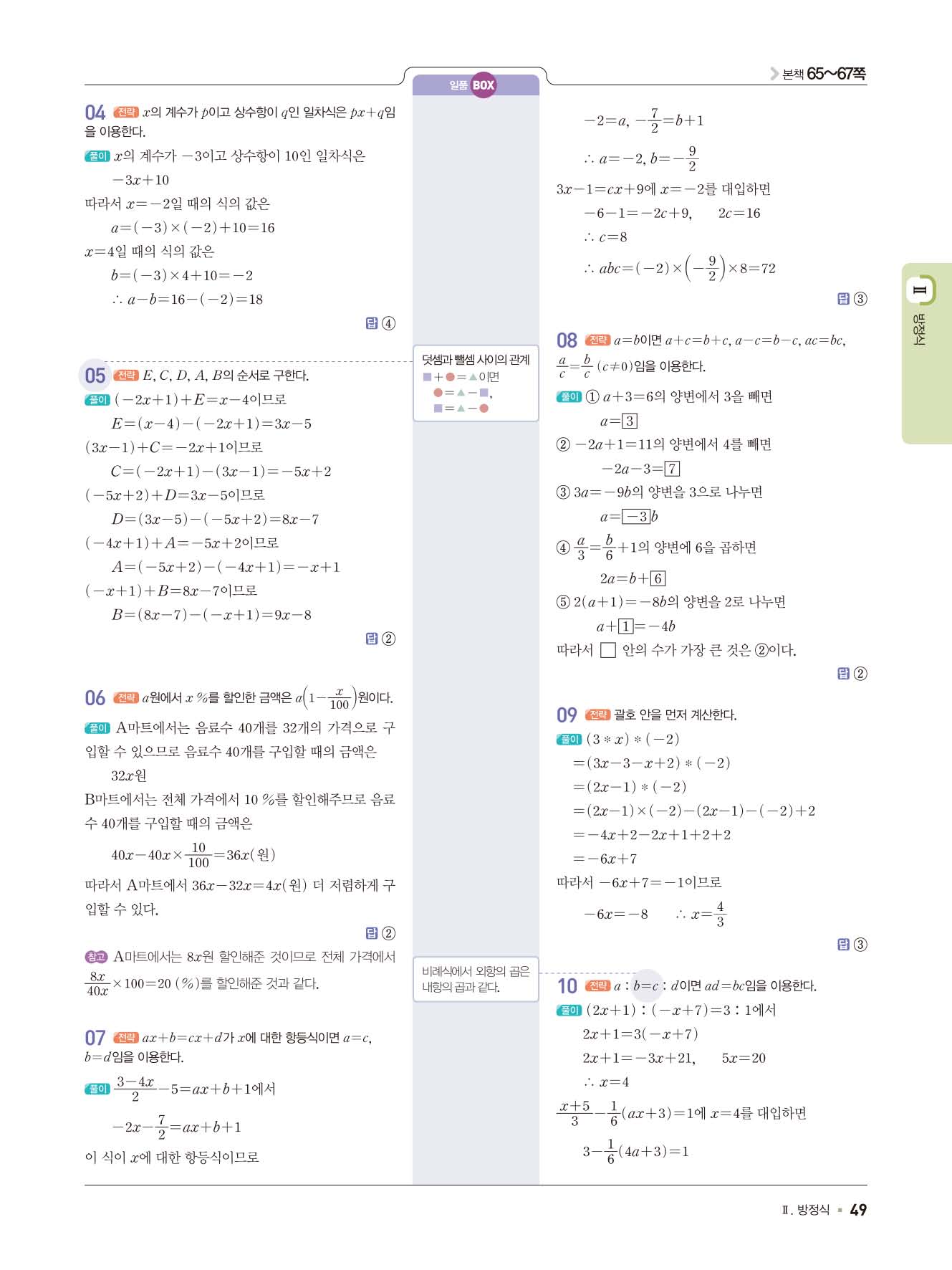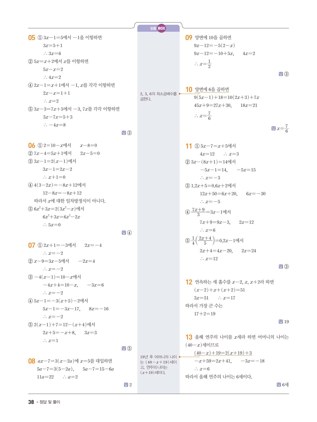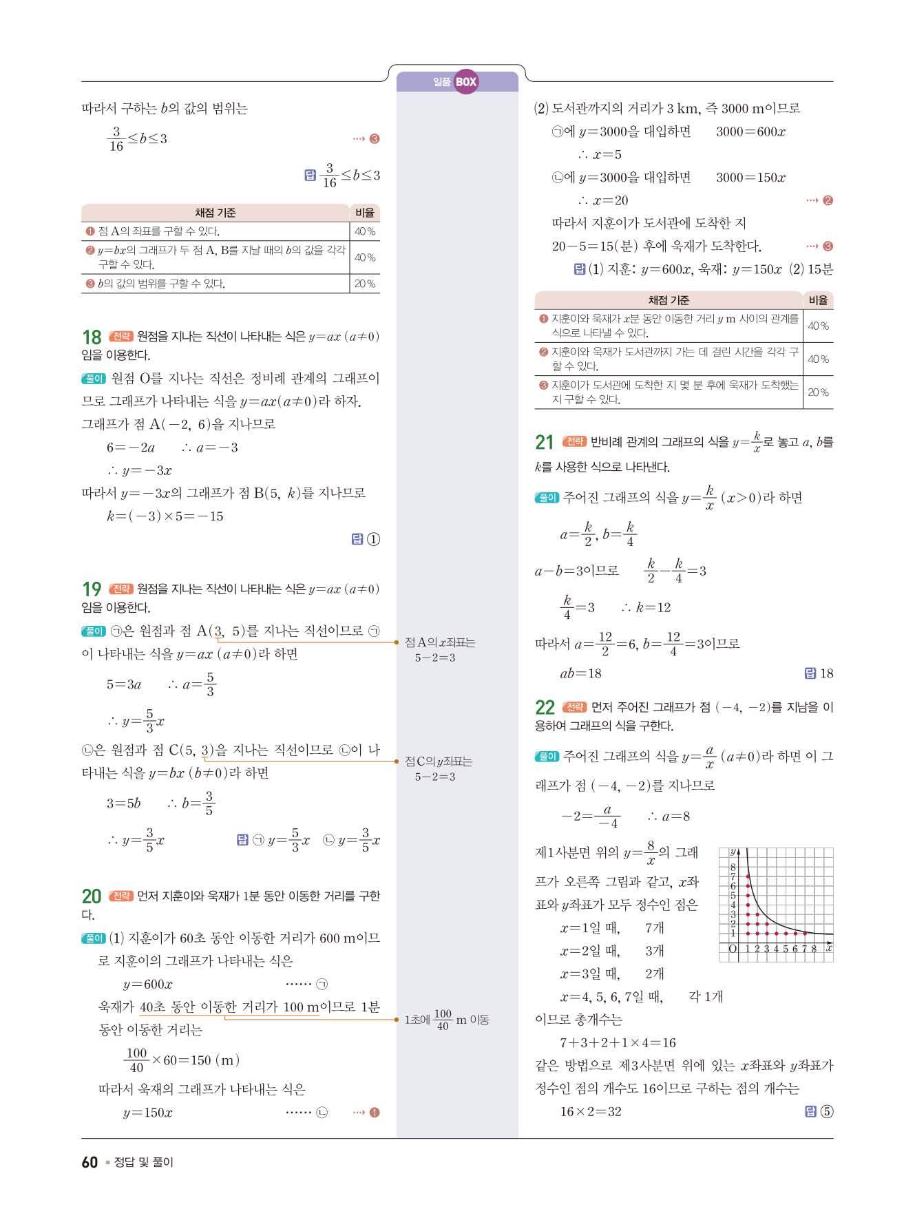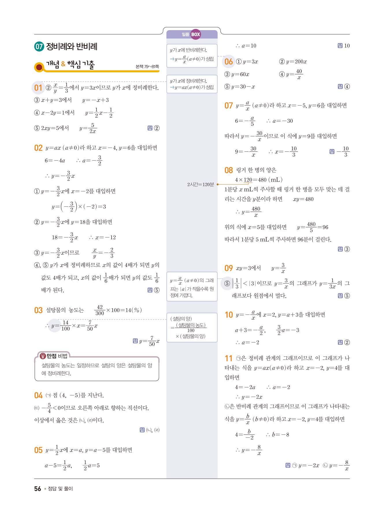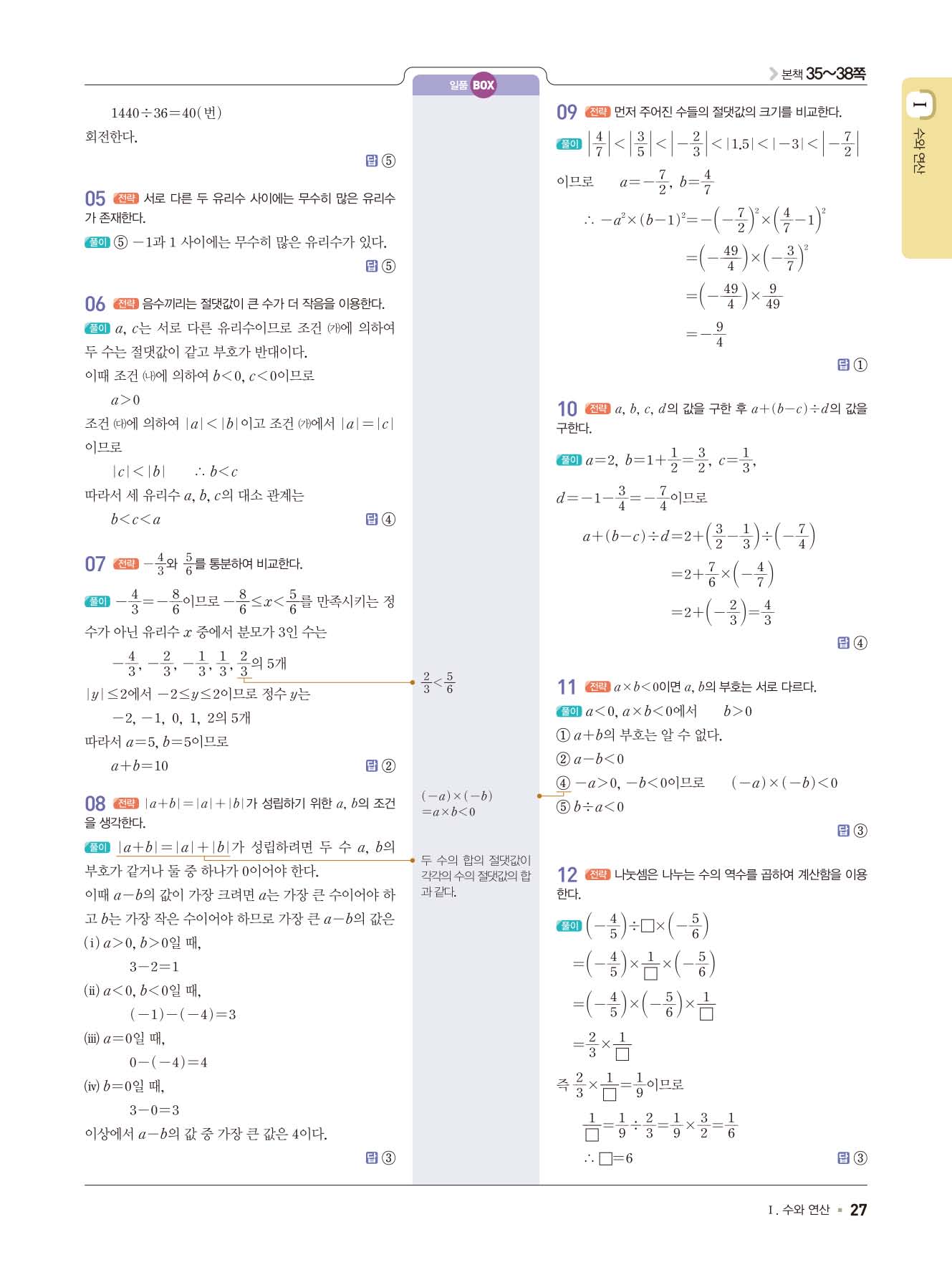 일품중등수학 중1상 1-1 사진답지 빠른답지 모바일최적화