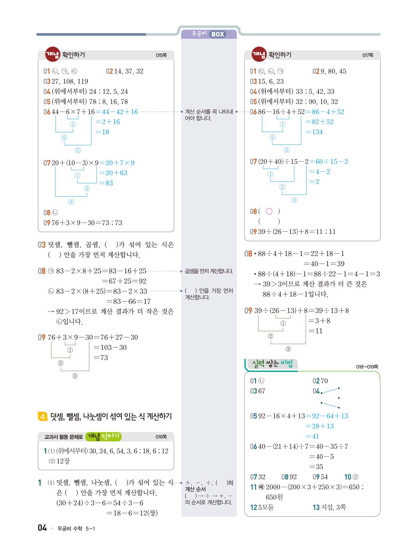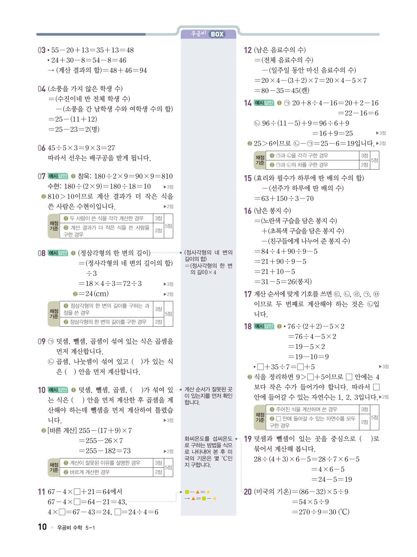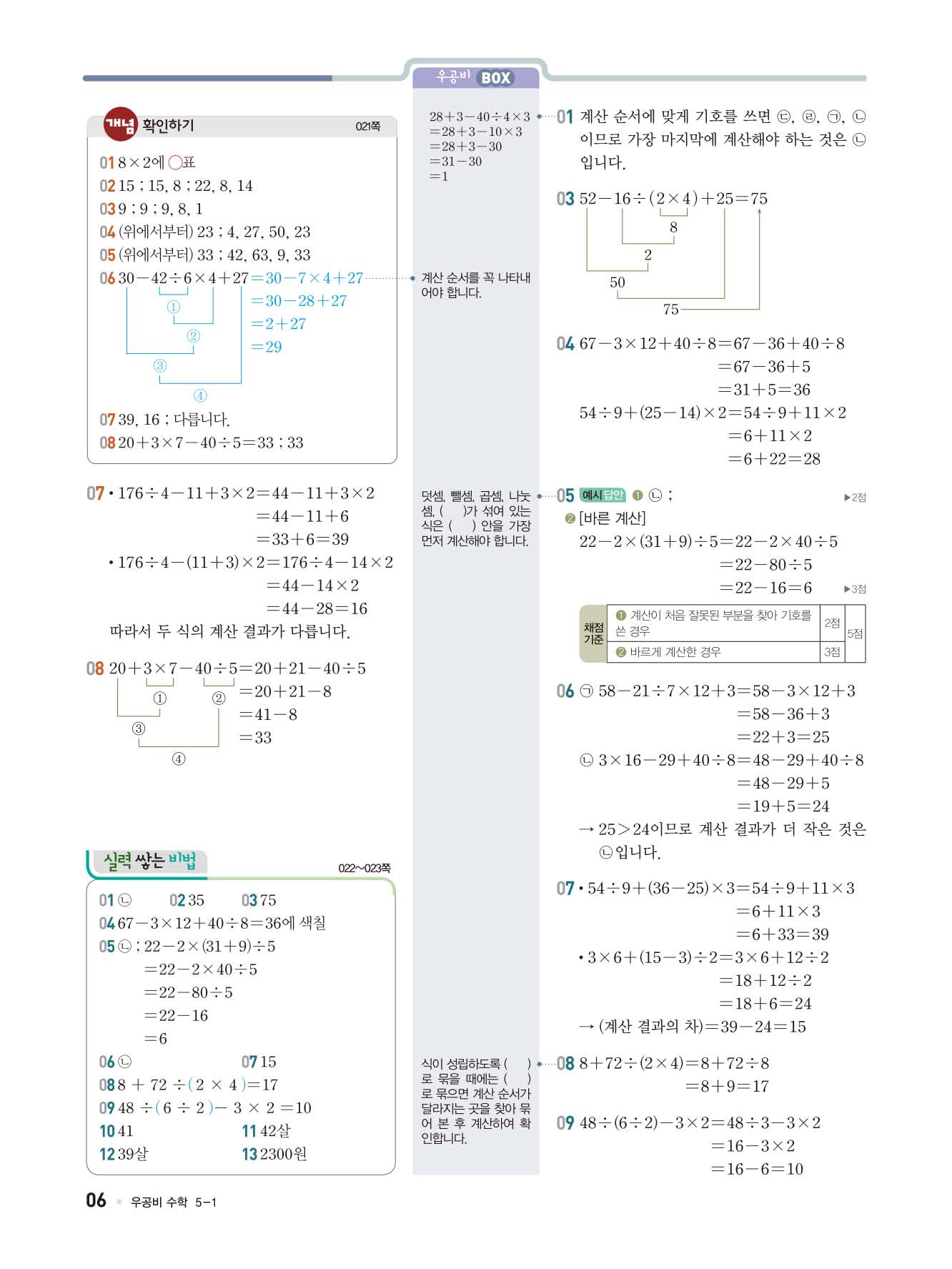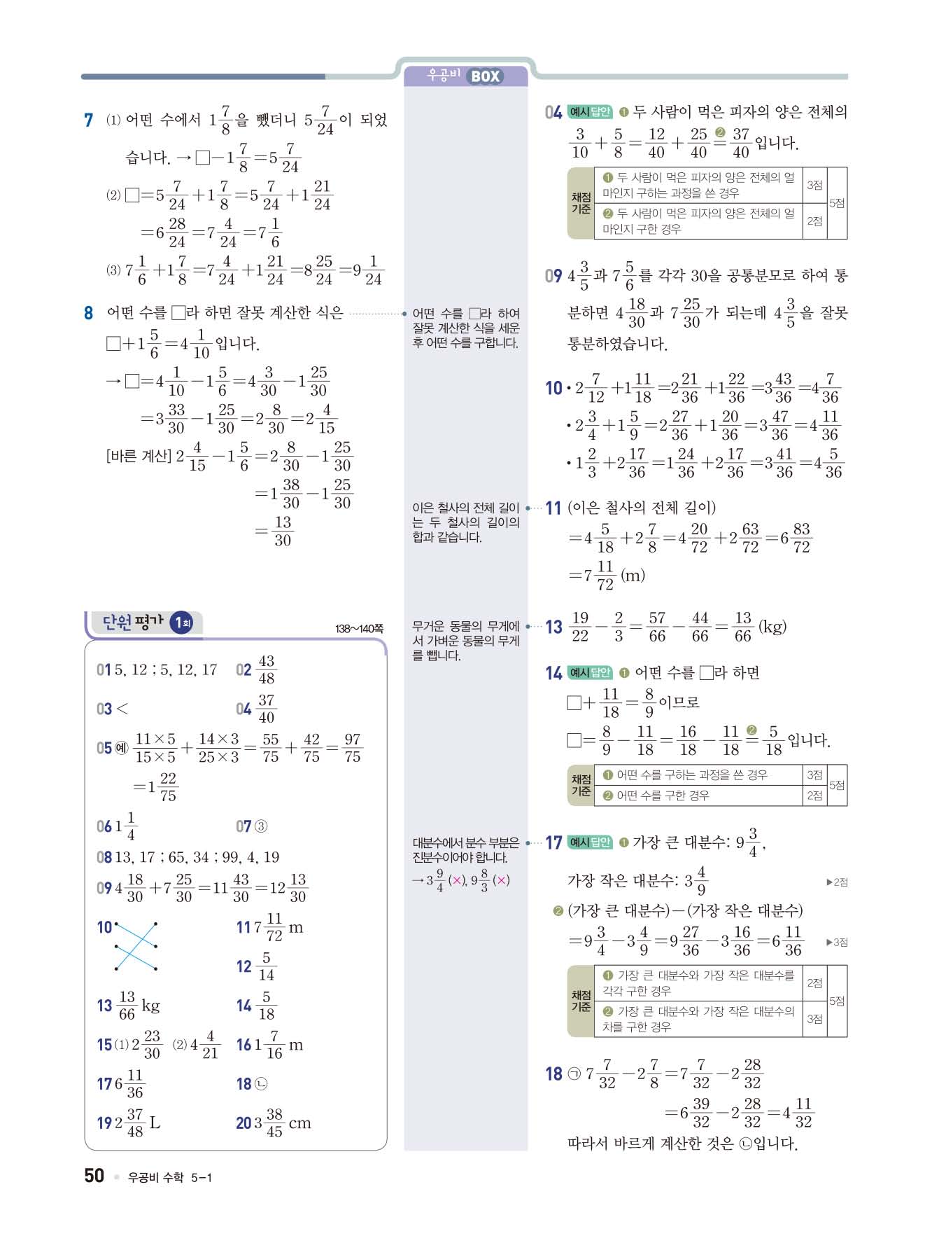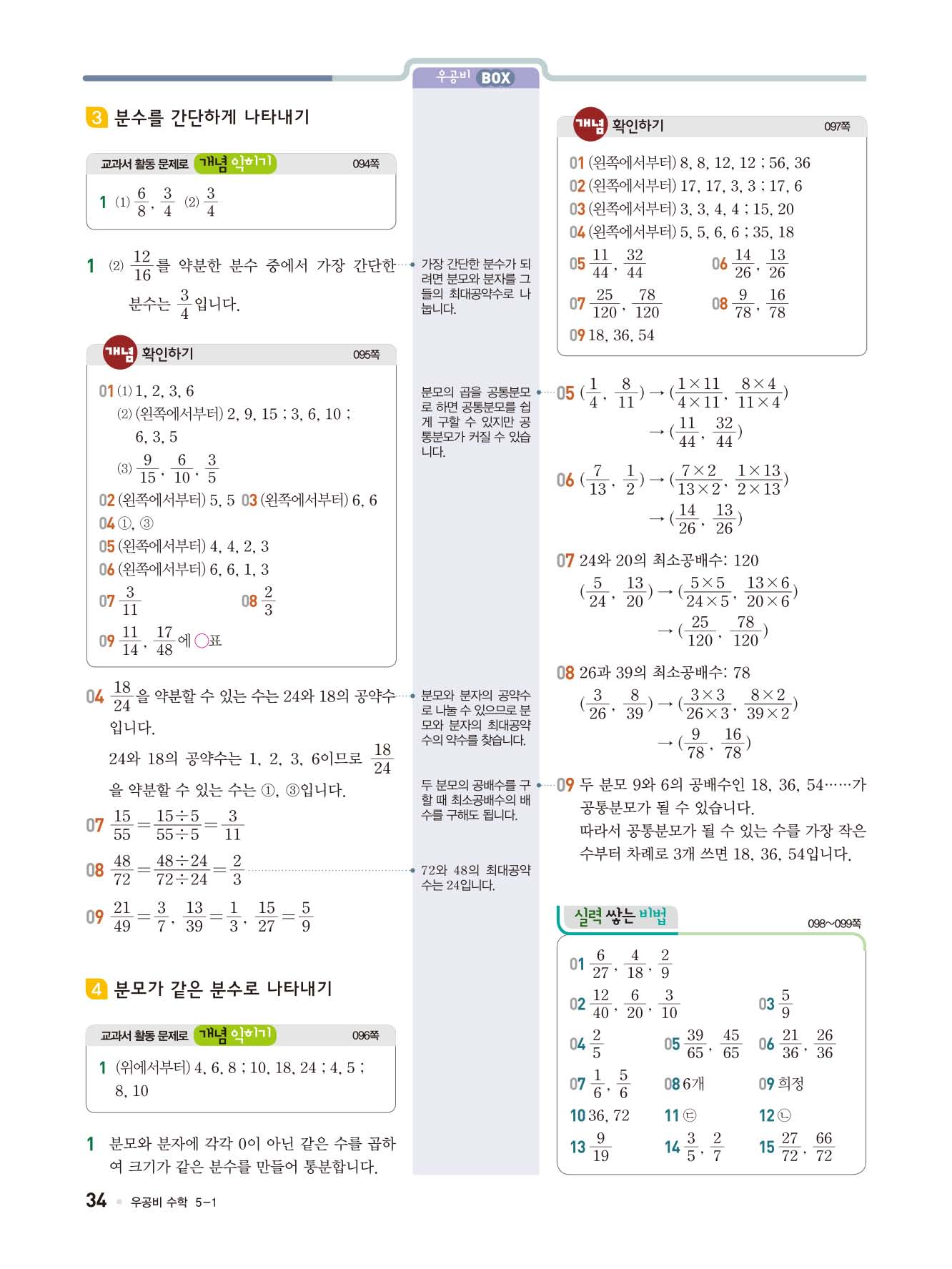 우공비 초등수학 5-1 답지 해설지 사진답지 빠른답지 모바일최적화