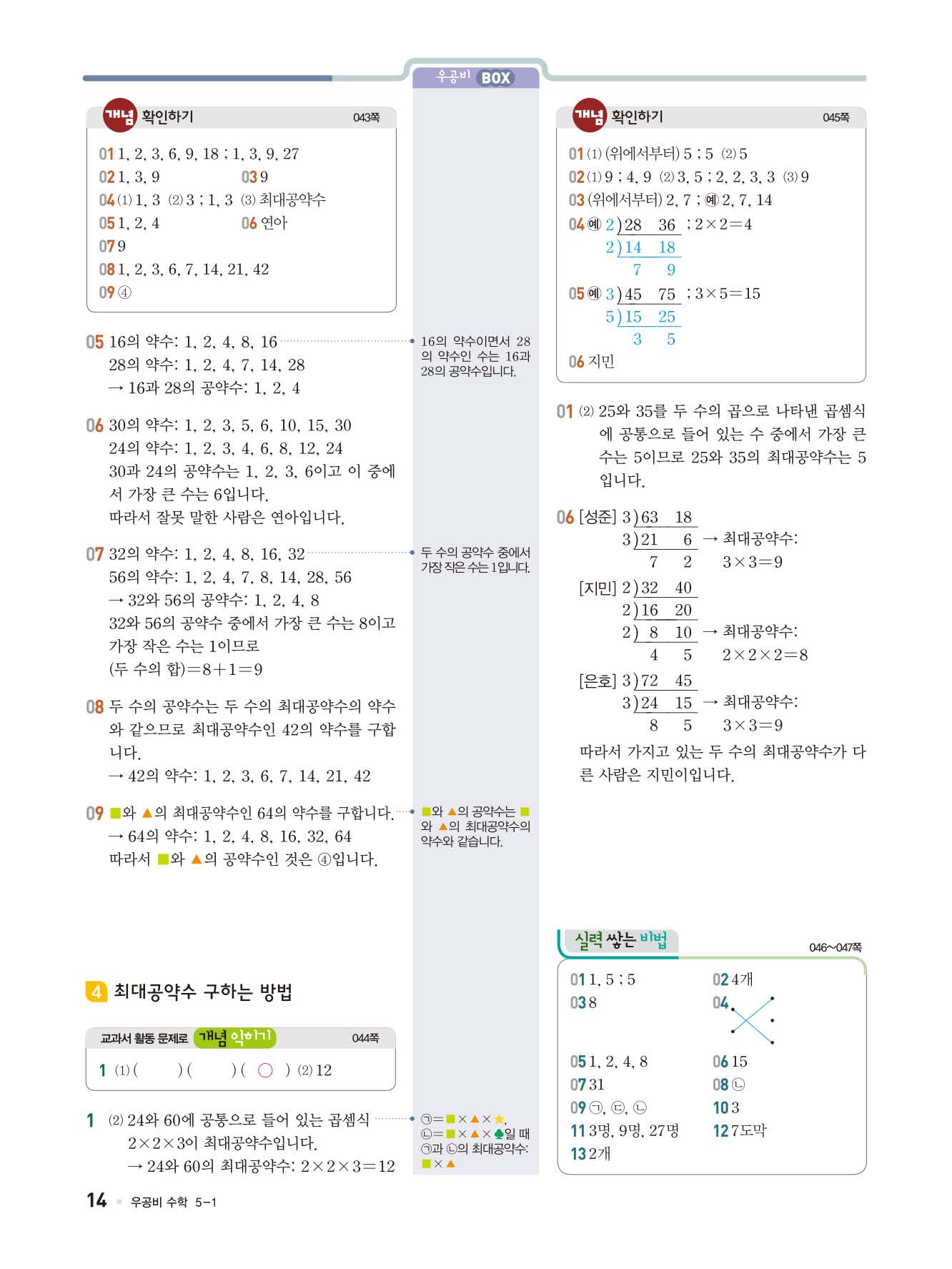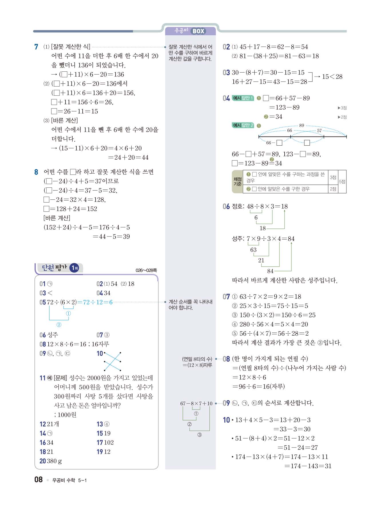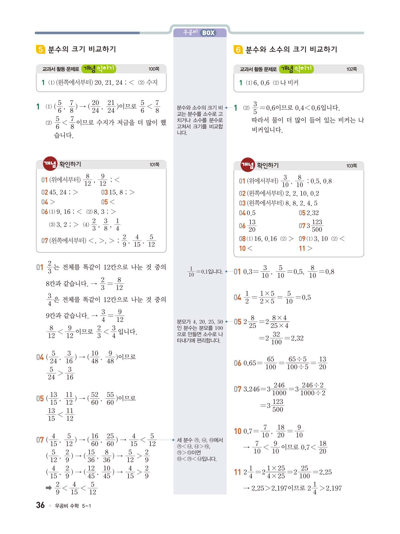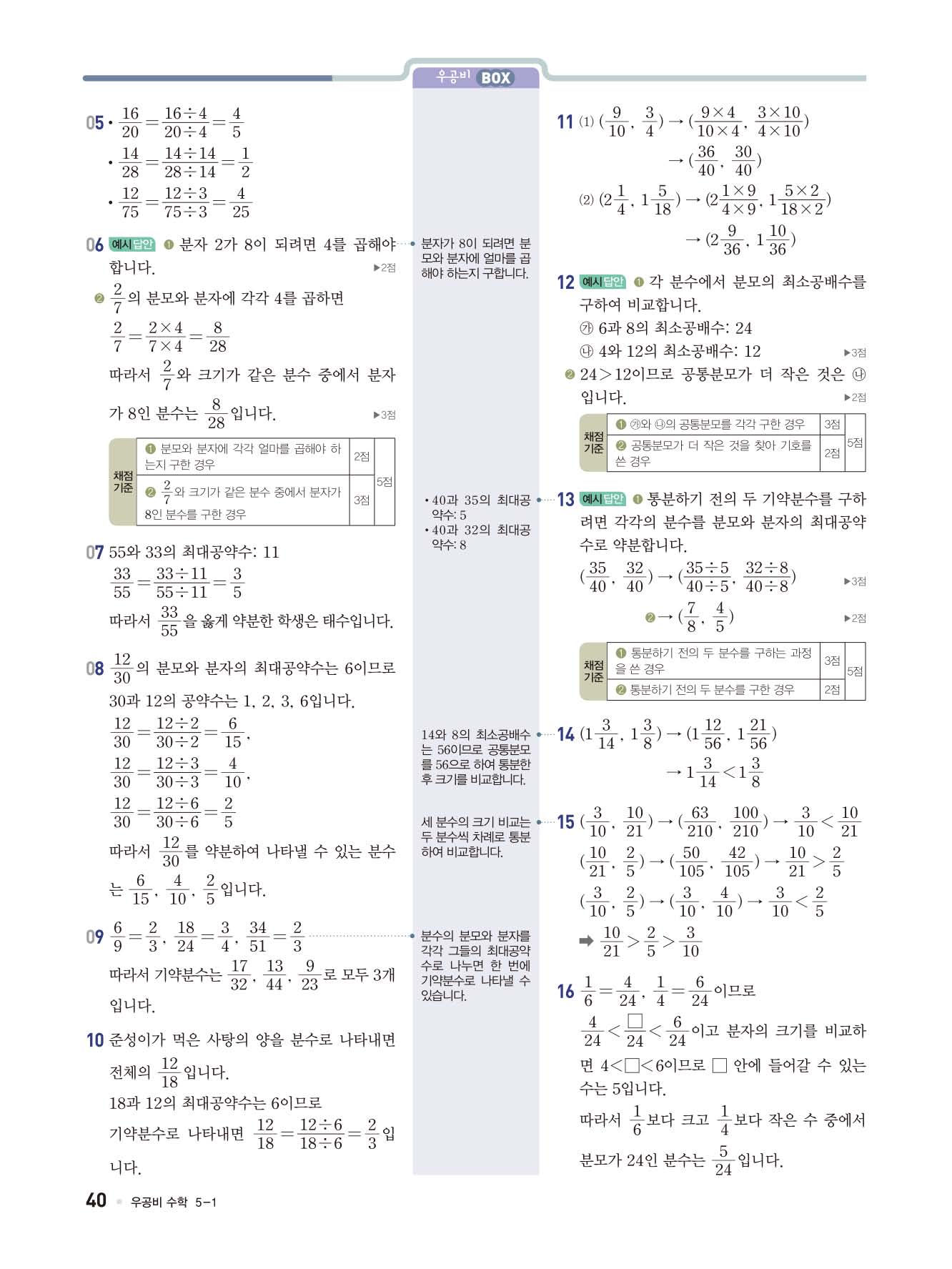 우공비 초등수학 5-1 답지 해설지 사진답지 빠른답지 모바일최적화
