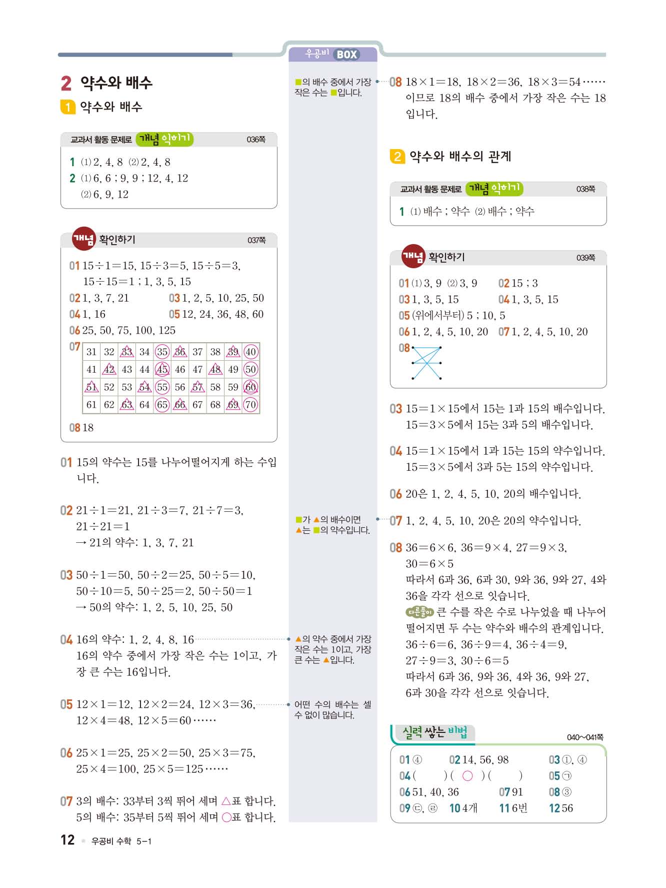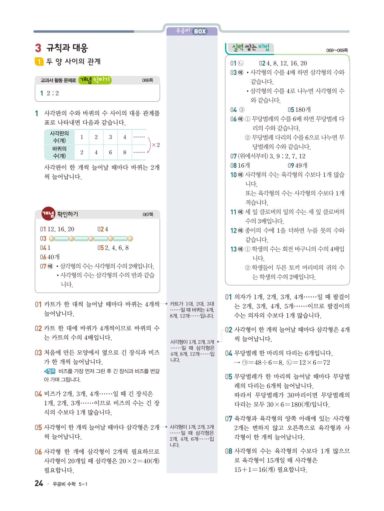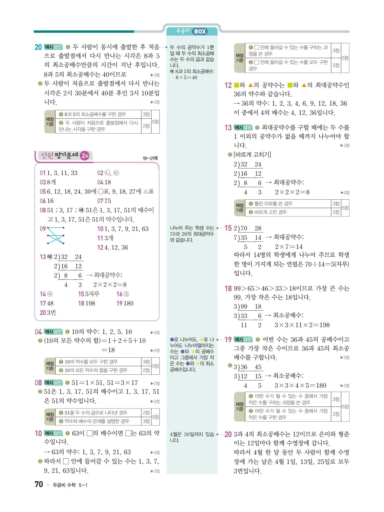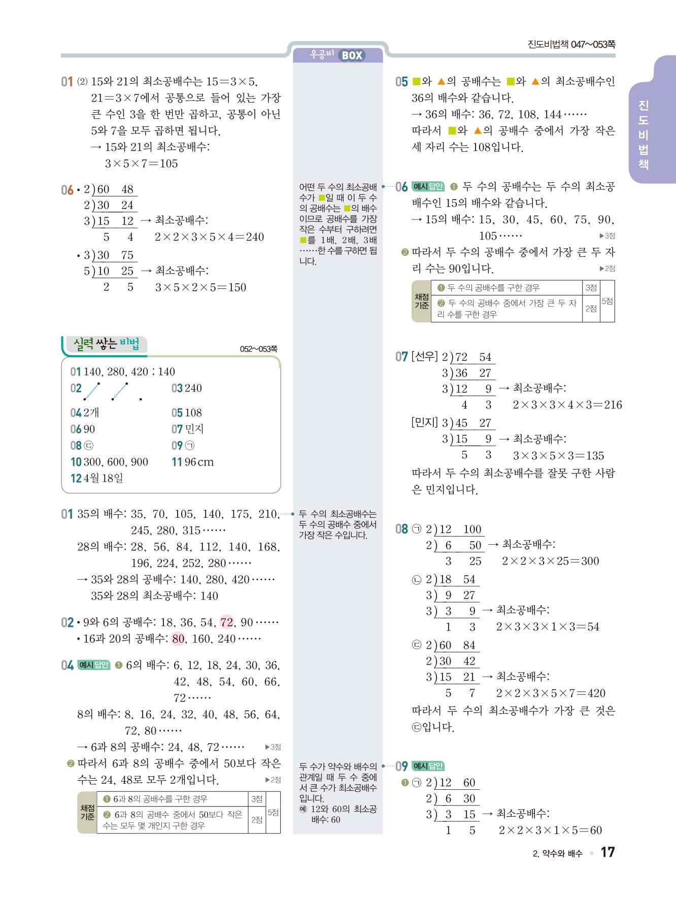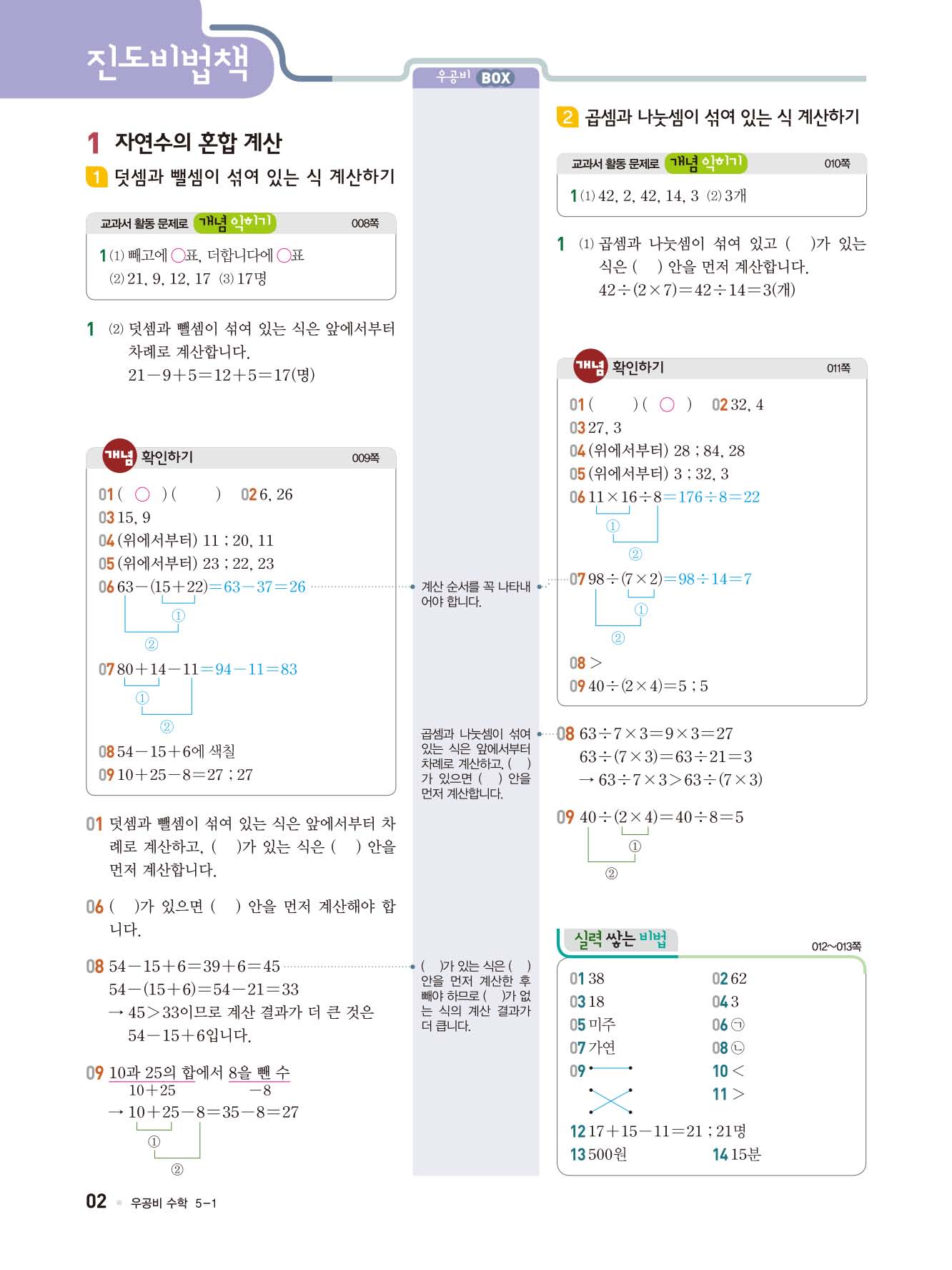 우공비 초등수학 5-1 답지 해설지 사진답지 빠른답지 모바일최적화