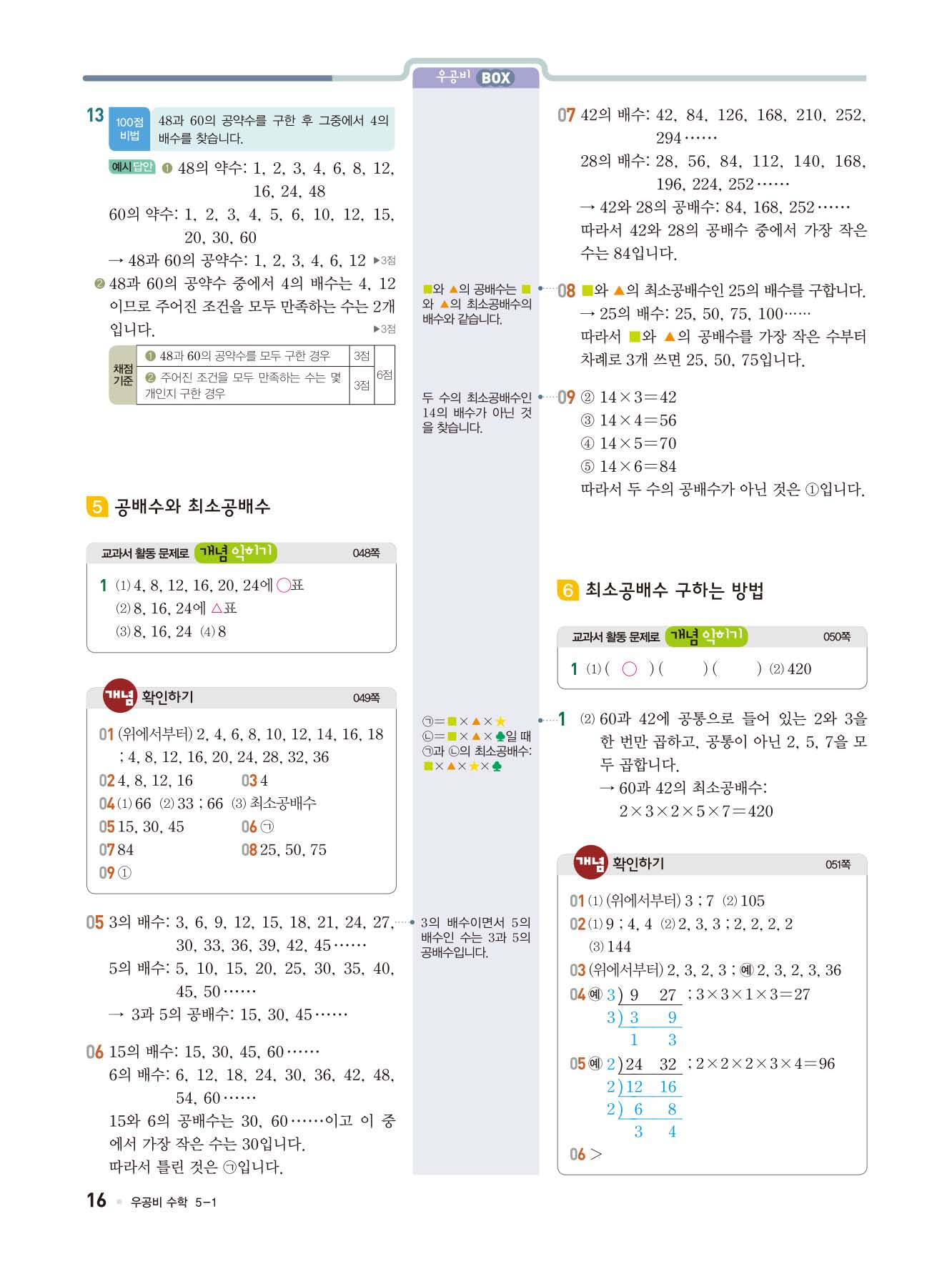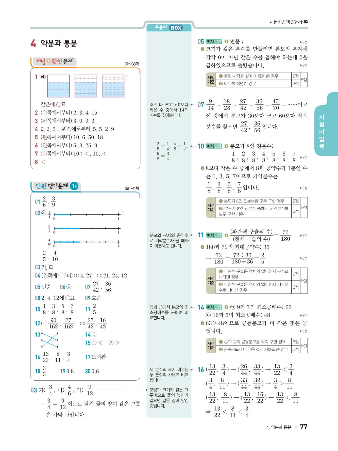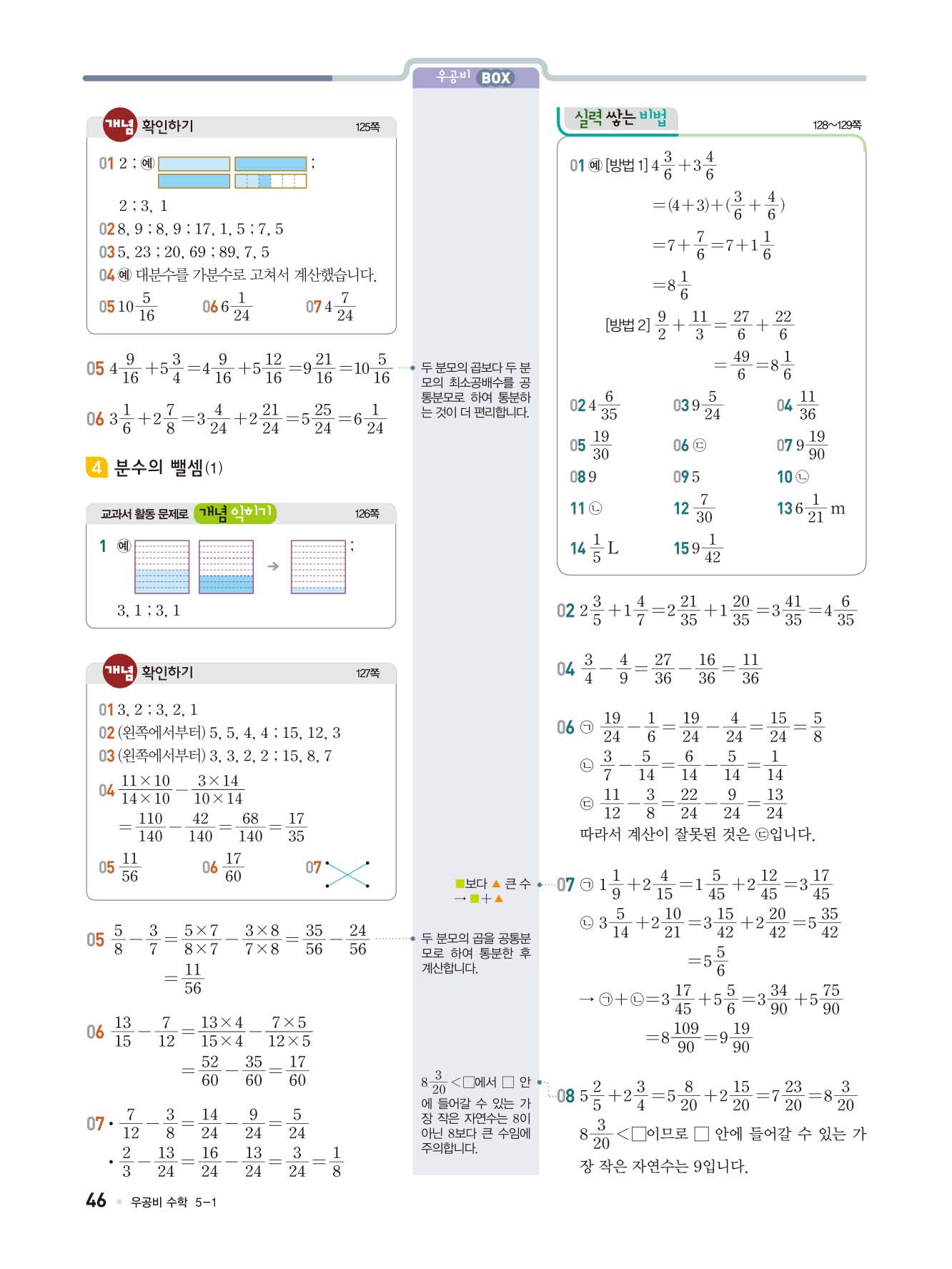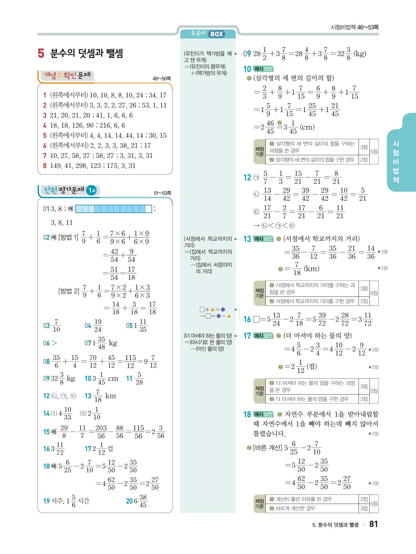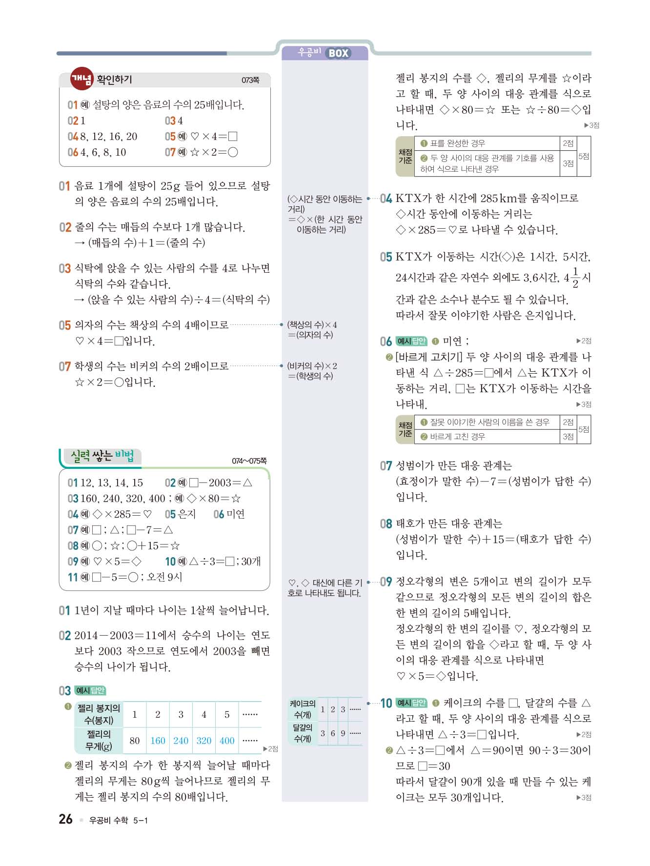 우공비 초등수학 5-1 답지 해설지 사진답지 빠른답지 모바일최적화