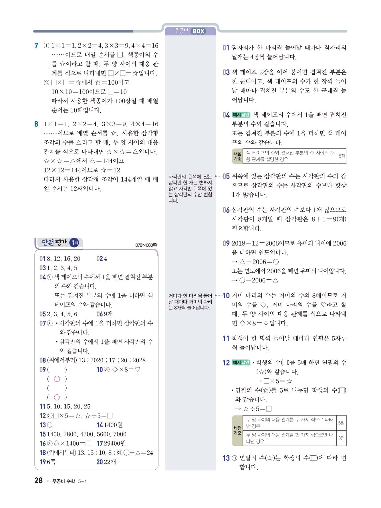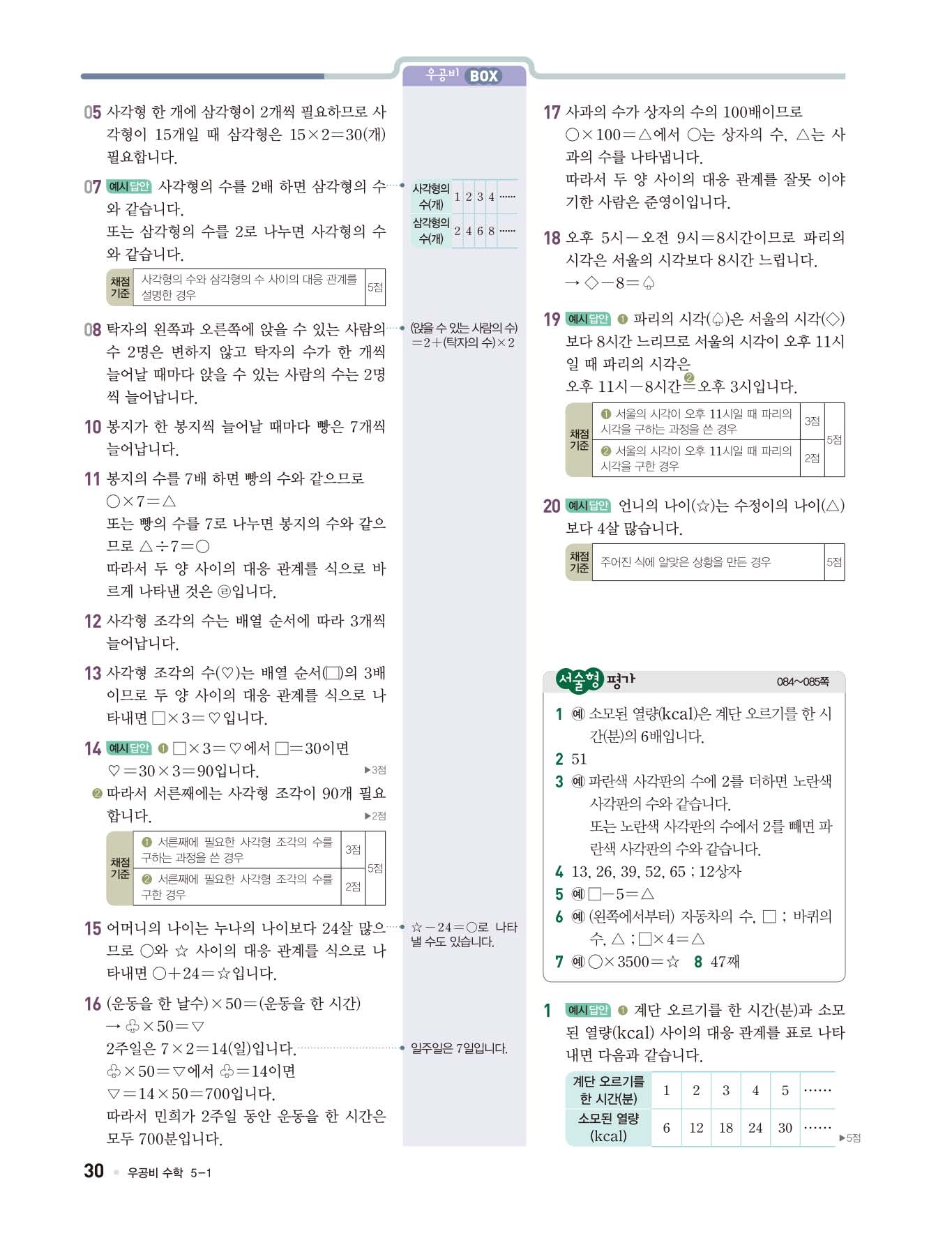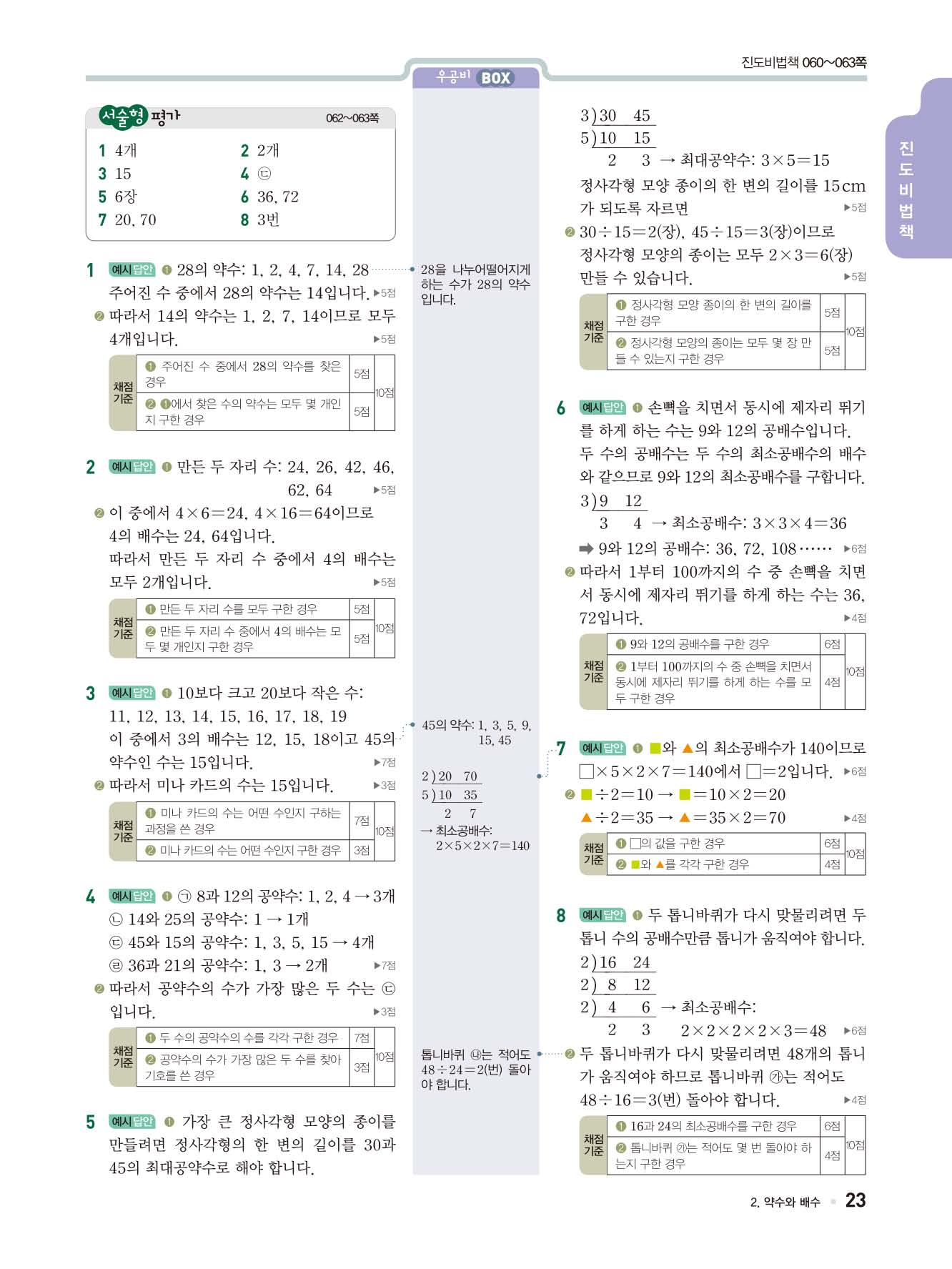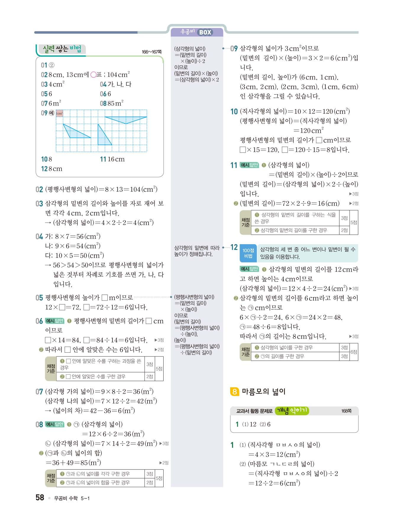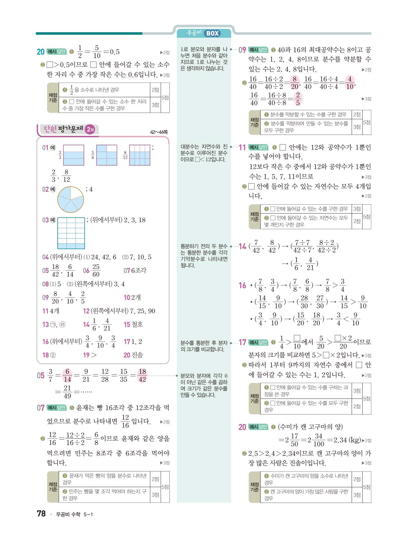 우공비 초등수학 5-1 답지 해설지 사진답지 빠른답지 모바일최적화