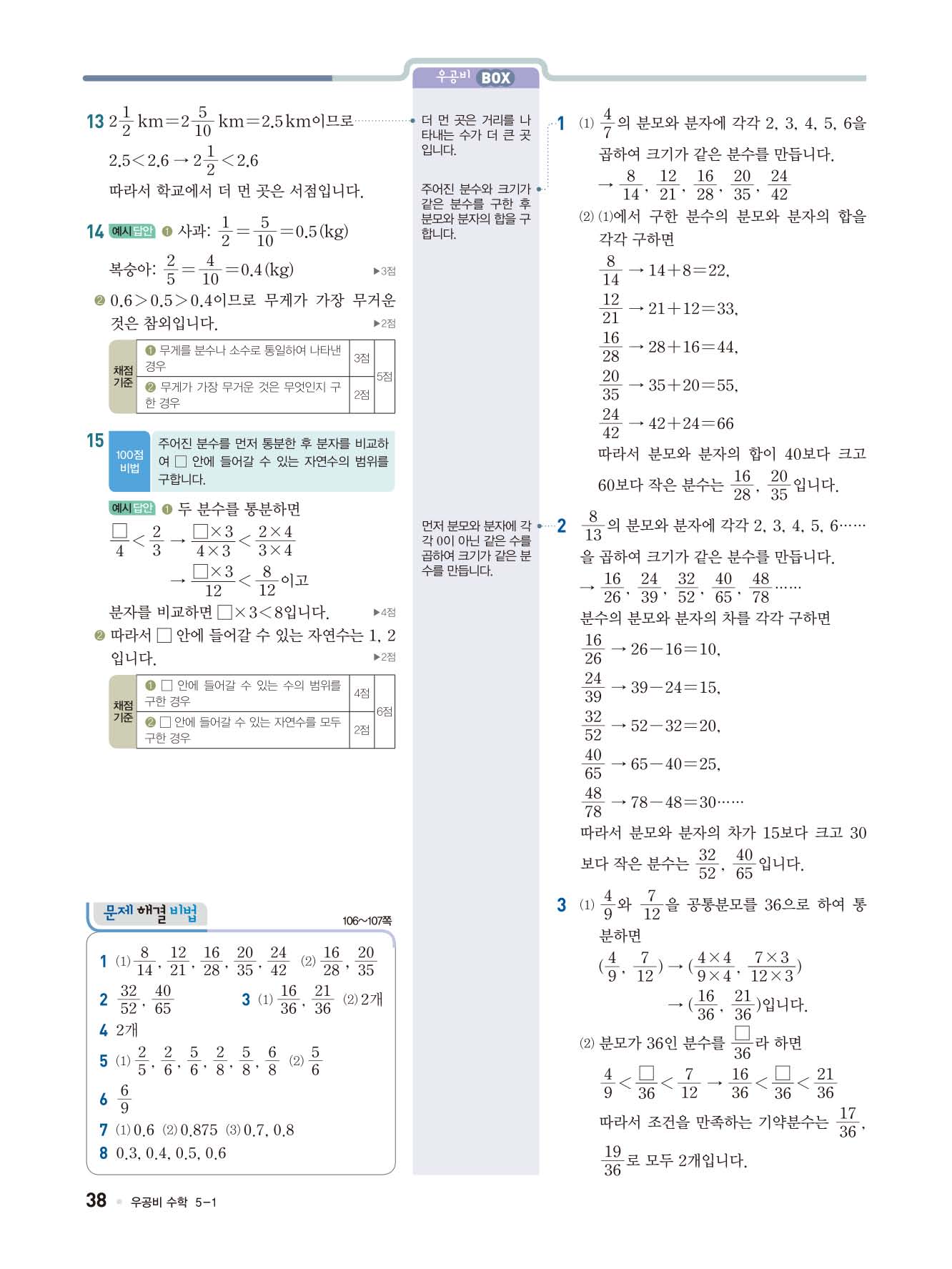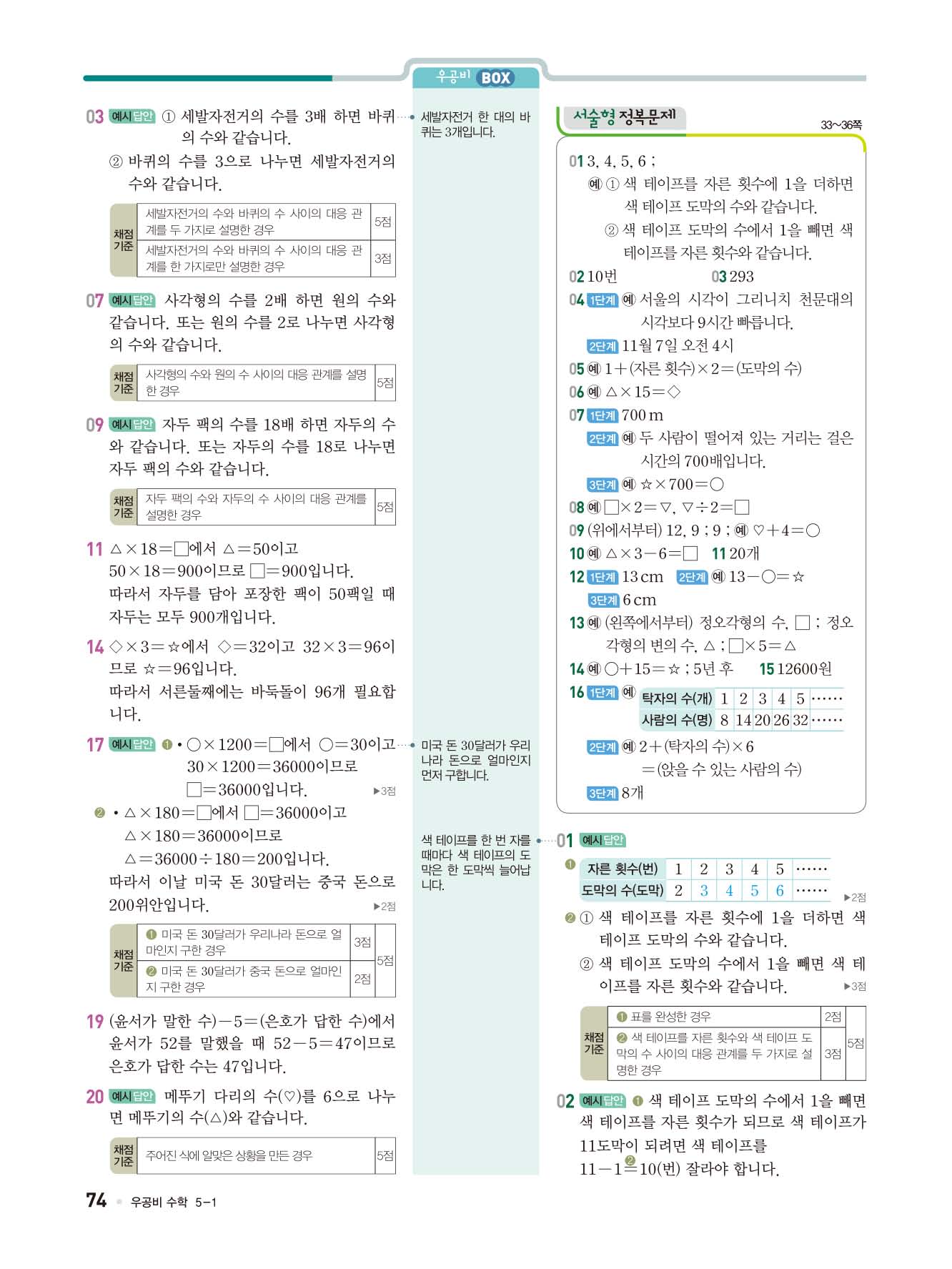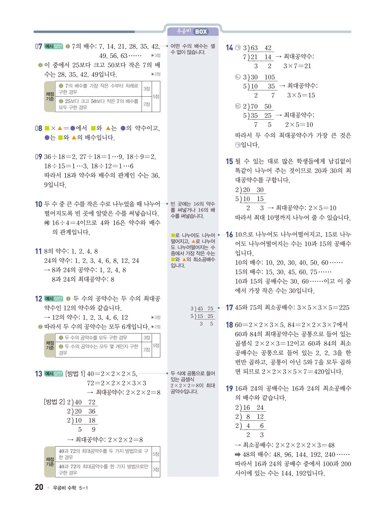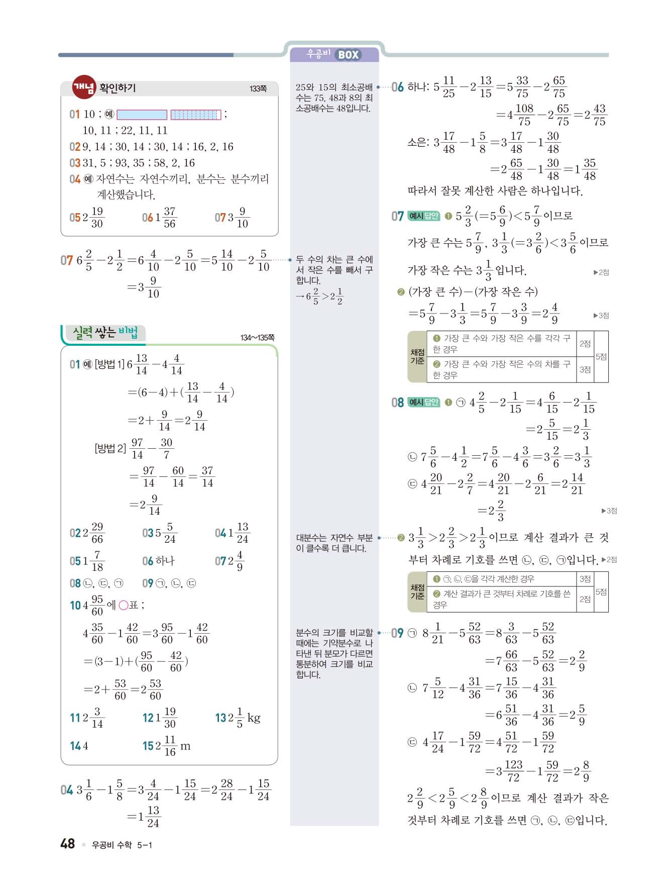 우공비 초등수학 5-1 답지 해설지 사진답지 빠른답지 모바일최적화