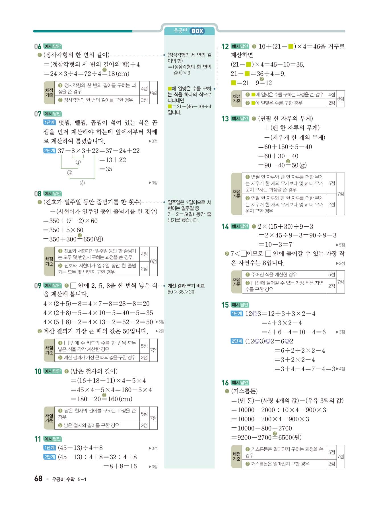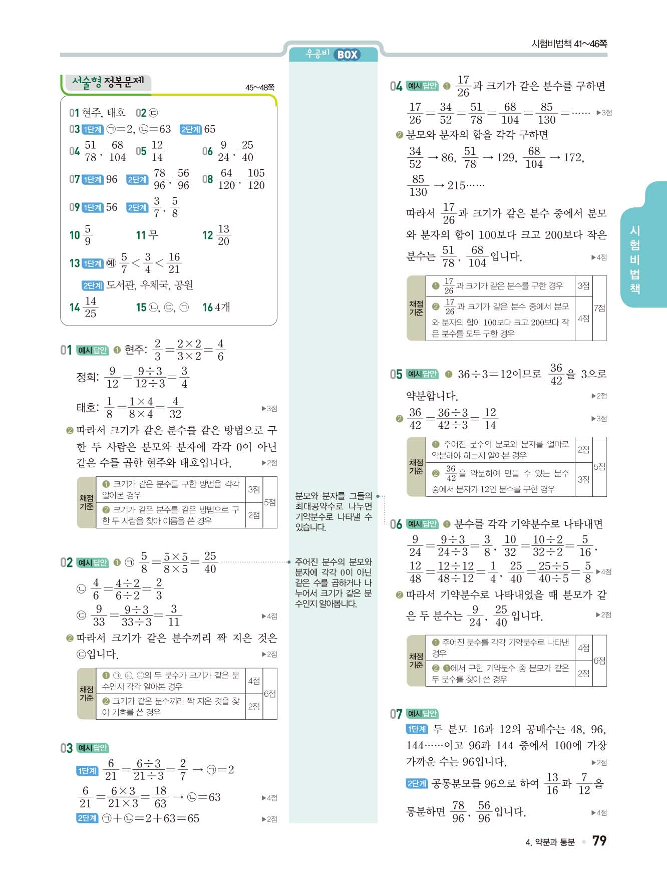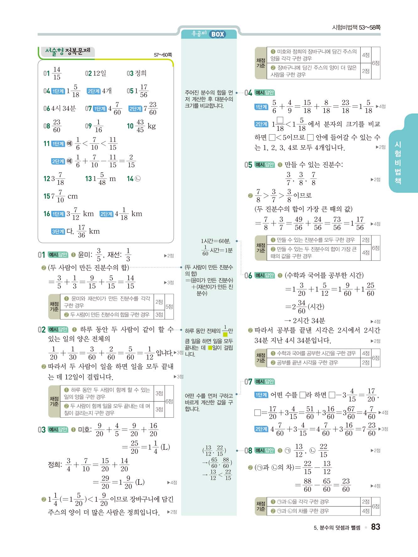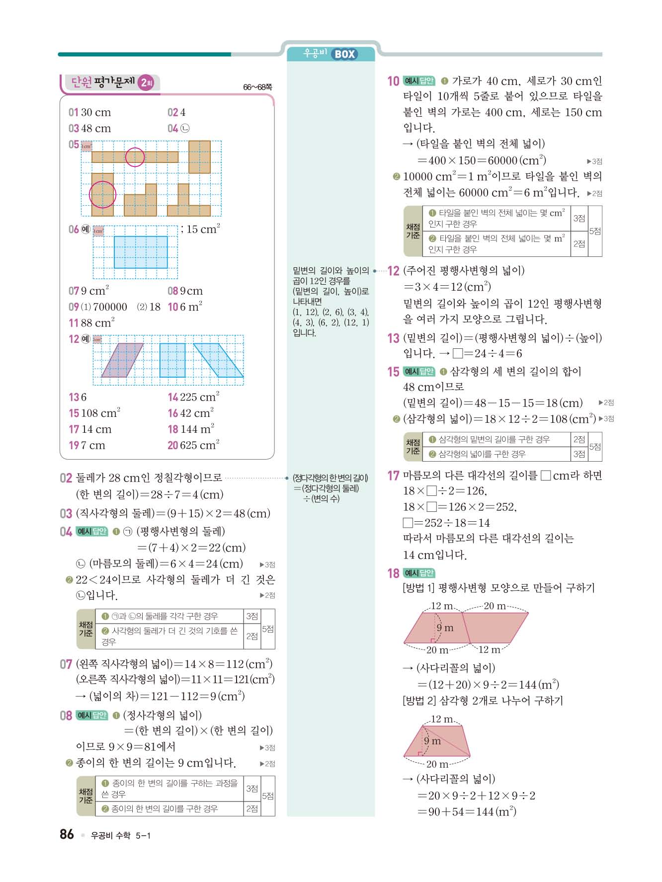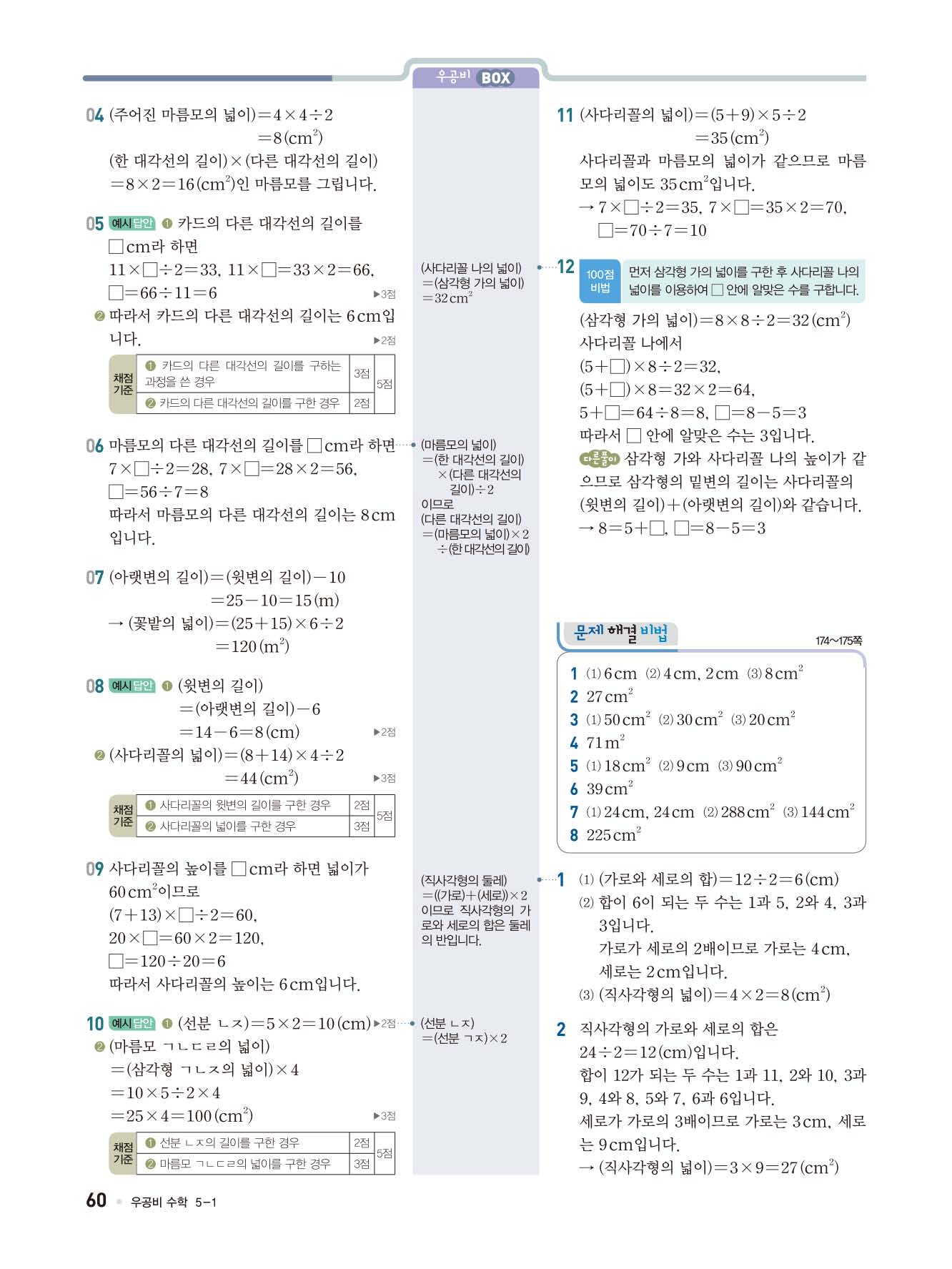 우공비 초등수학 5-1 답지 해설지 사진답지 빠른답지 모바일최적화