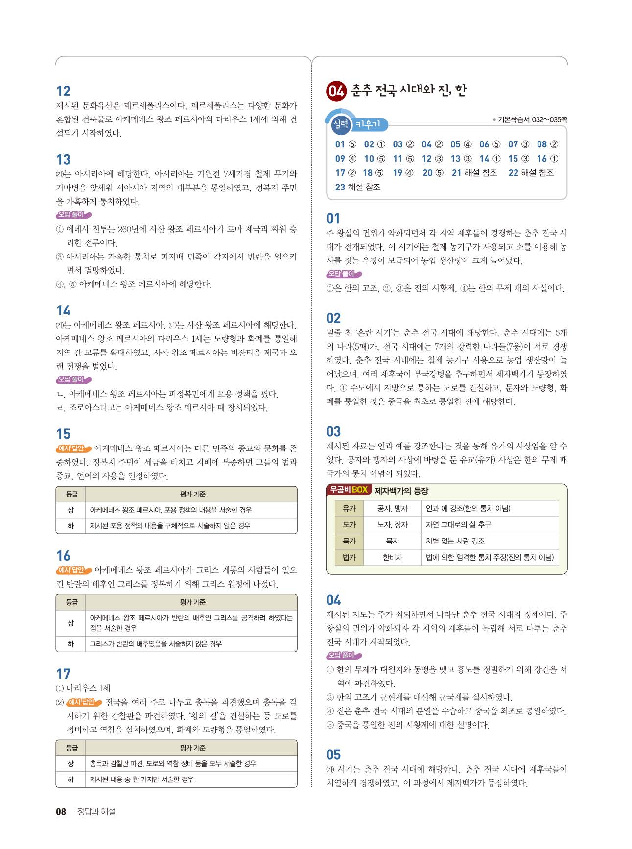 우공비 중등역사1 답지 해설지 사진답지 빠른답지 모바일최적화