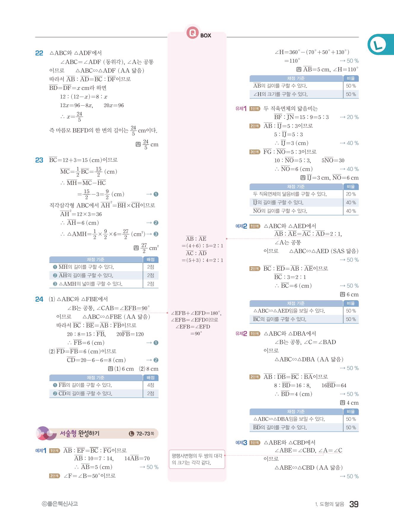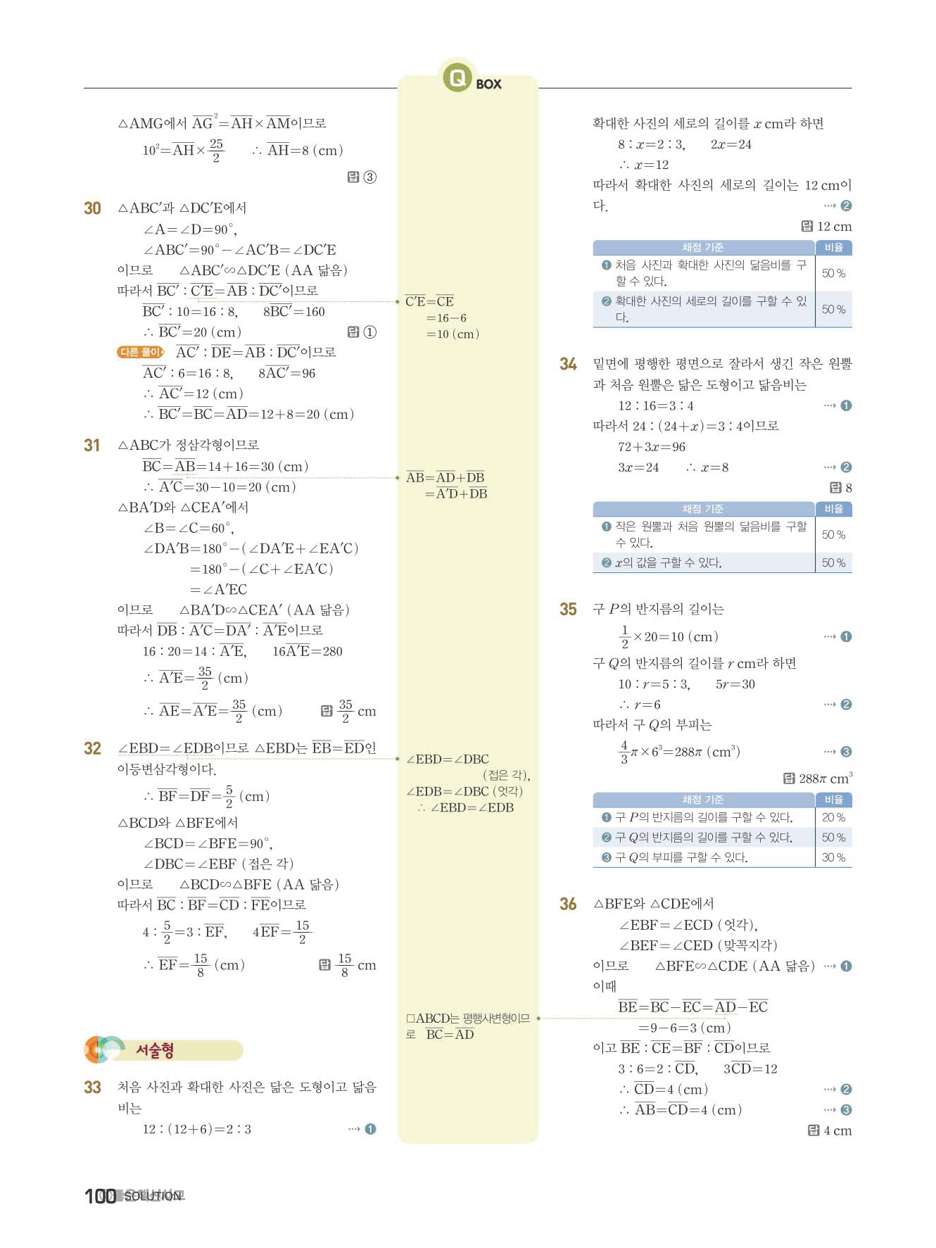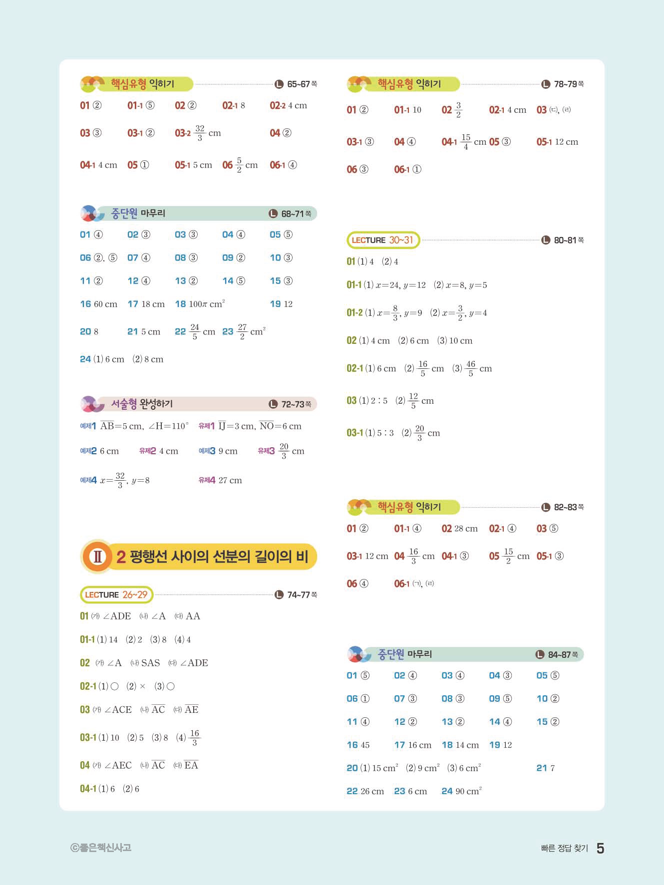 비상 우공비큐 표준편 중등수학2하 답지 모바일최적화 사진답지 해설지