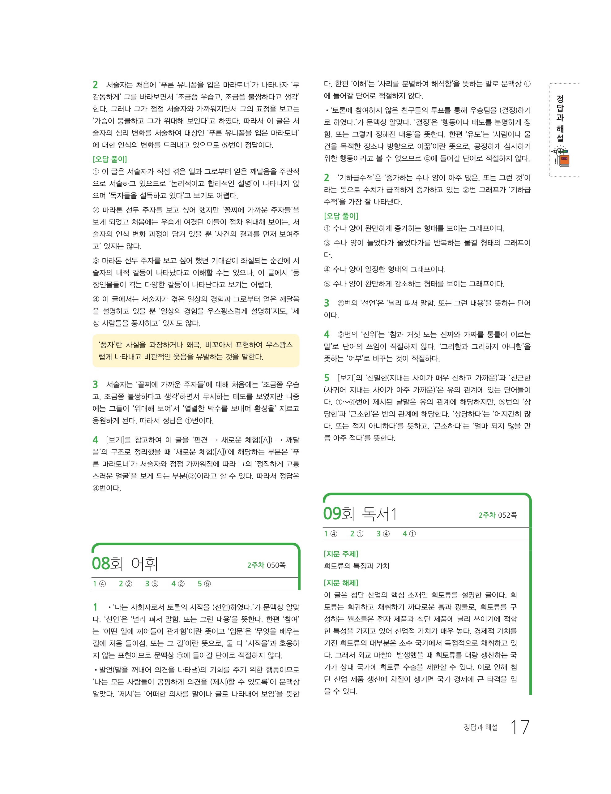 아래는 국어 실력 향상과 문제 풀이에 도움이 되는 다른 교재의 답지와 해설을 제공하는 포스팅입니다.