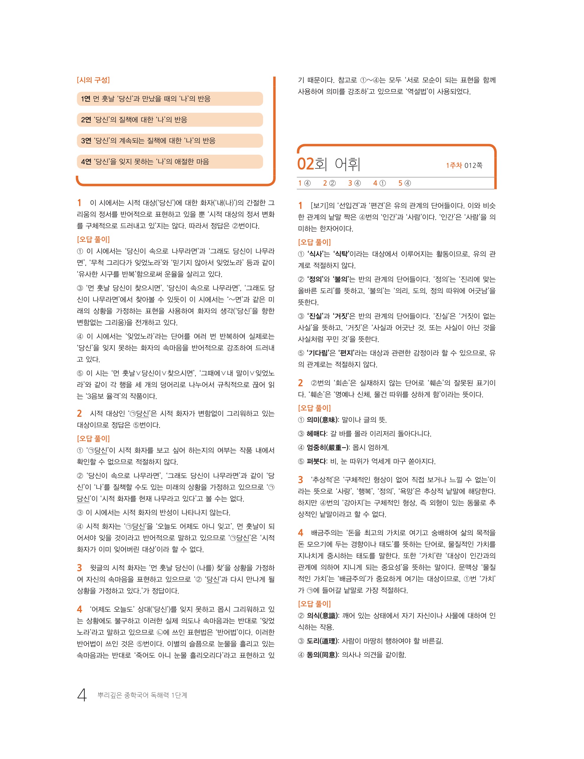 📘 2025 최신판 뿌리깊은 중학국어 독해력 2단계 답지 및 해설