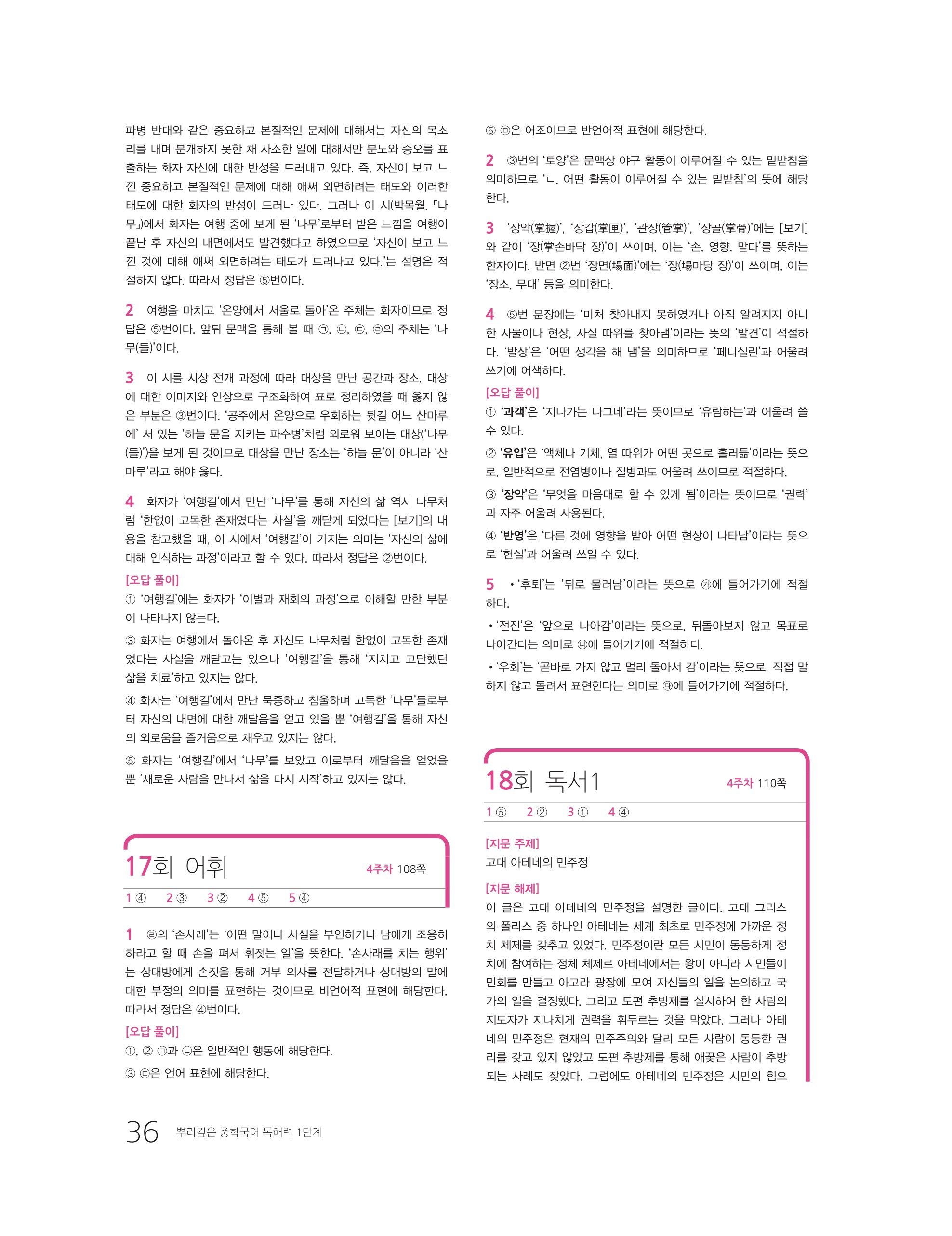 📖 2025 최신판 뿌리깊은 중학국어 독해력 1단계 답지 해설 및 빠른답지 다운로드