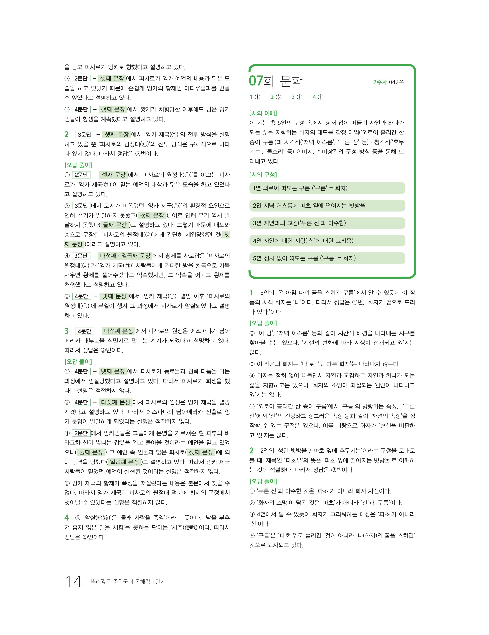 2025 최신판 뿌리깊은 중학국어 독해력 1단계를 효과적으로 학습하고, 국어 독해 실력 향상을 목표로 하는 학생들을 위해 2025 최신판 뿌리깊은 중학국어 독해력 1단계의 답지와 해설을 제공합니다.