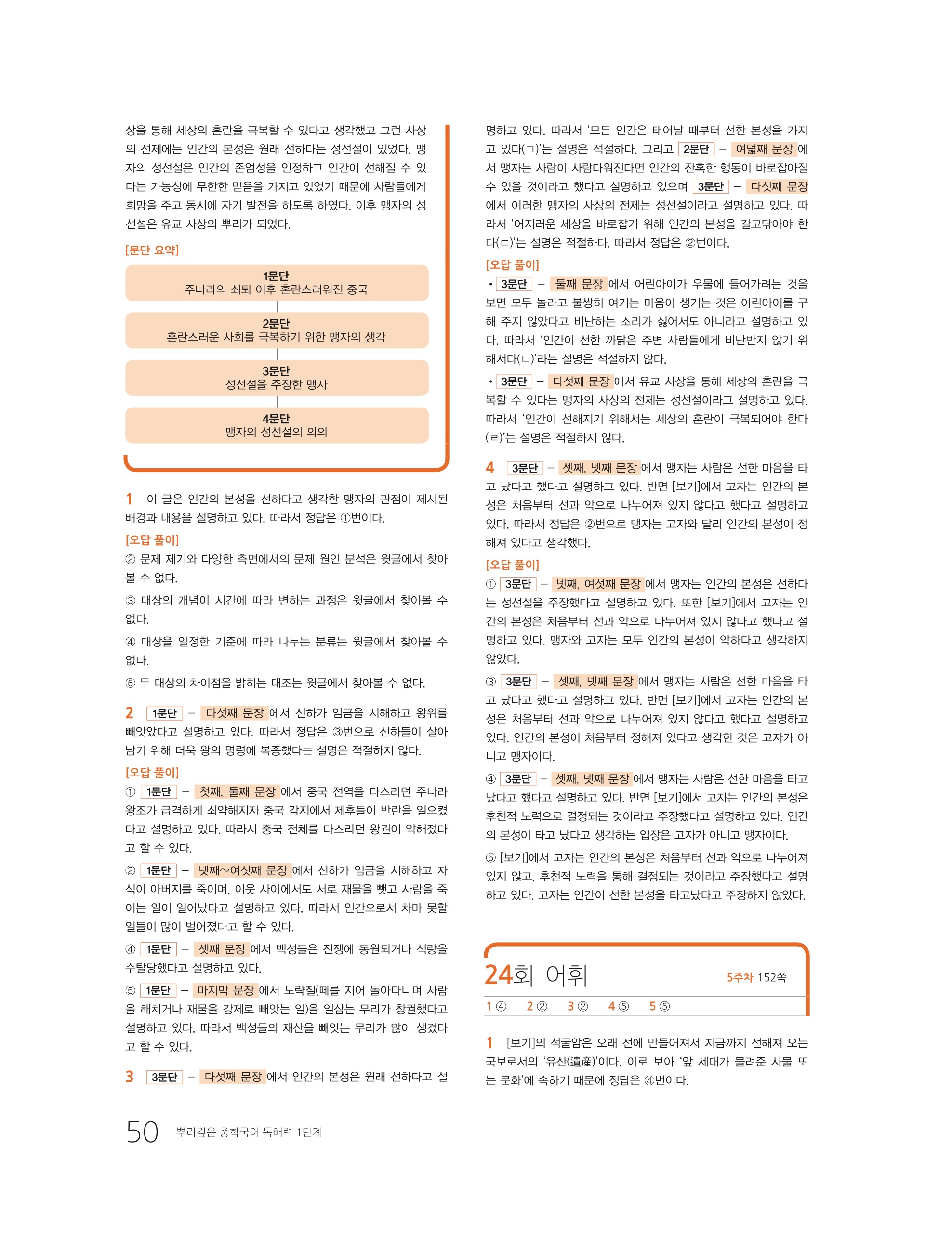 2025 최신판 뿌리깊은 중학국어 독해력 1단계의 답지와 해설을 통해 효과적으로 학습하고, 국어 독해 실력을 향상시켜 좋은 성과를 거두시기 바랍니다.