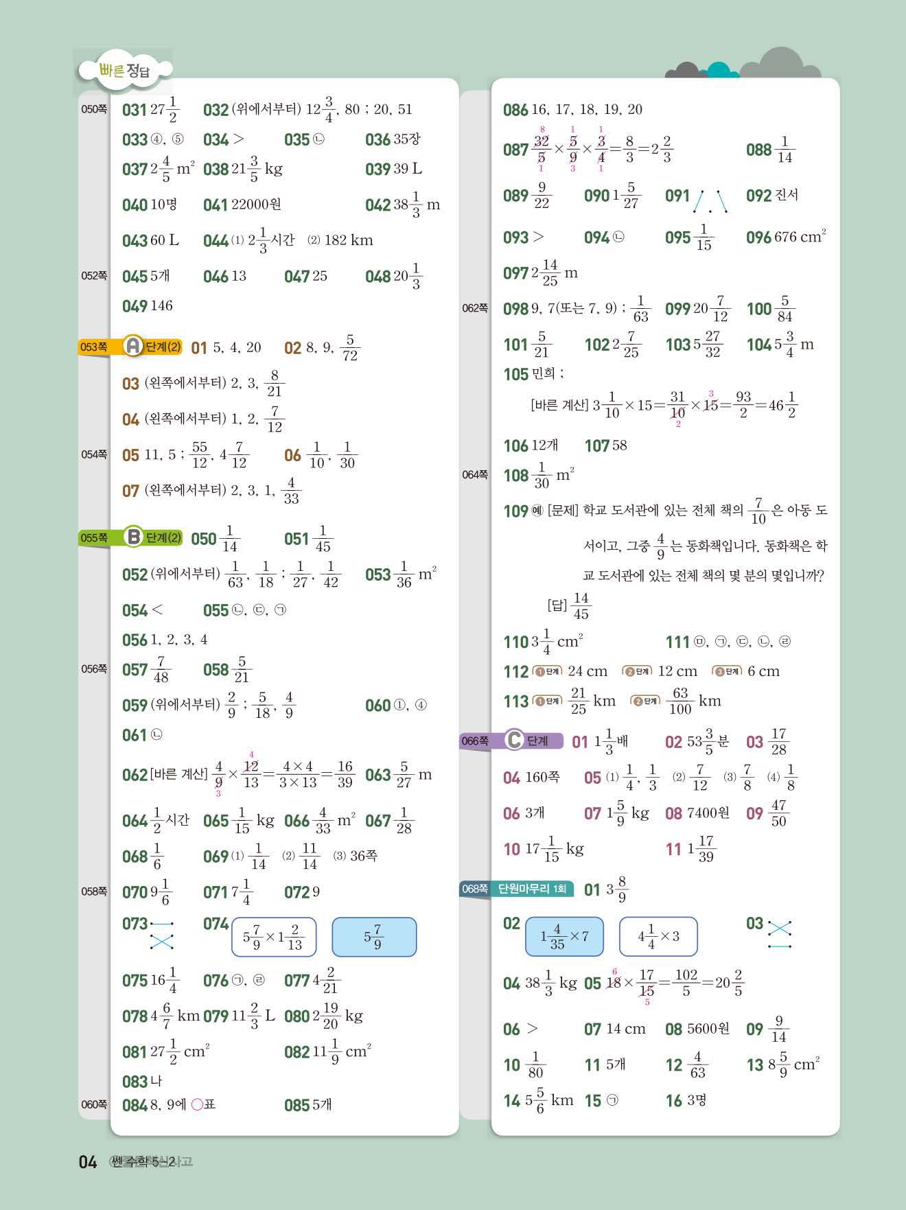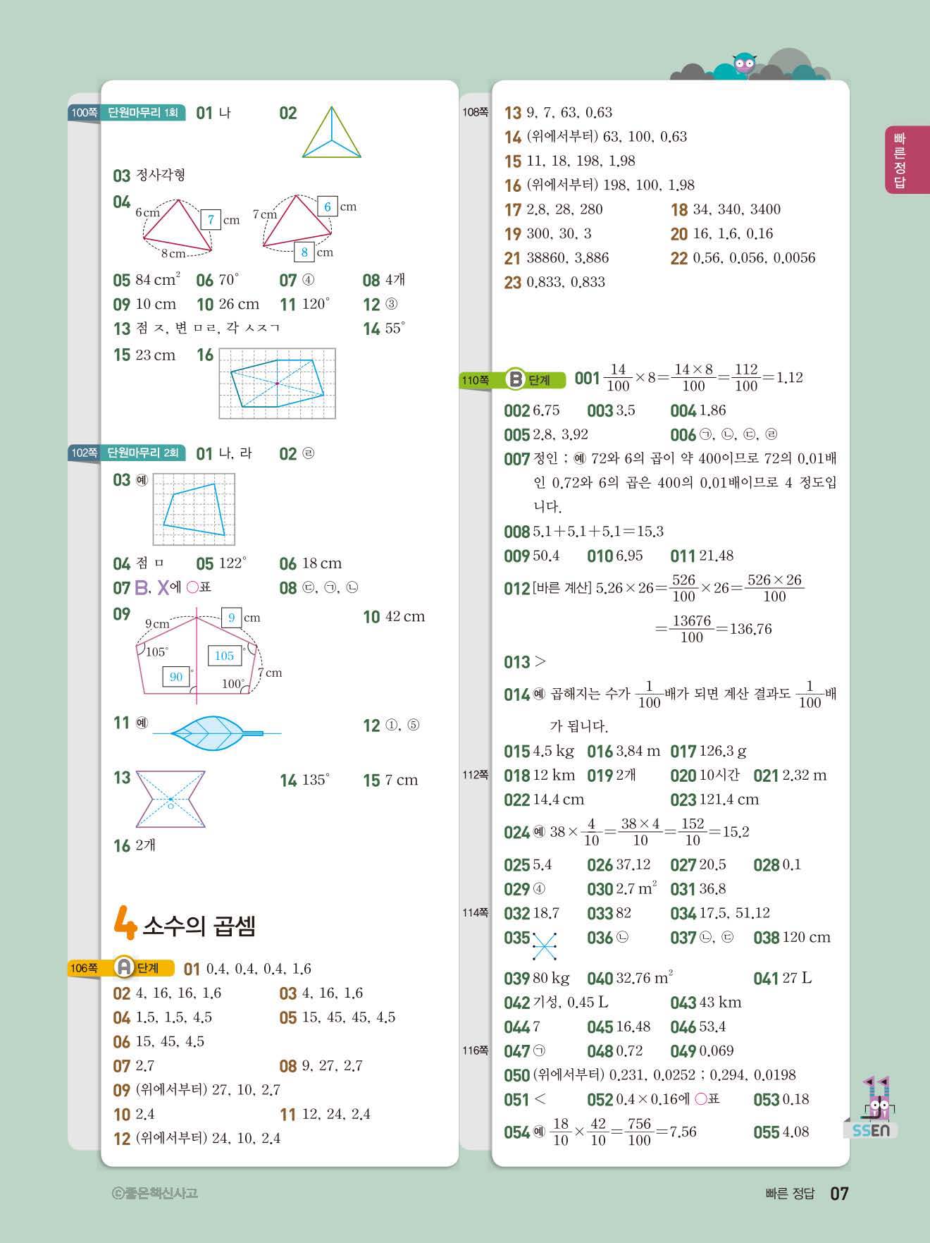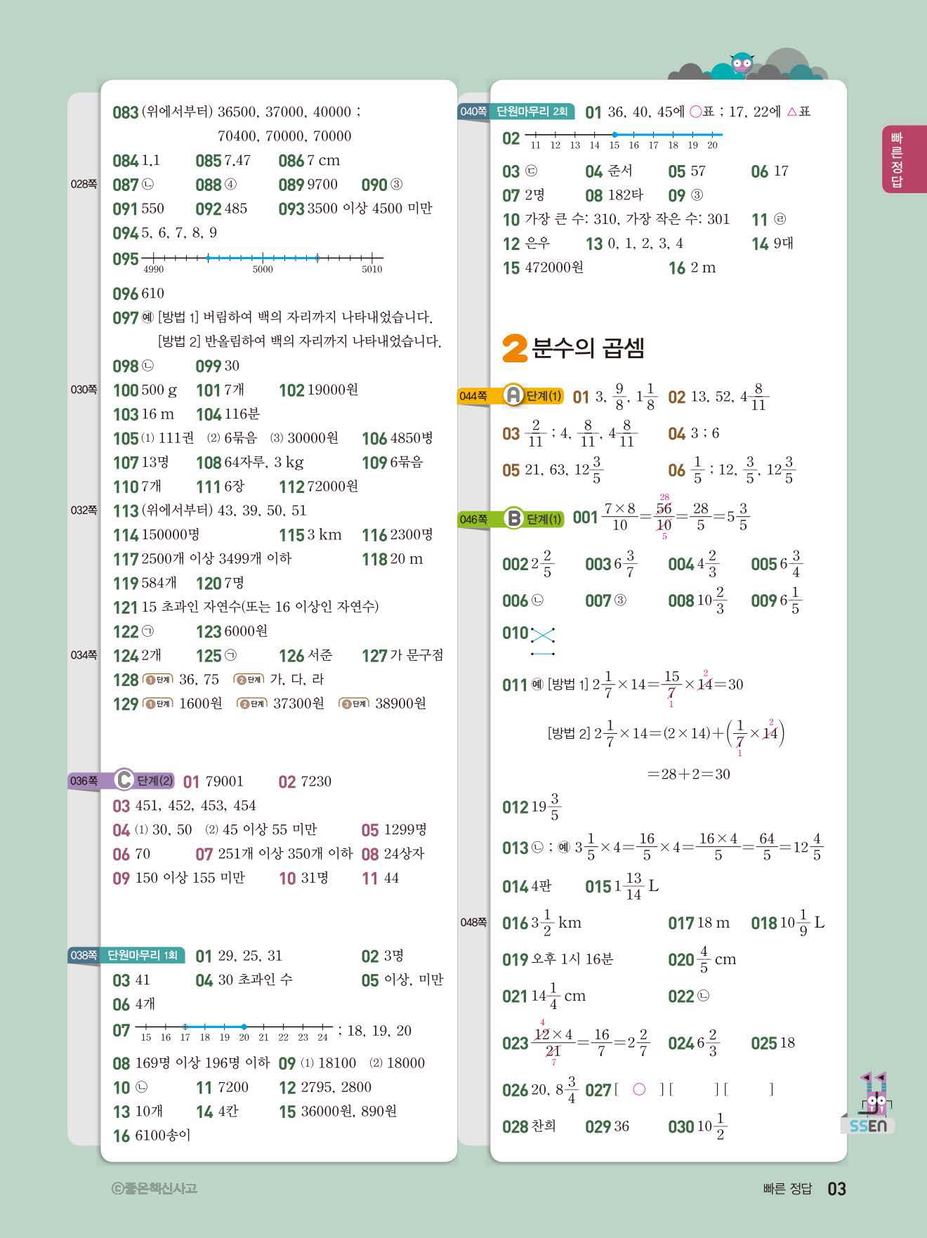 초등쎈초등 5-2 답지 해설지 사진답지 빠른답지 모바일최적화