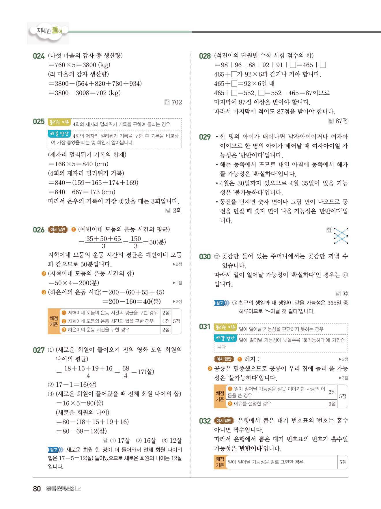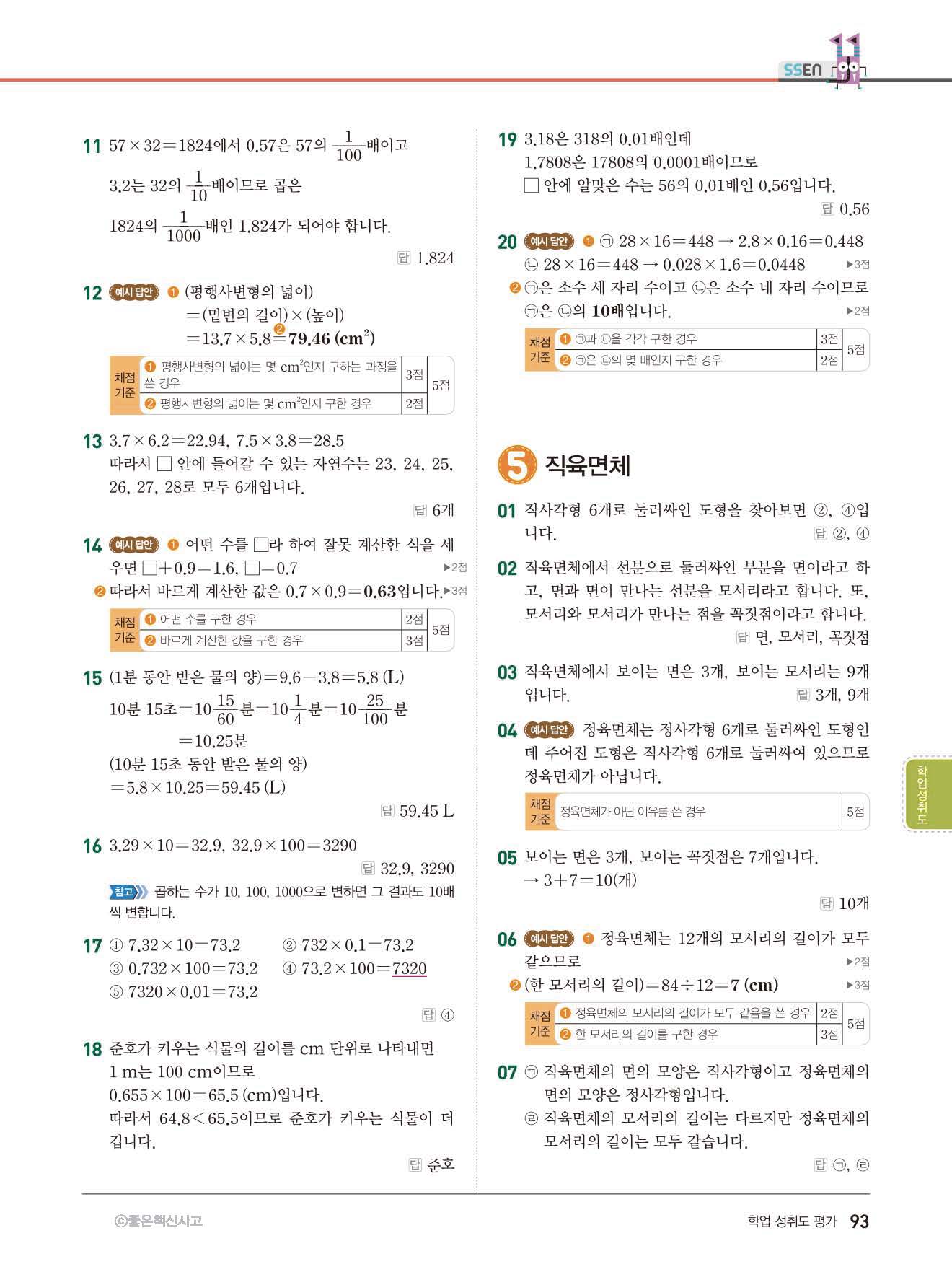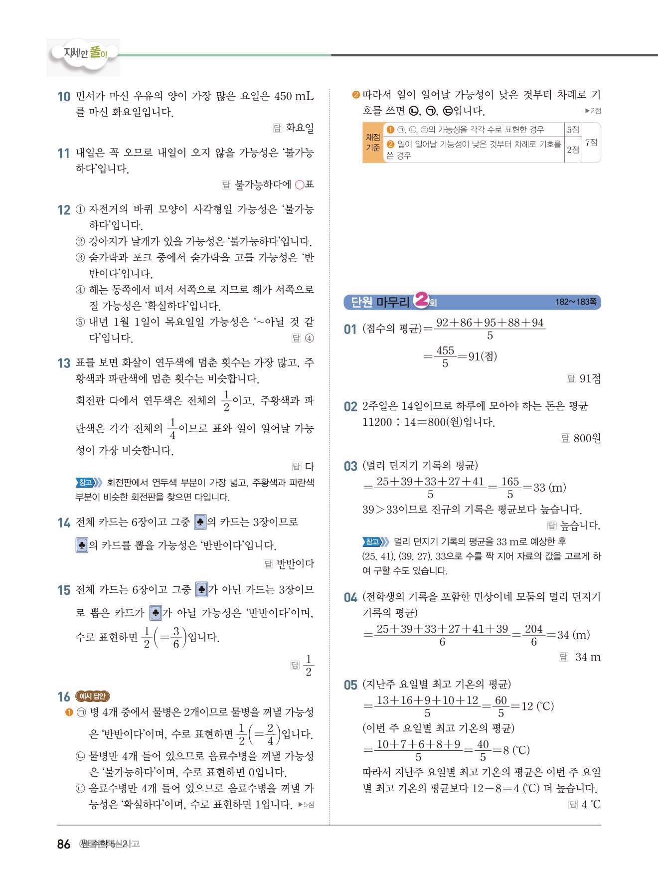 초등쎈초등 5-2 답지 해설지 사진답지 빠른답지 모바일최적화