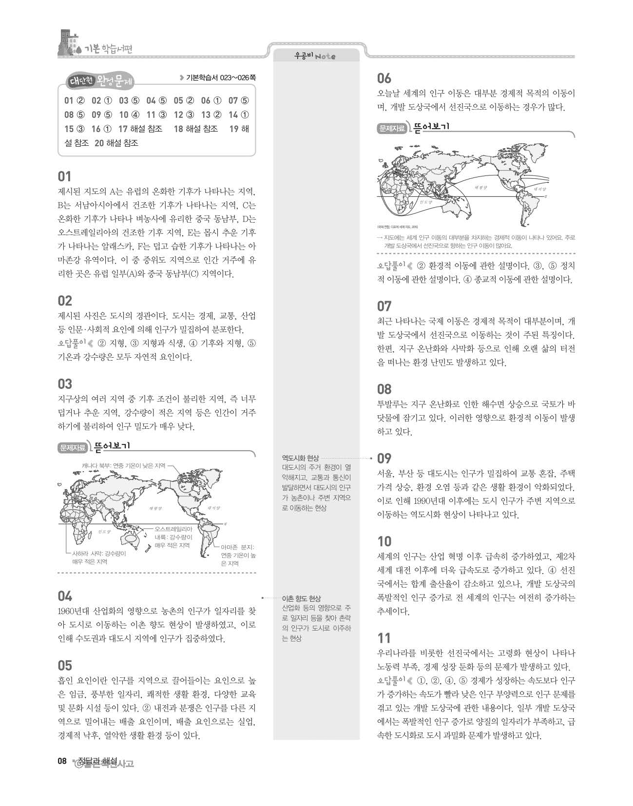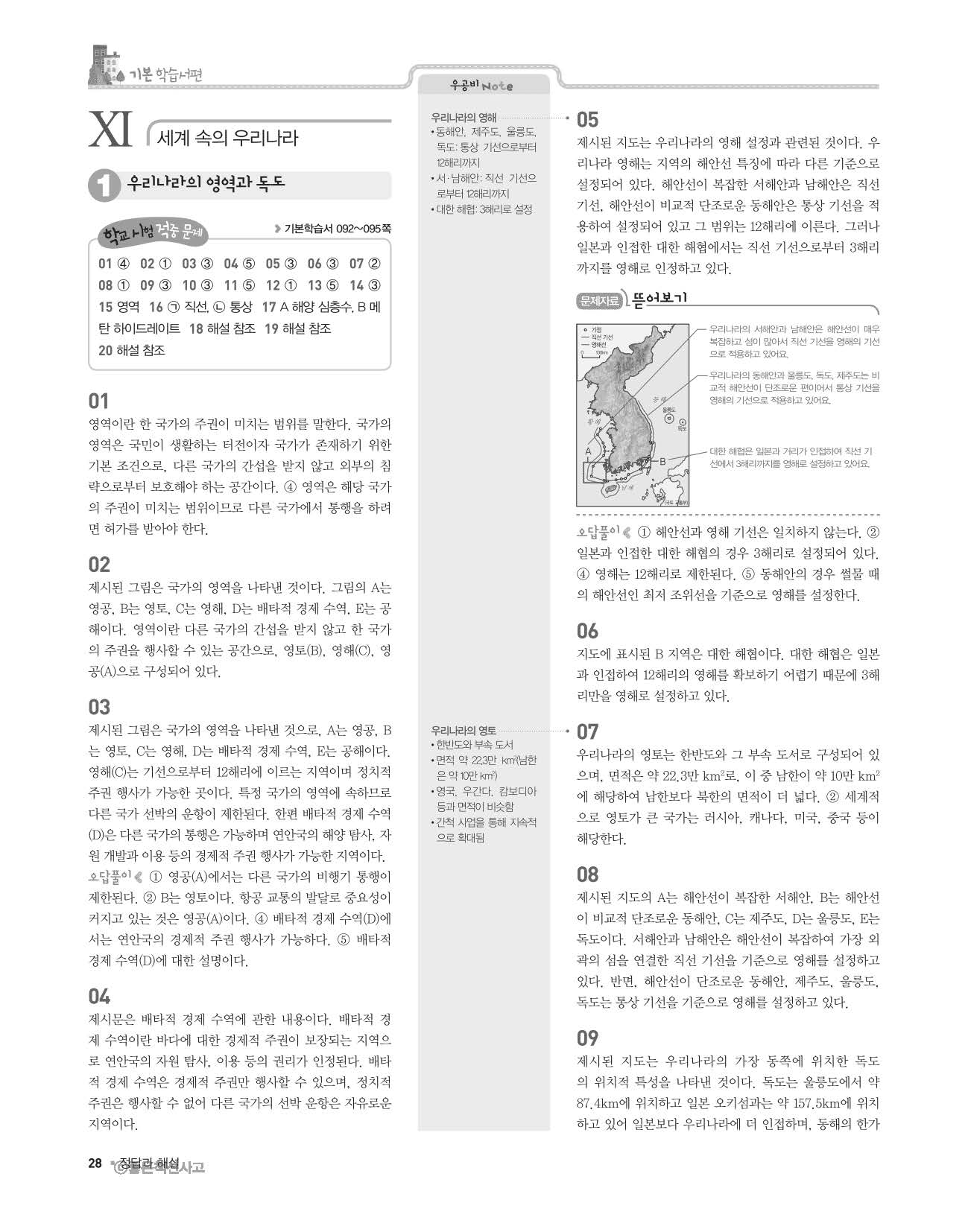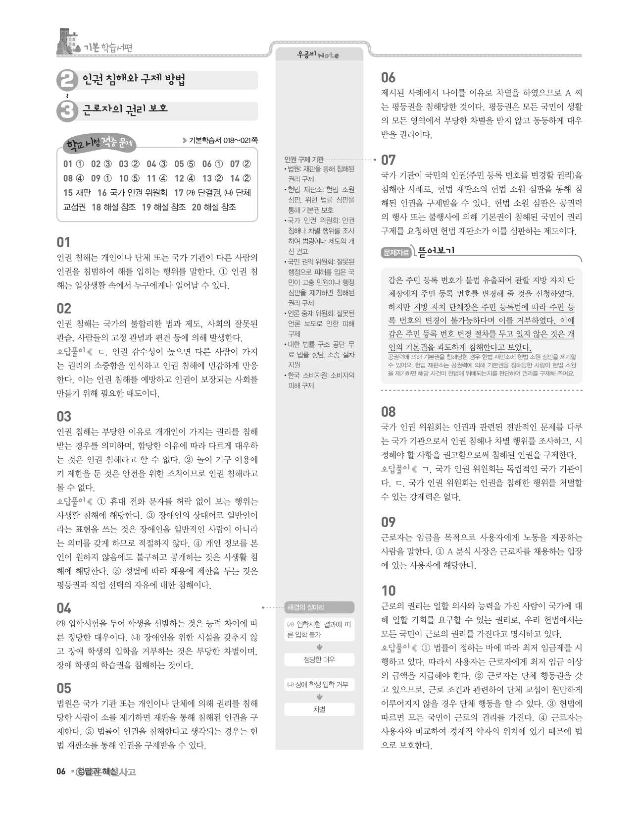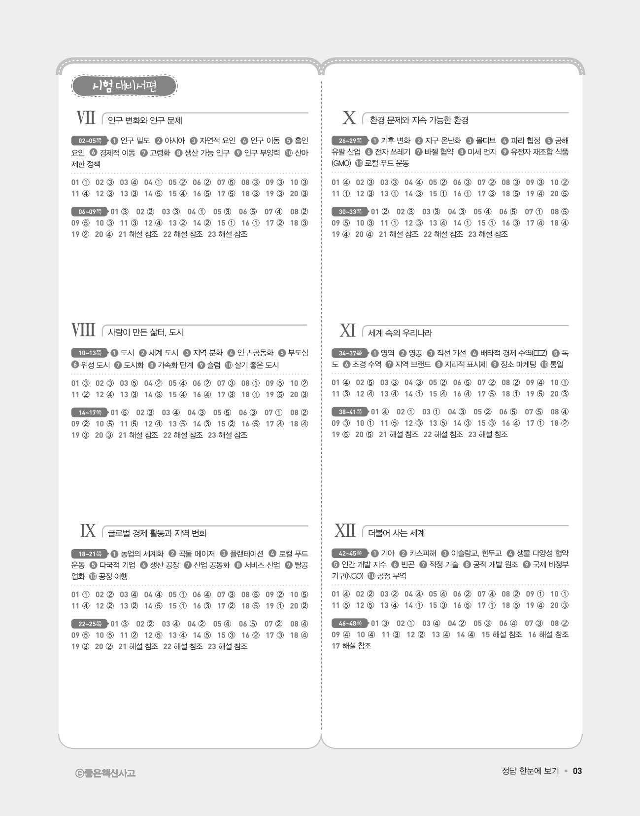 우공비 중등사회2 답지 해설지 사진답지 빠른답지 모바일최적화