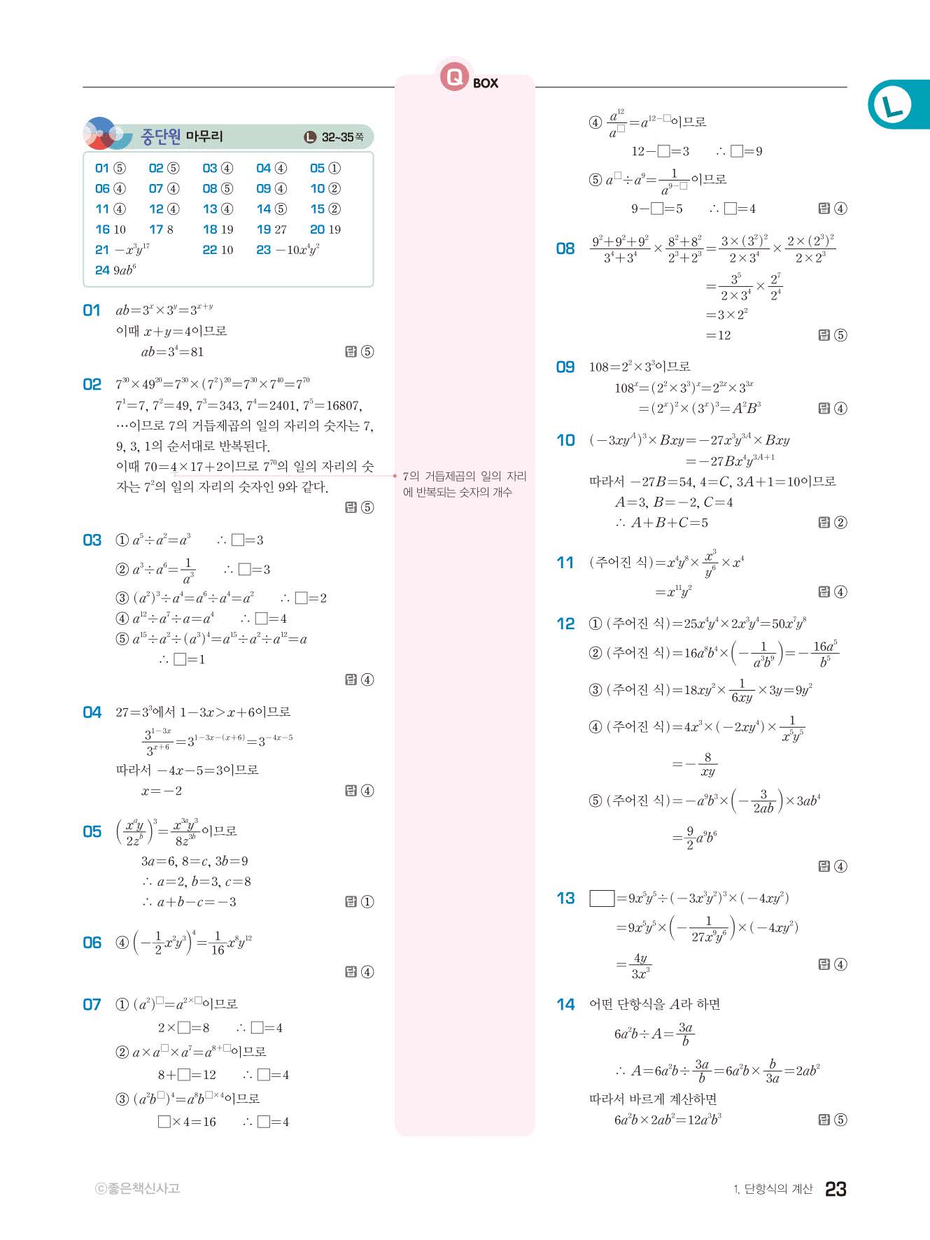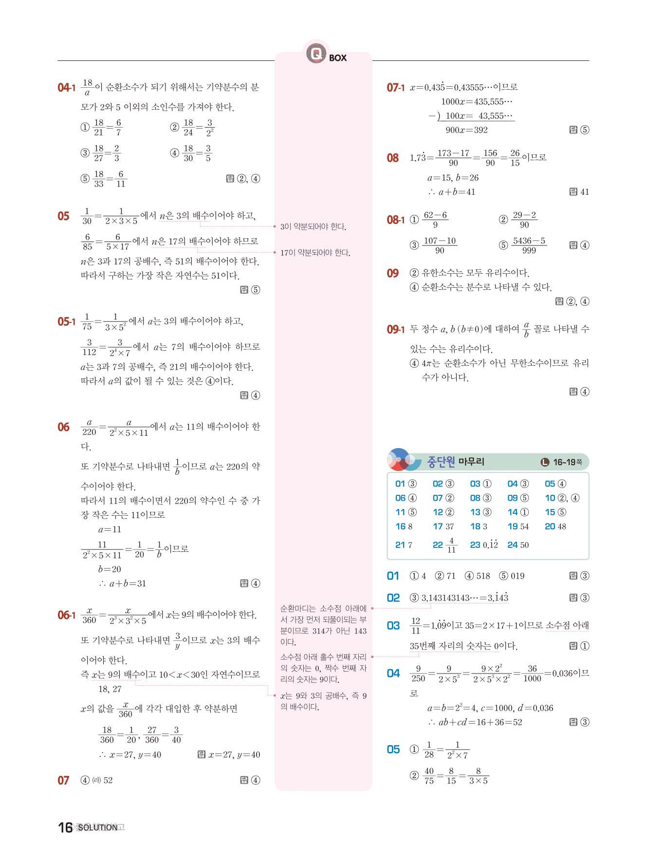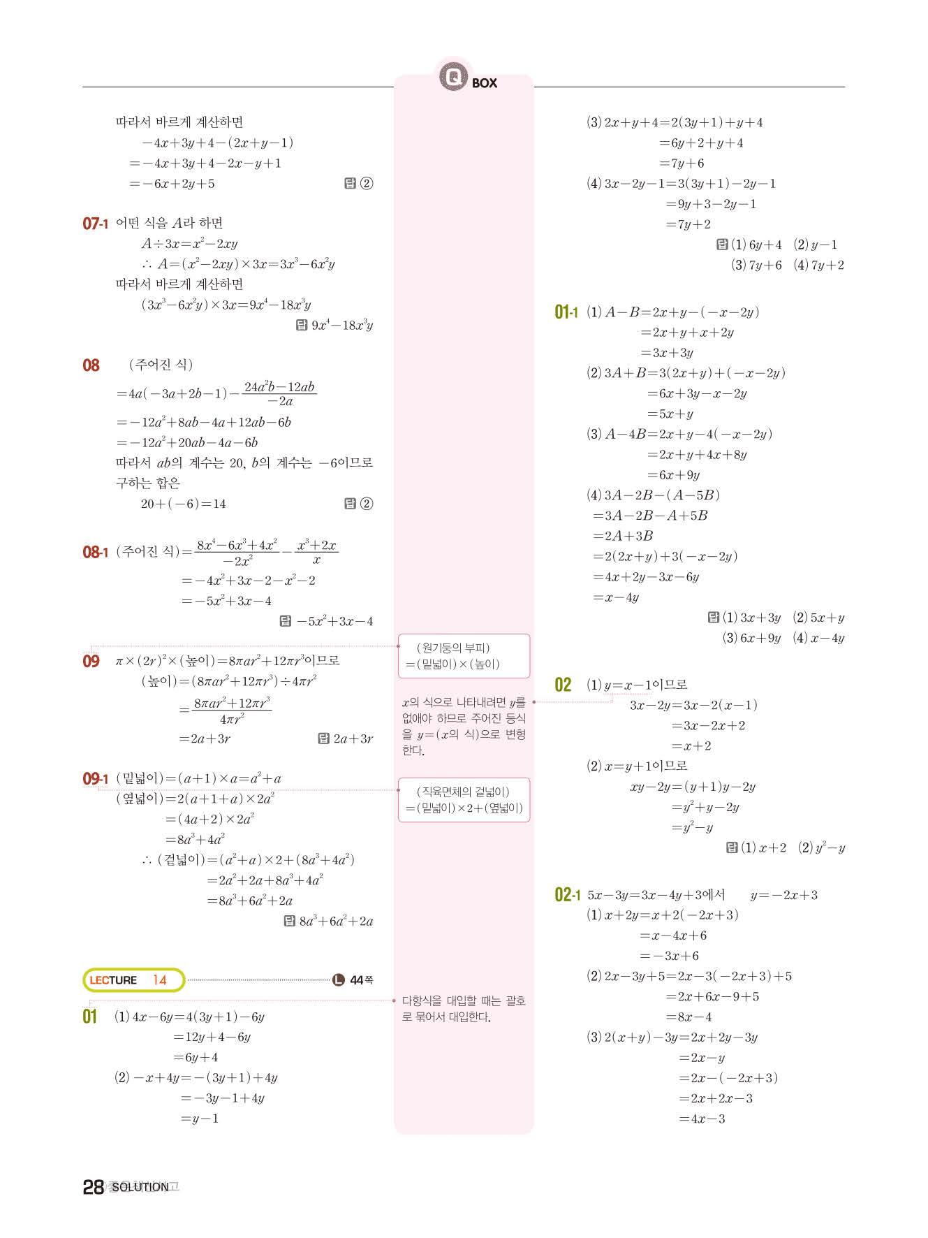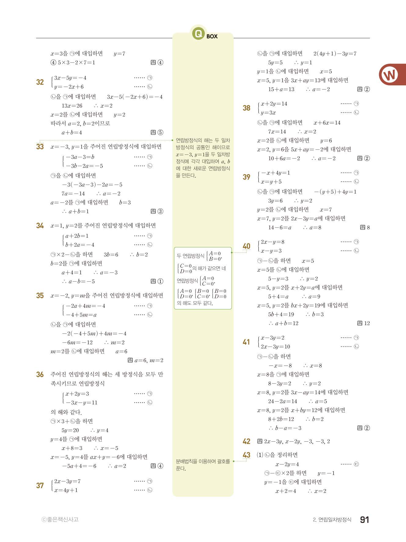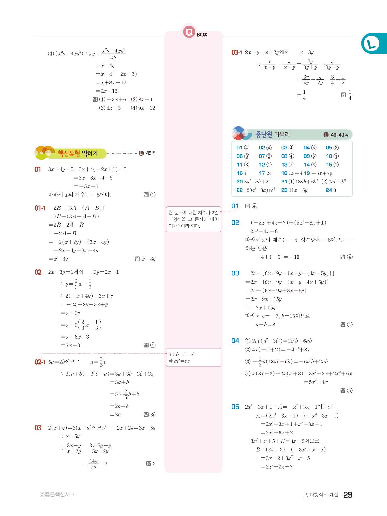 | 천재교육 이준열 중2 수학교과서 답지 | |
