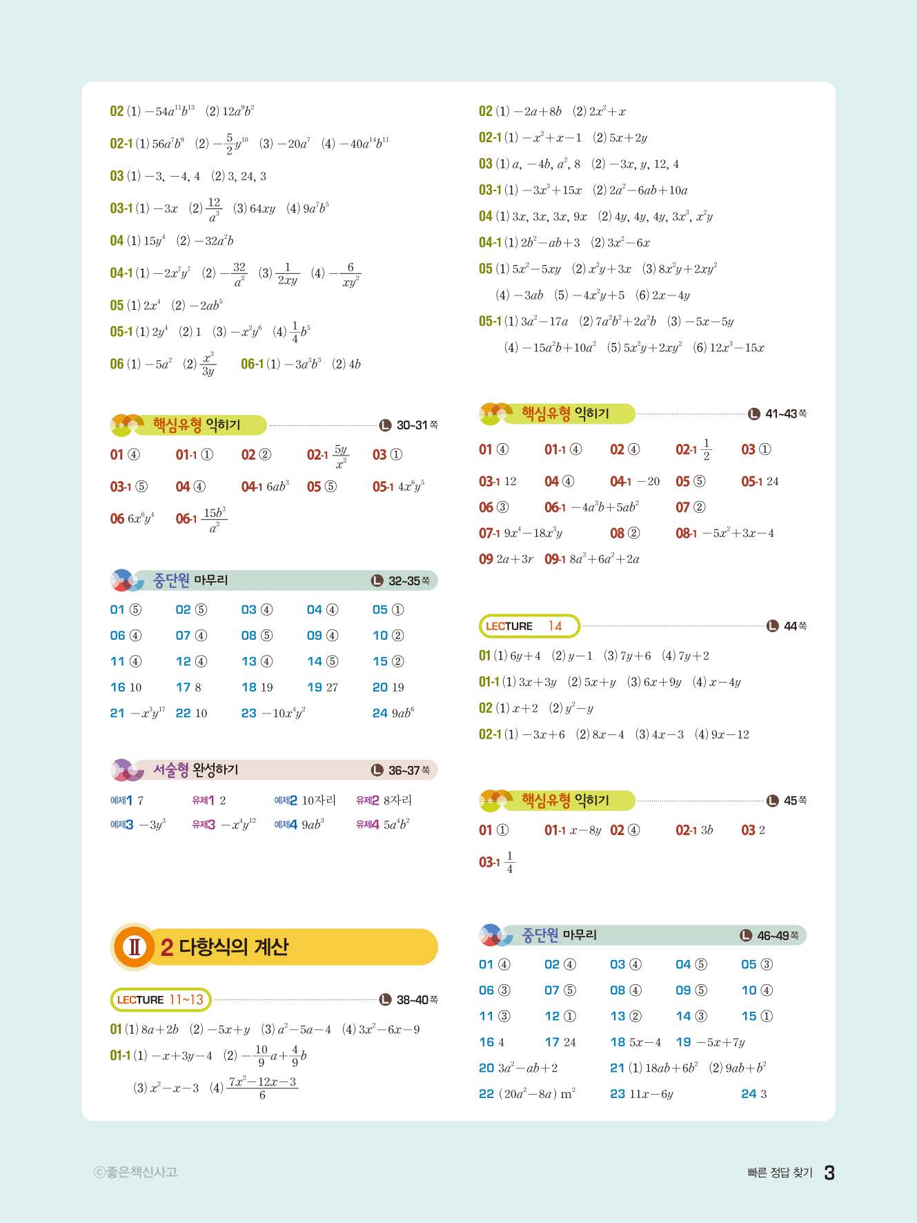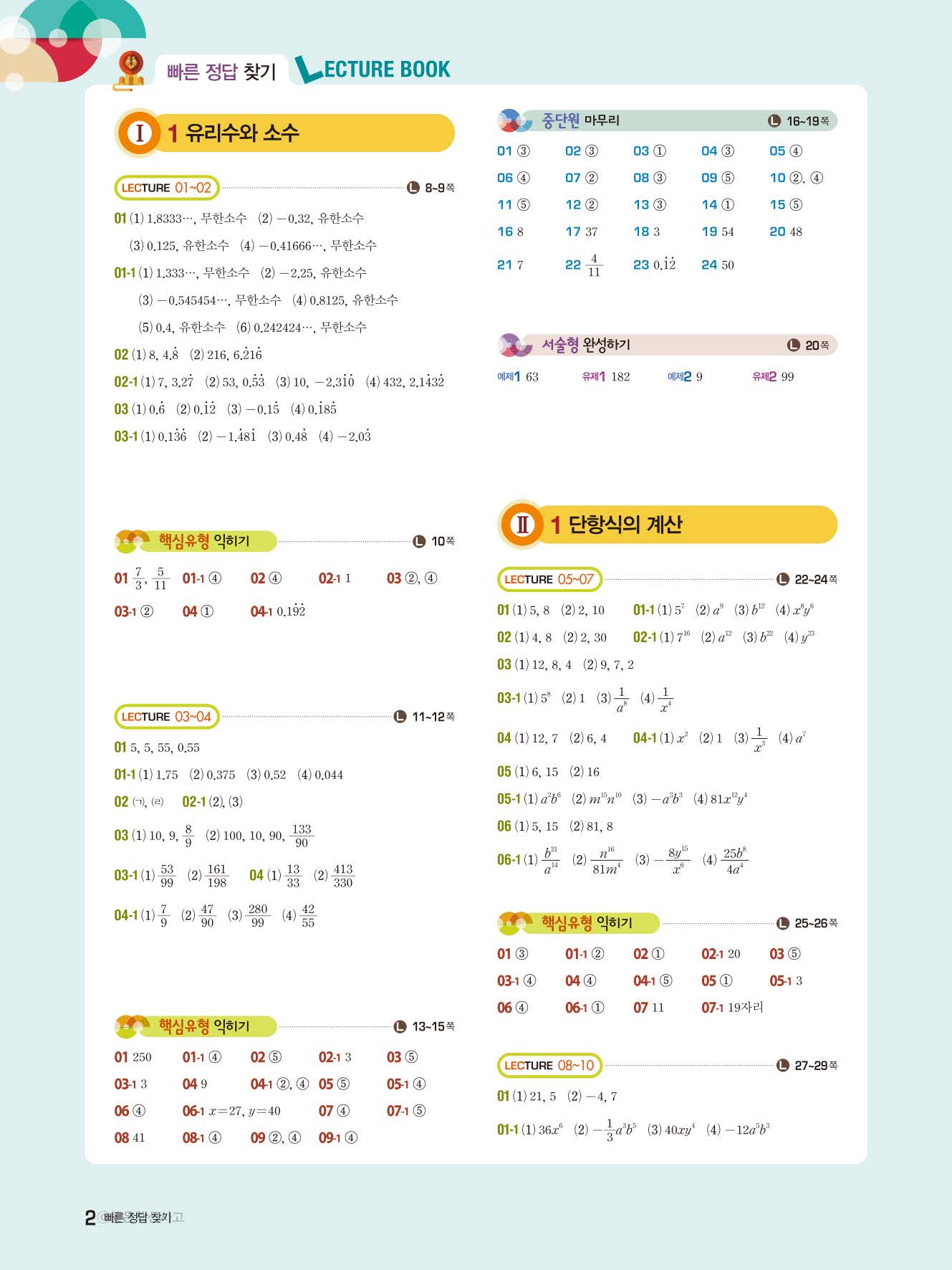 | 개념쎈 중2-1 답지 | https://mathuncle.tistory.com/191 |