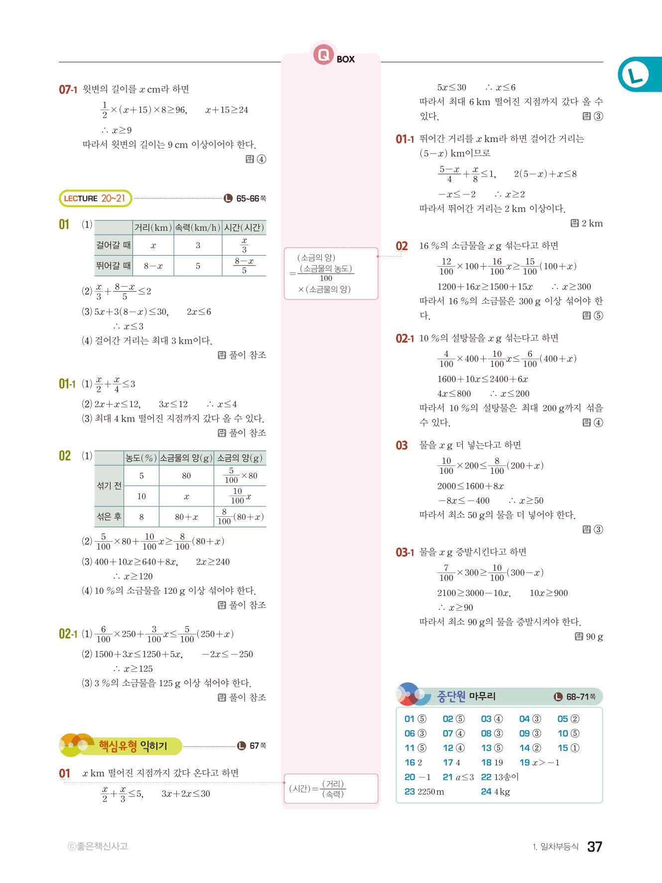 | 일품중등수학 2-1 답지 | https://mathuncle.tistory.com/336 |