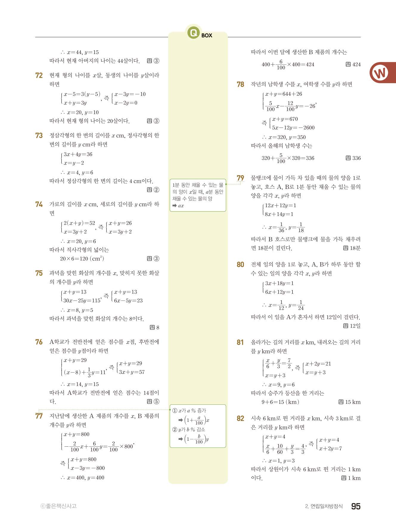 | 천재교육 류희찬 중2 수학교과서 답지 | |