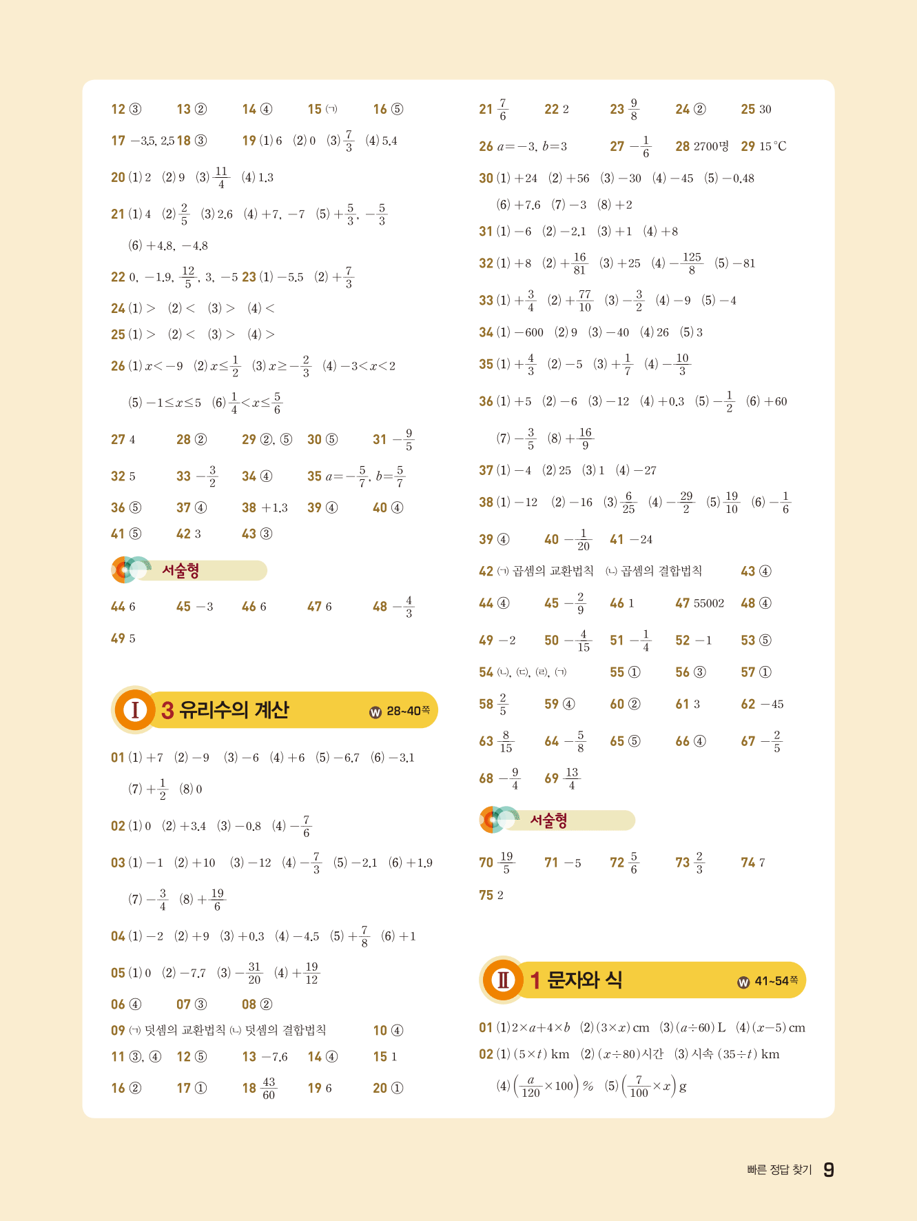 우공비큐 표준편 중1상 1-1 답지 해설지 사진답지 빠른답지 모바일최적화