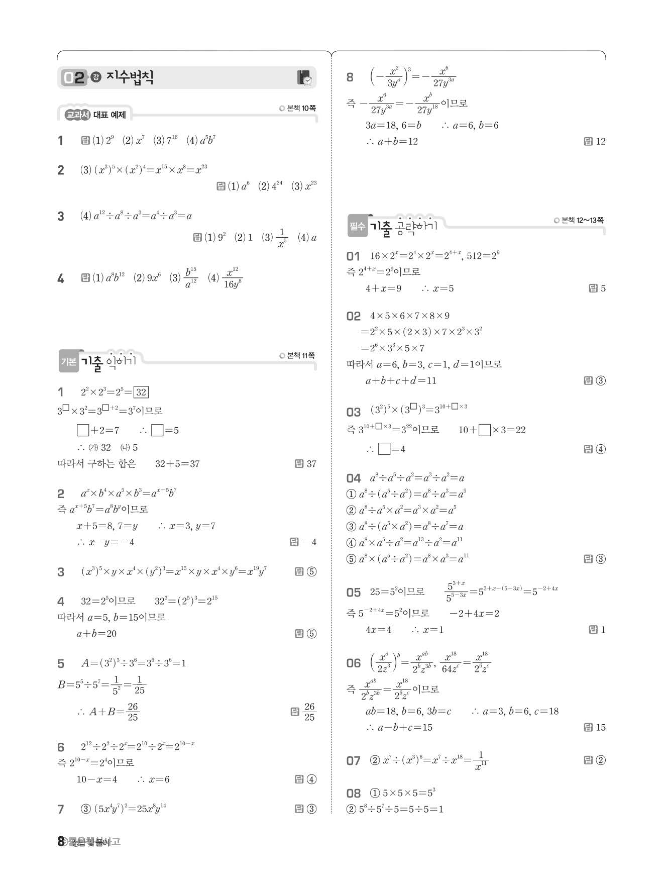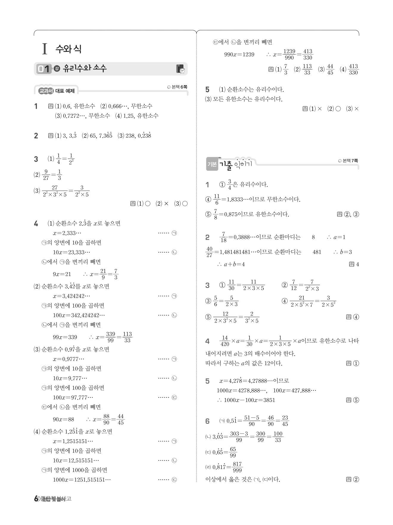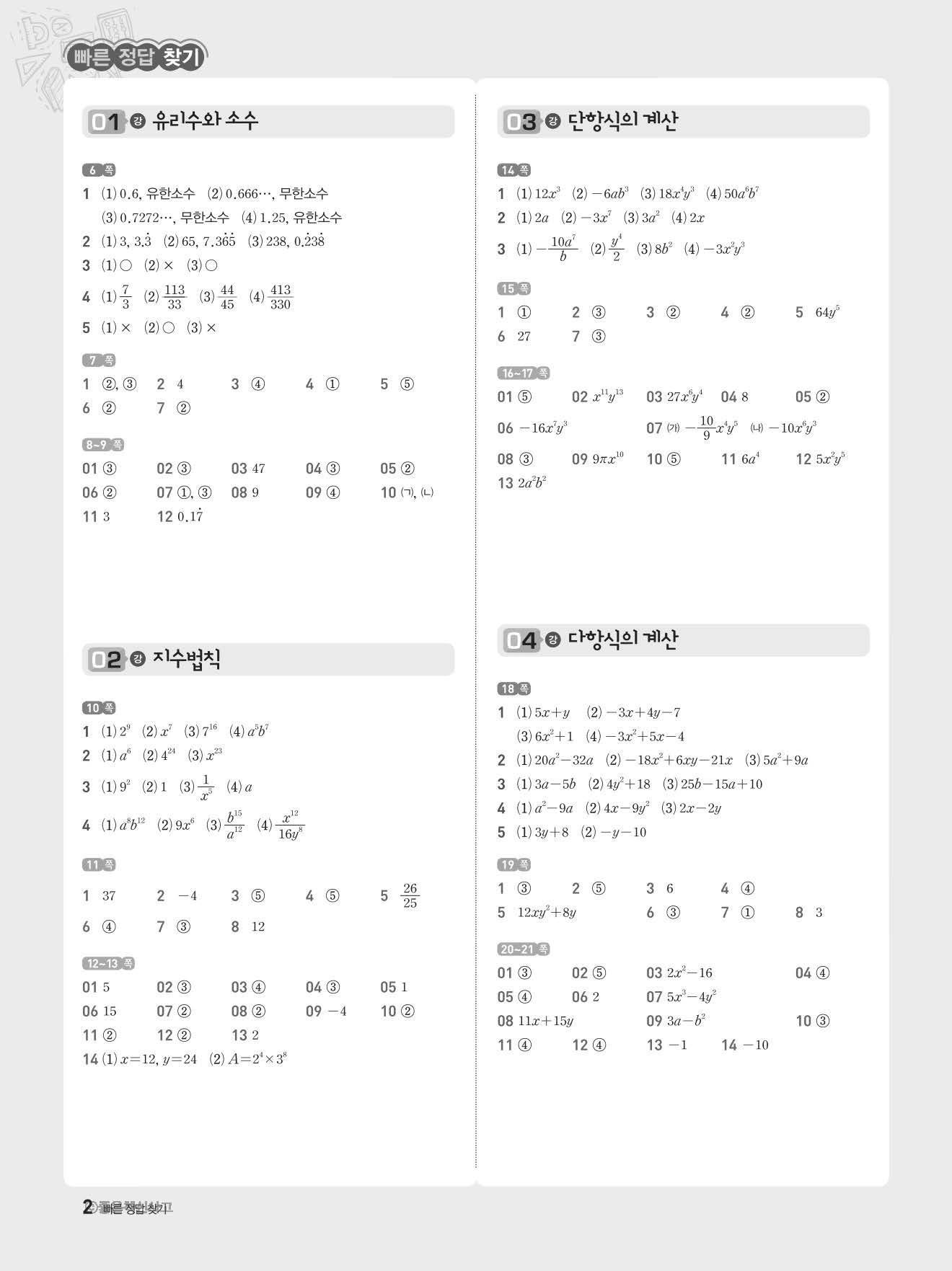 | 개념쎈 중2-1 답지 | https://mathuncle.tistory.com/191 |