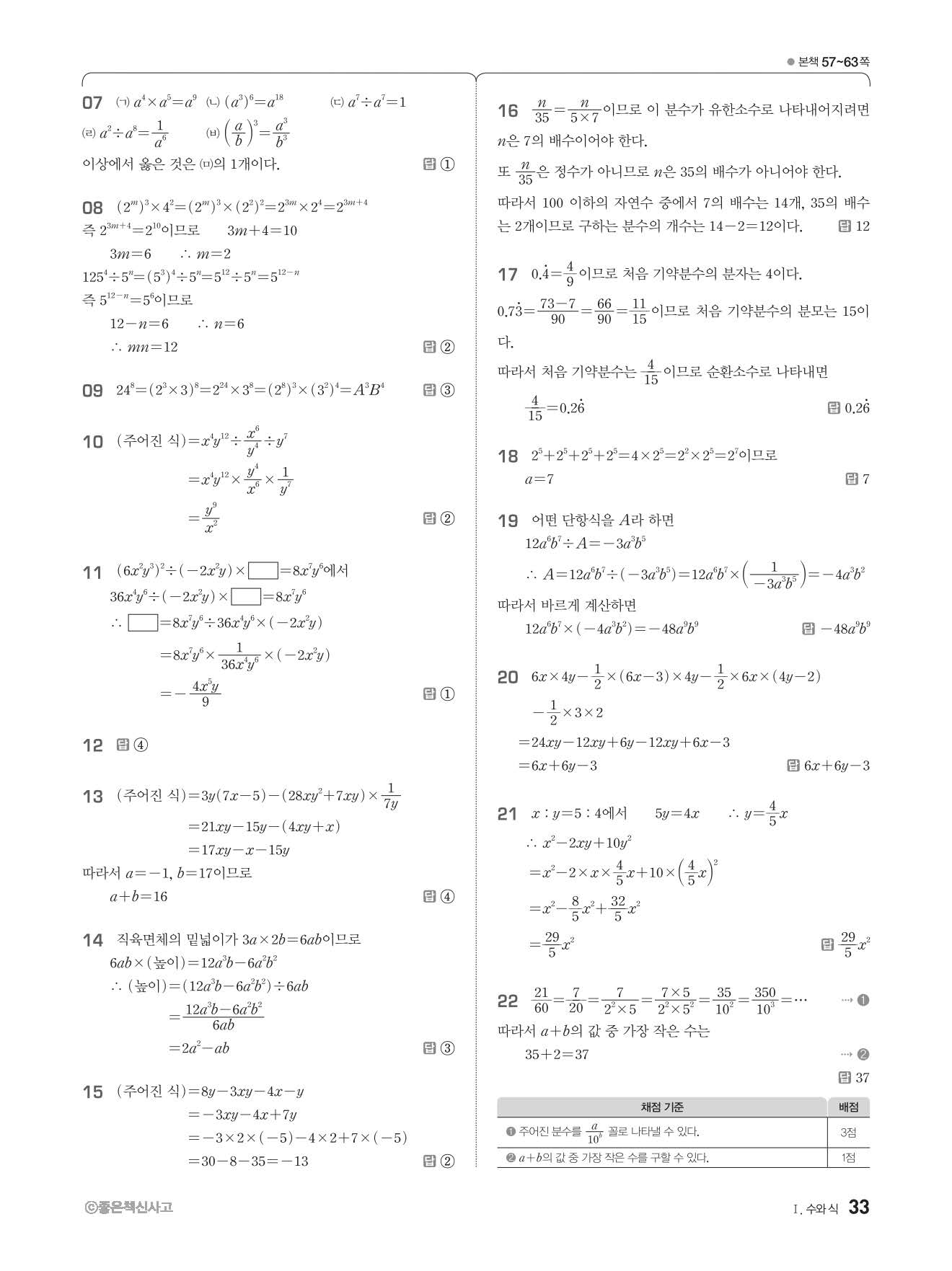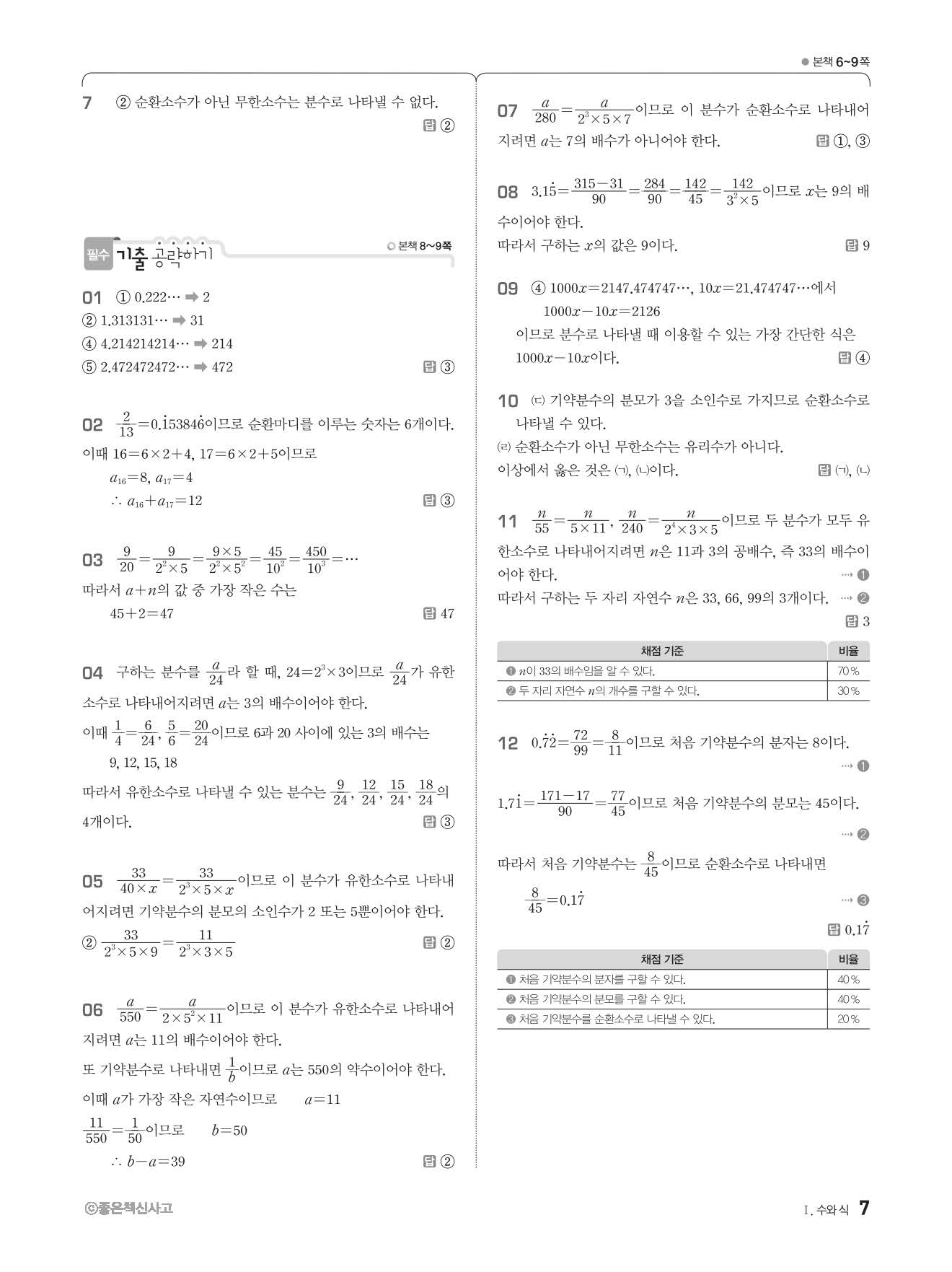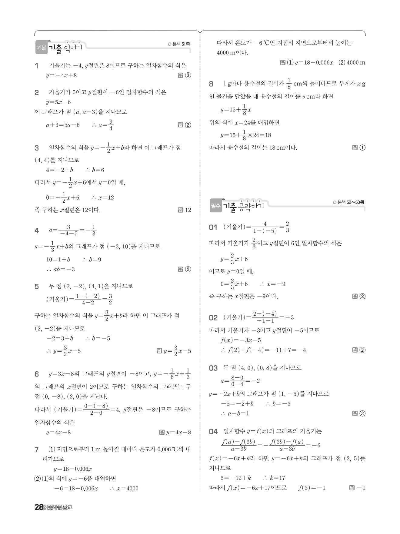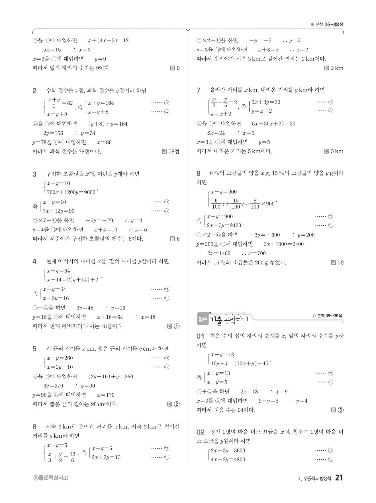 우공비큐 중등수학 기출특강 중2상 2-1 답지 해설지 사진답지 빠른답지 모바일최적화