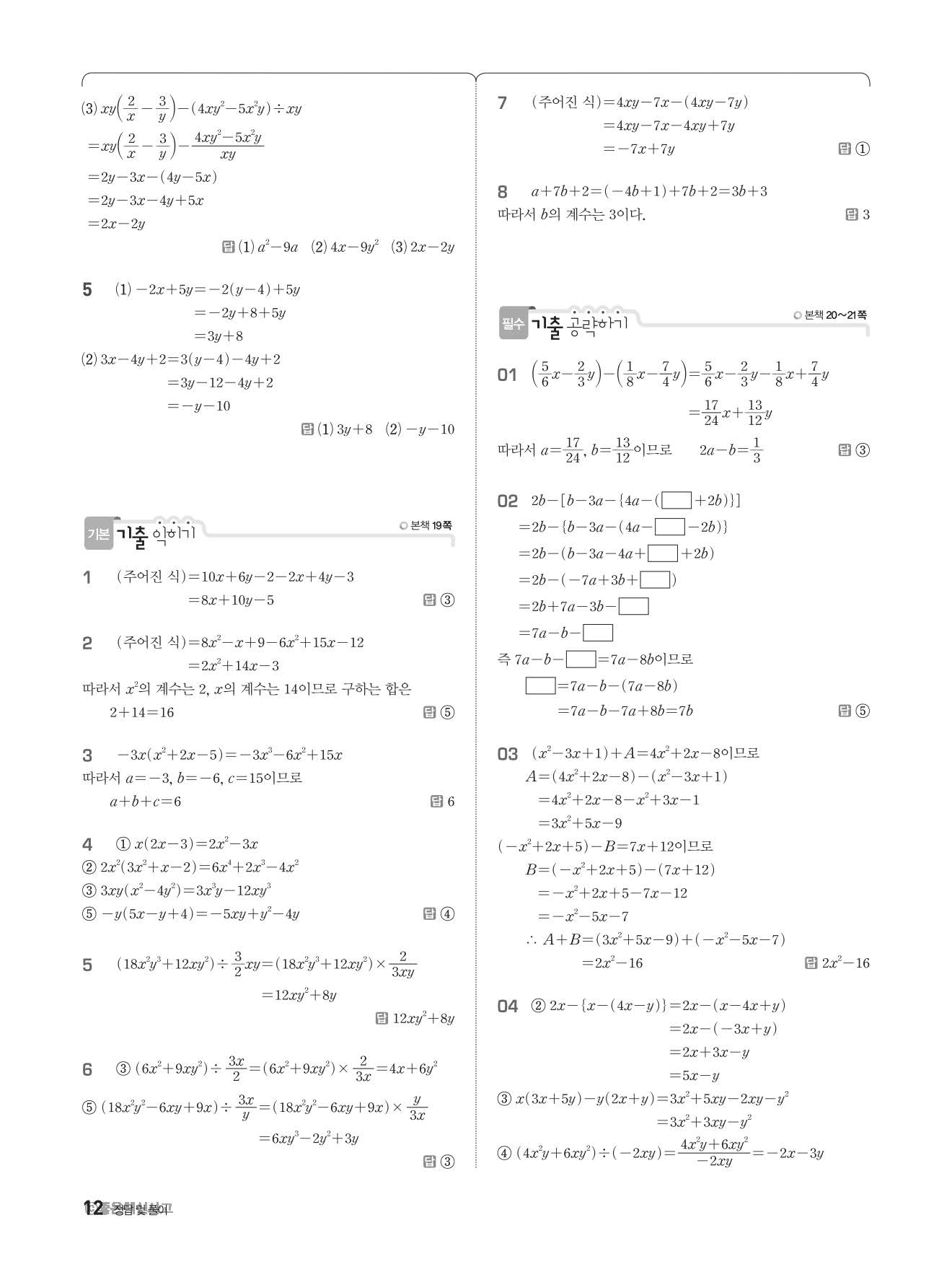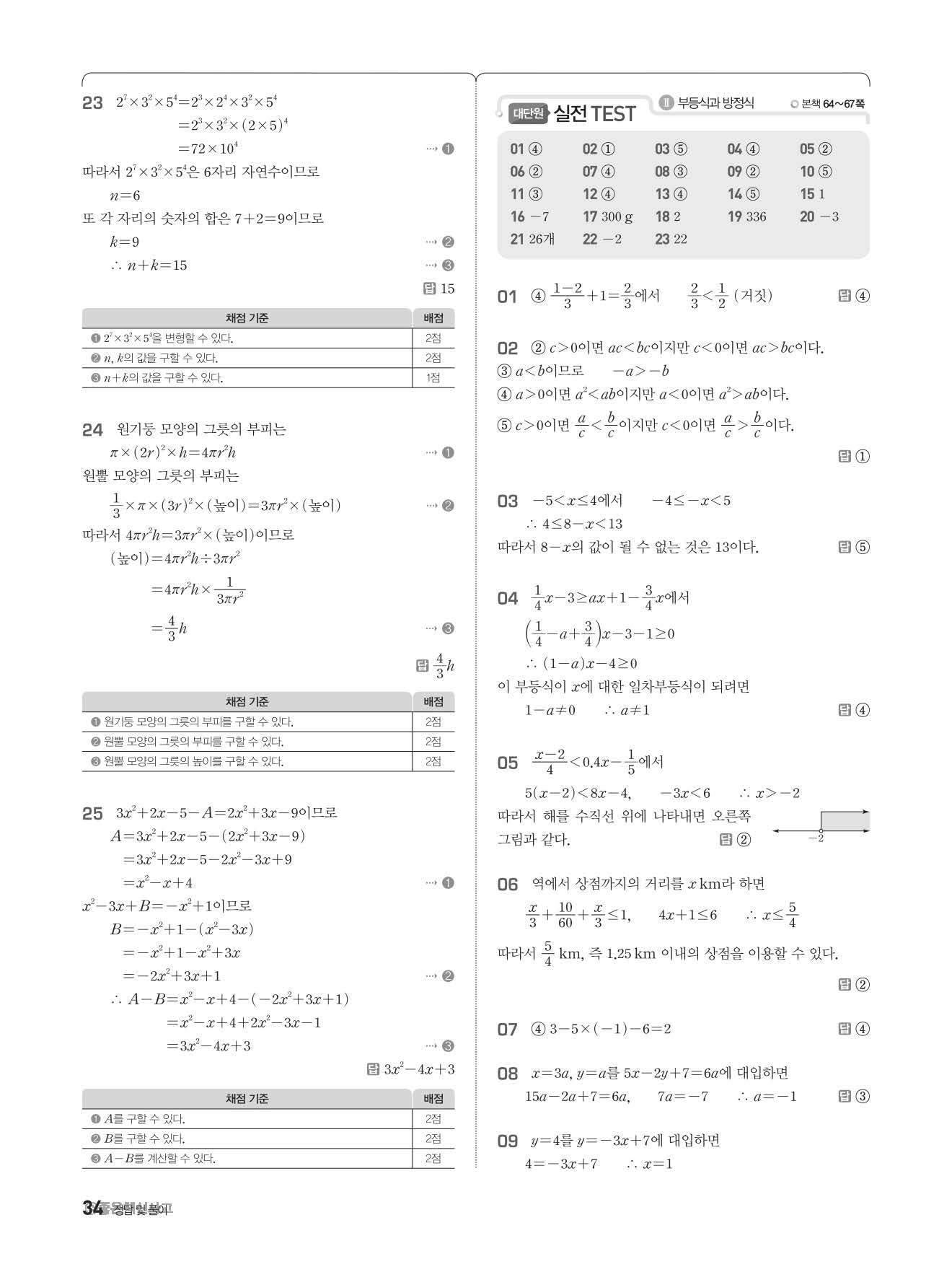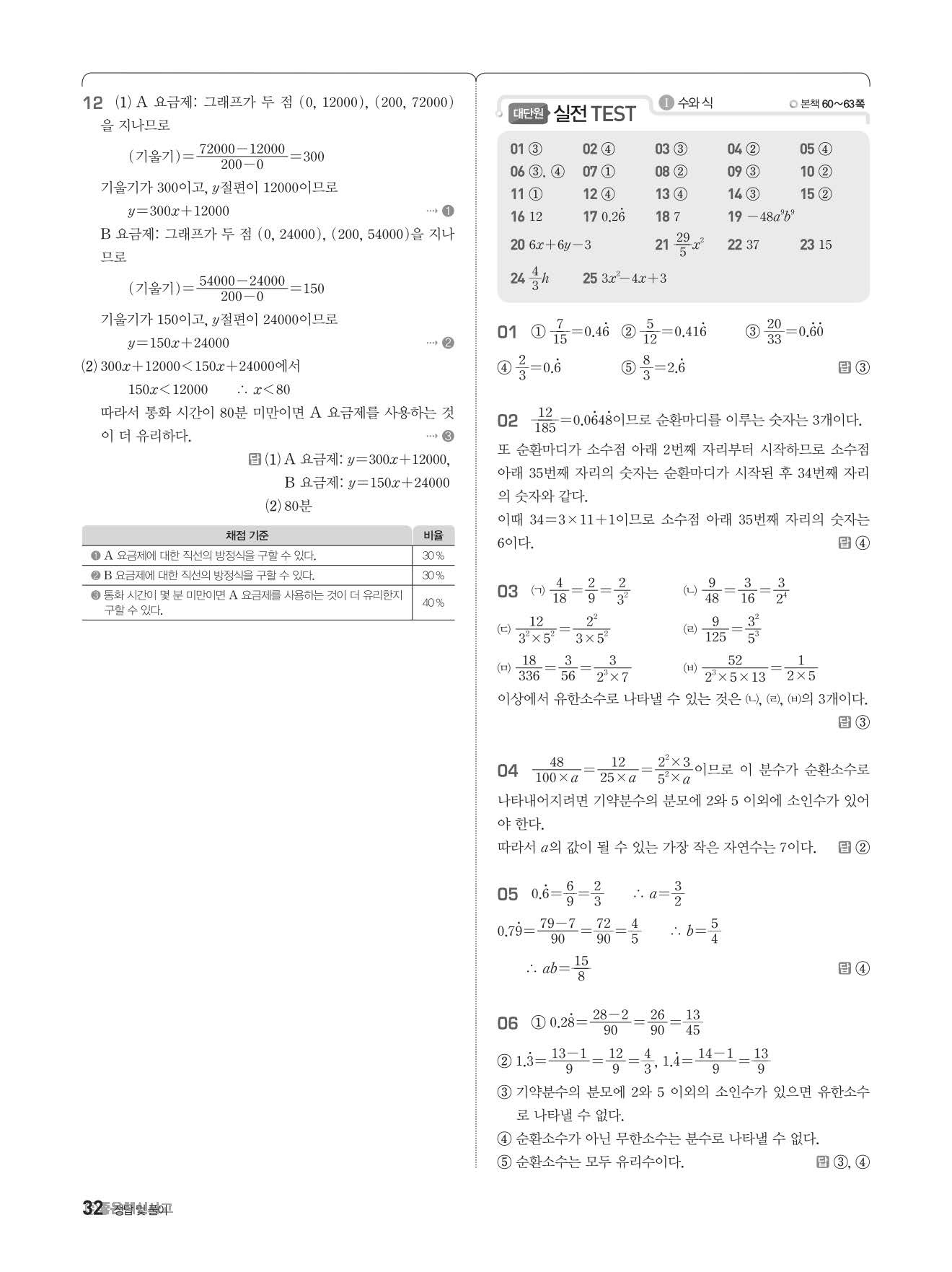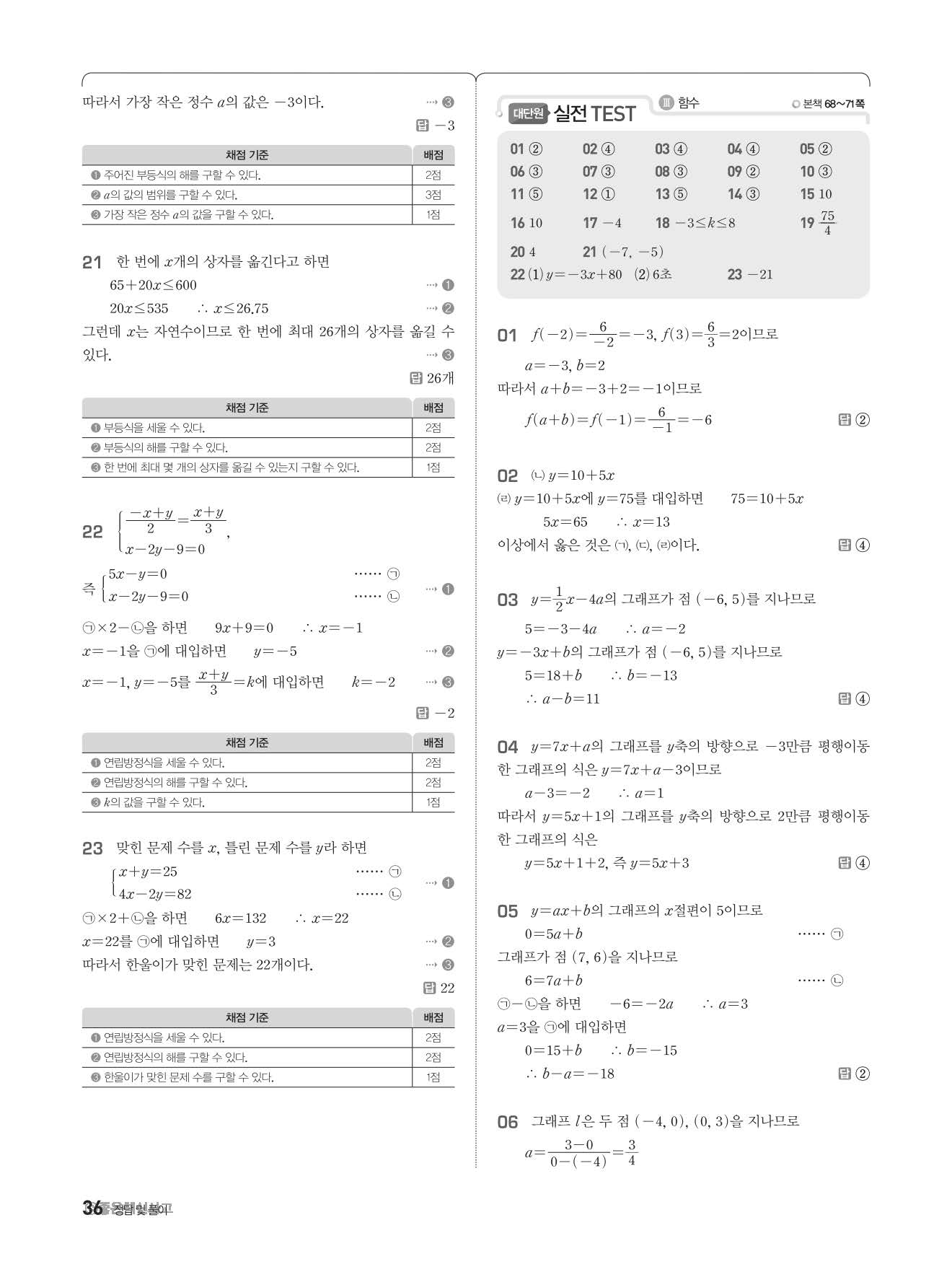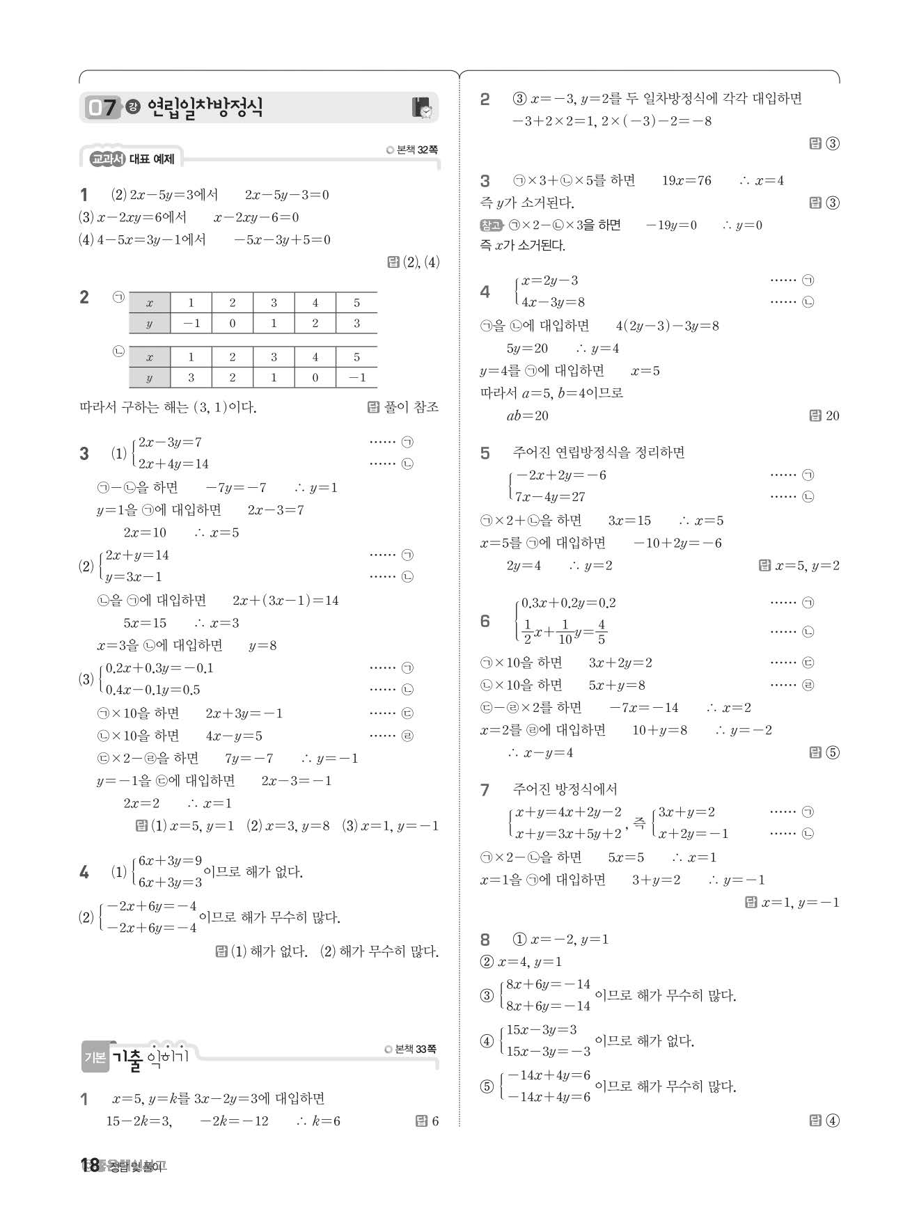 | 천재교육 이준열 중2 수학교과서 답지 | |