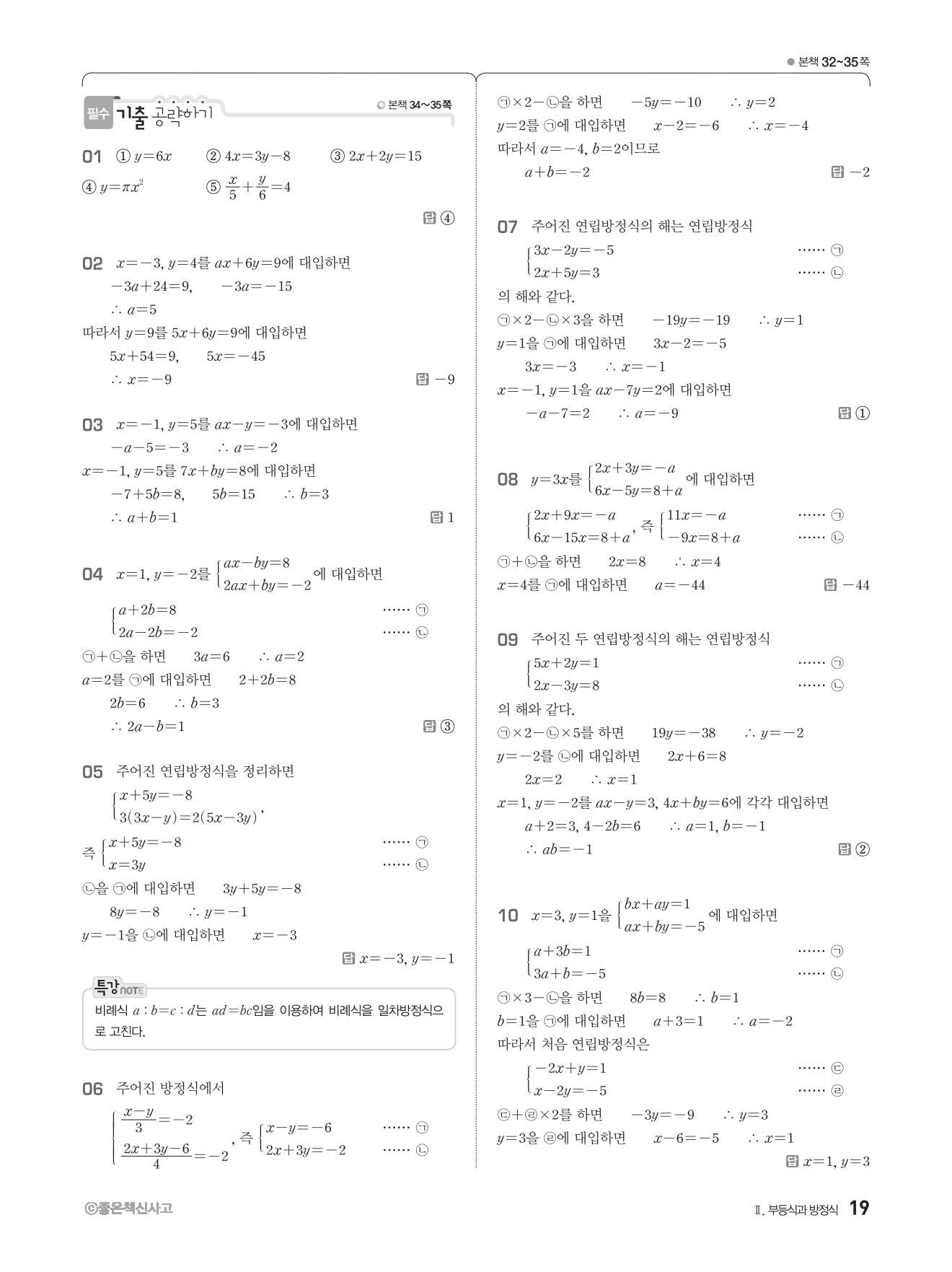 | 교학사 고호경 중2 수학교과서 답지 | |