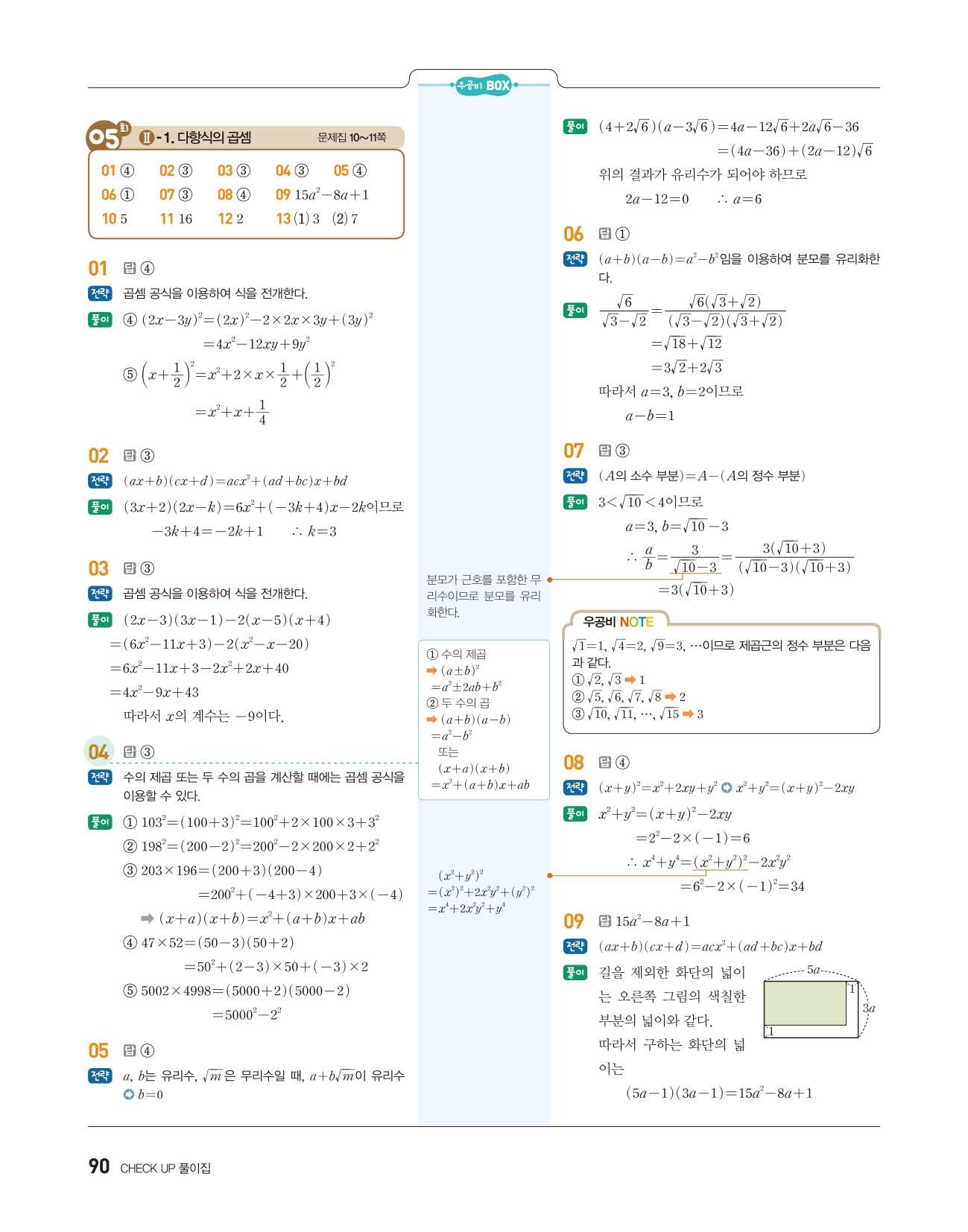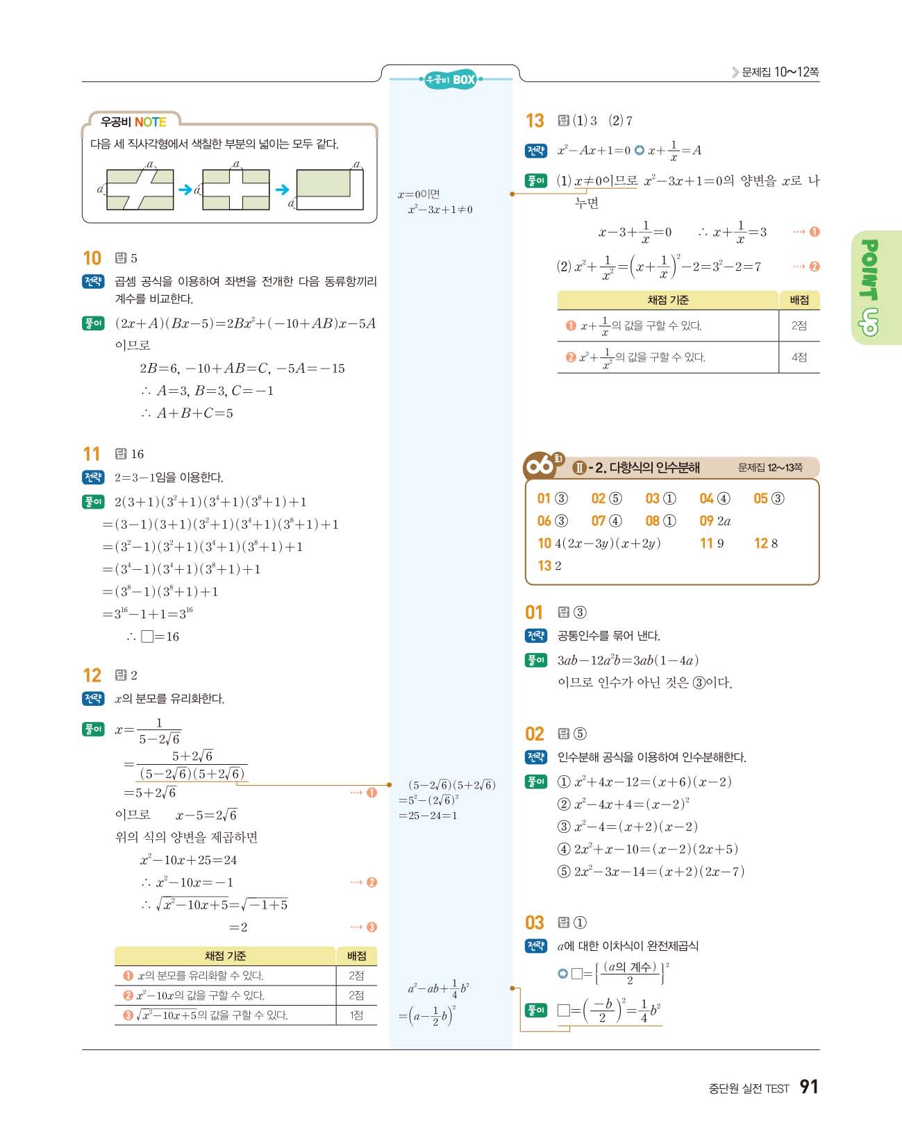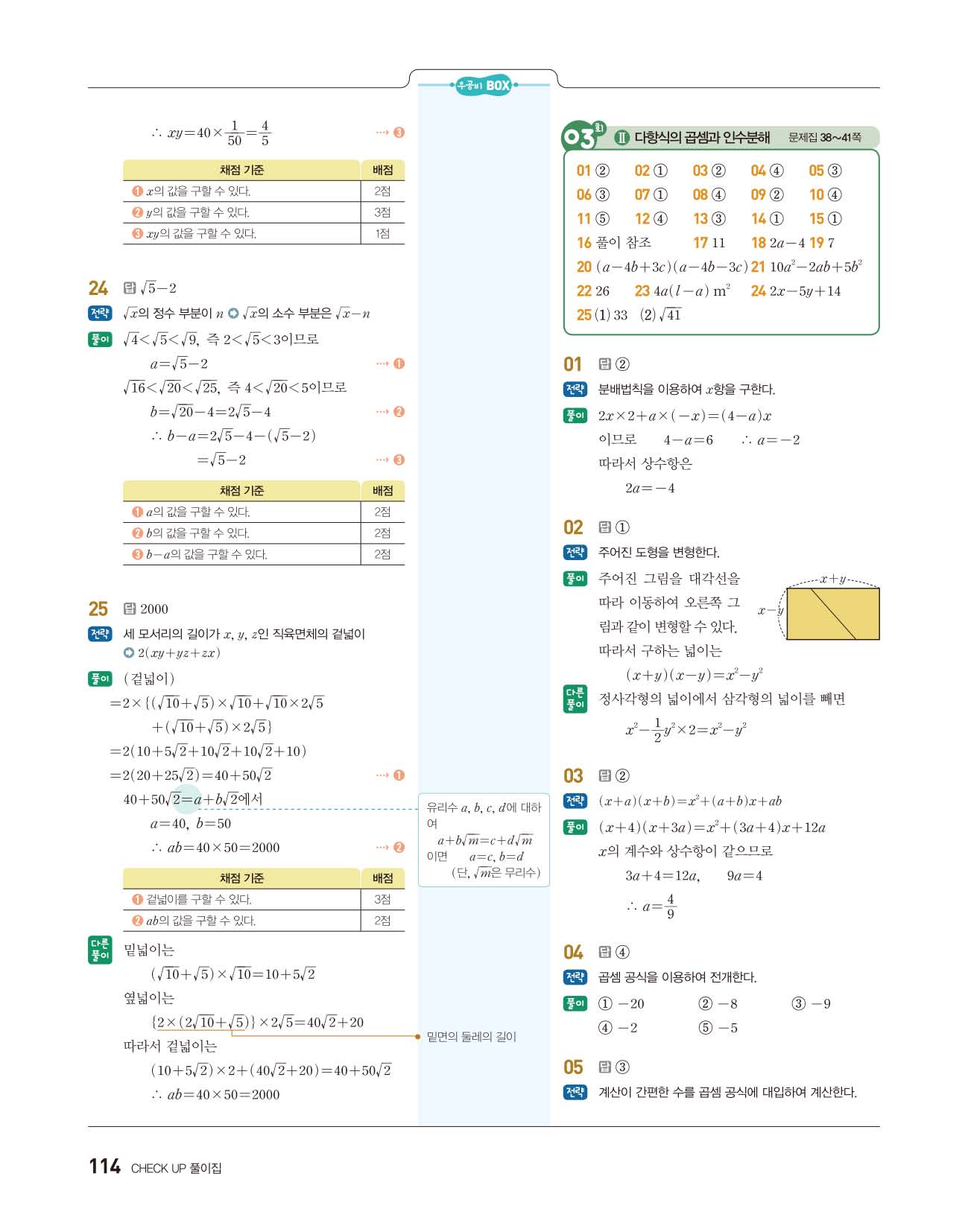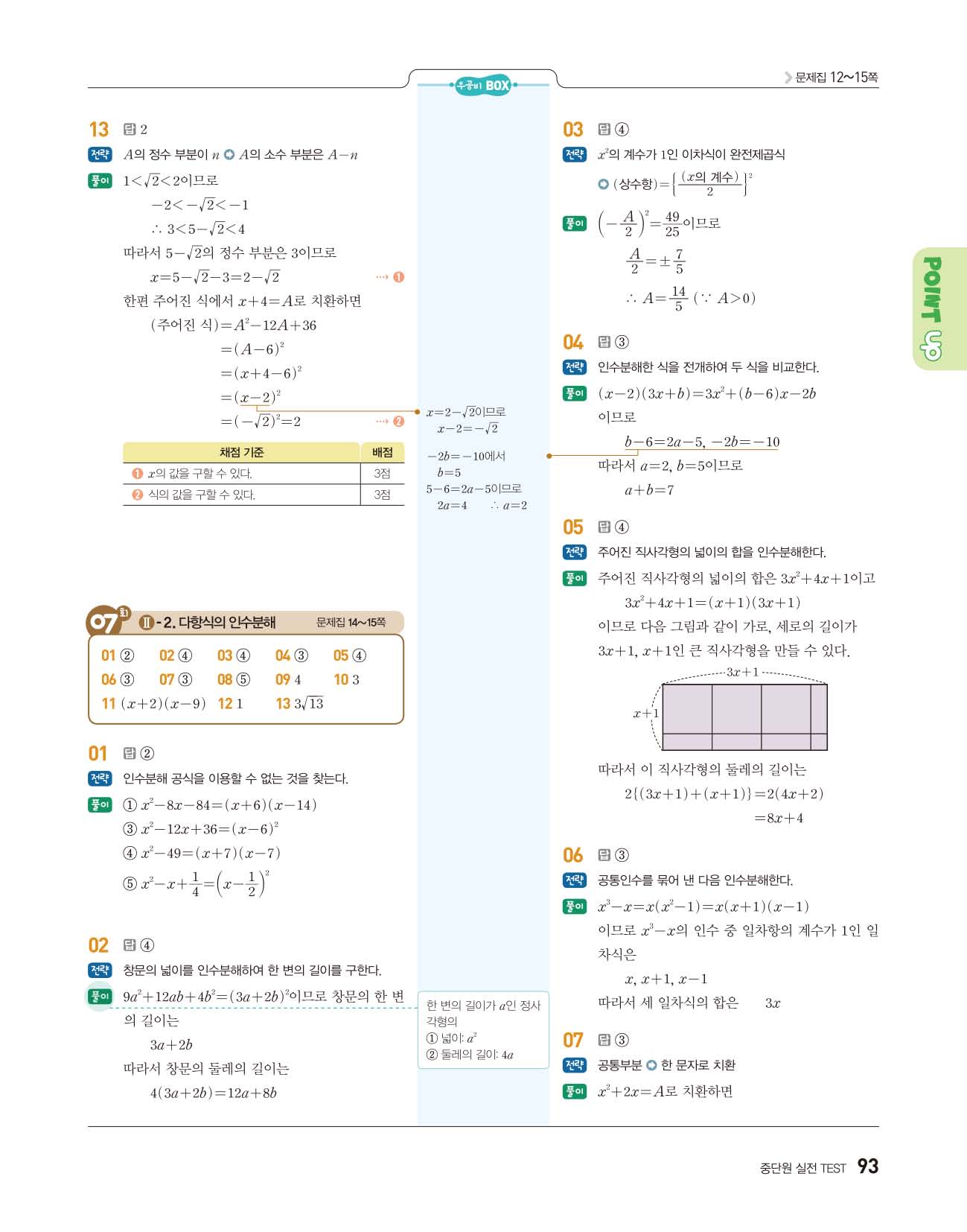 우공비 중등수학 중3상 3-1 답지 해설지 사진답지 빠른답지 모바일최적화