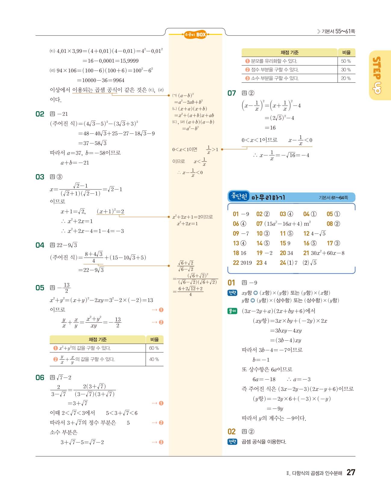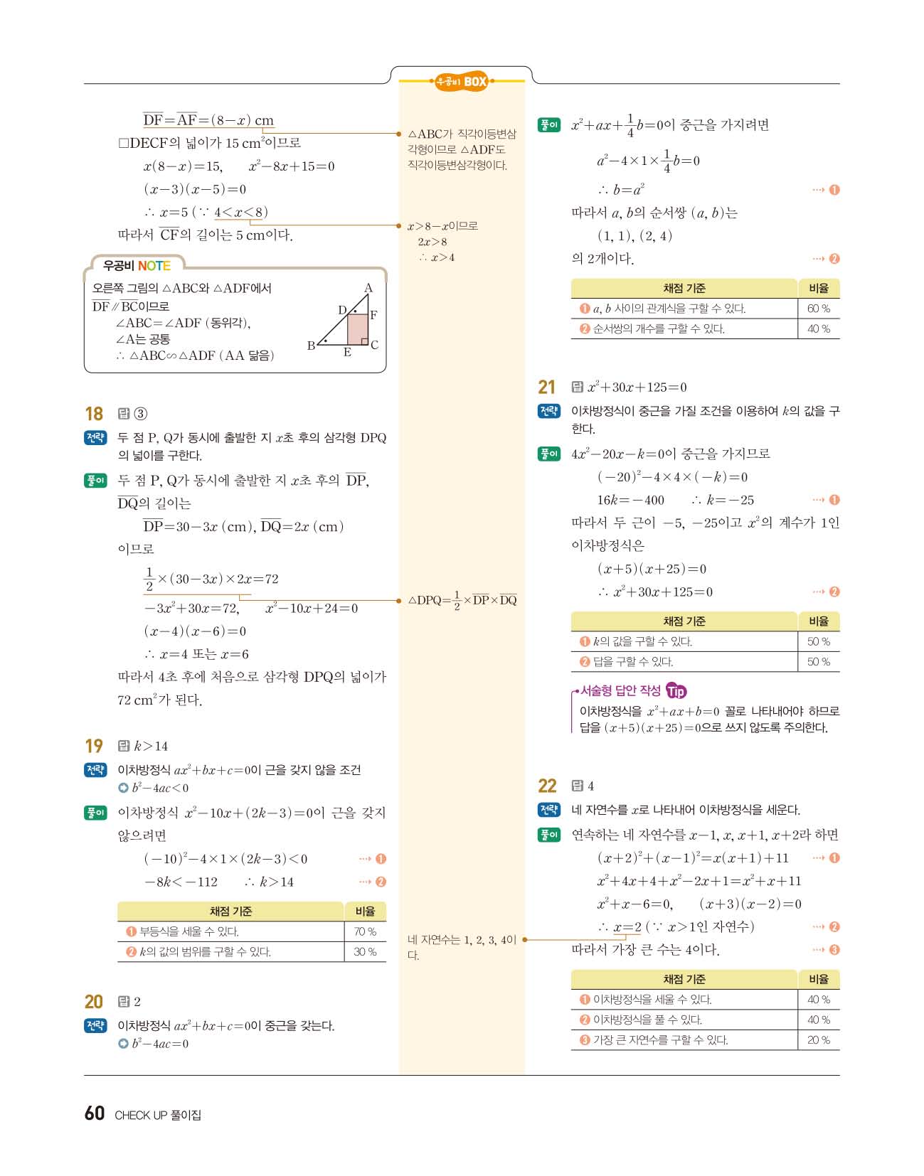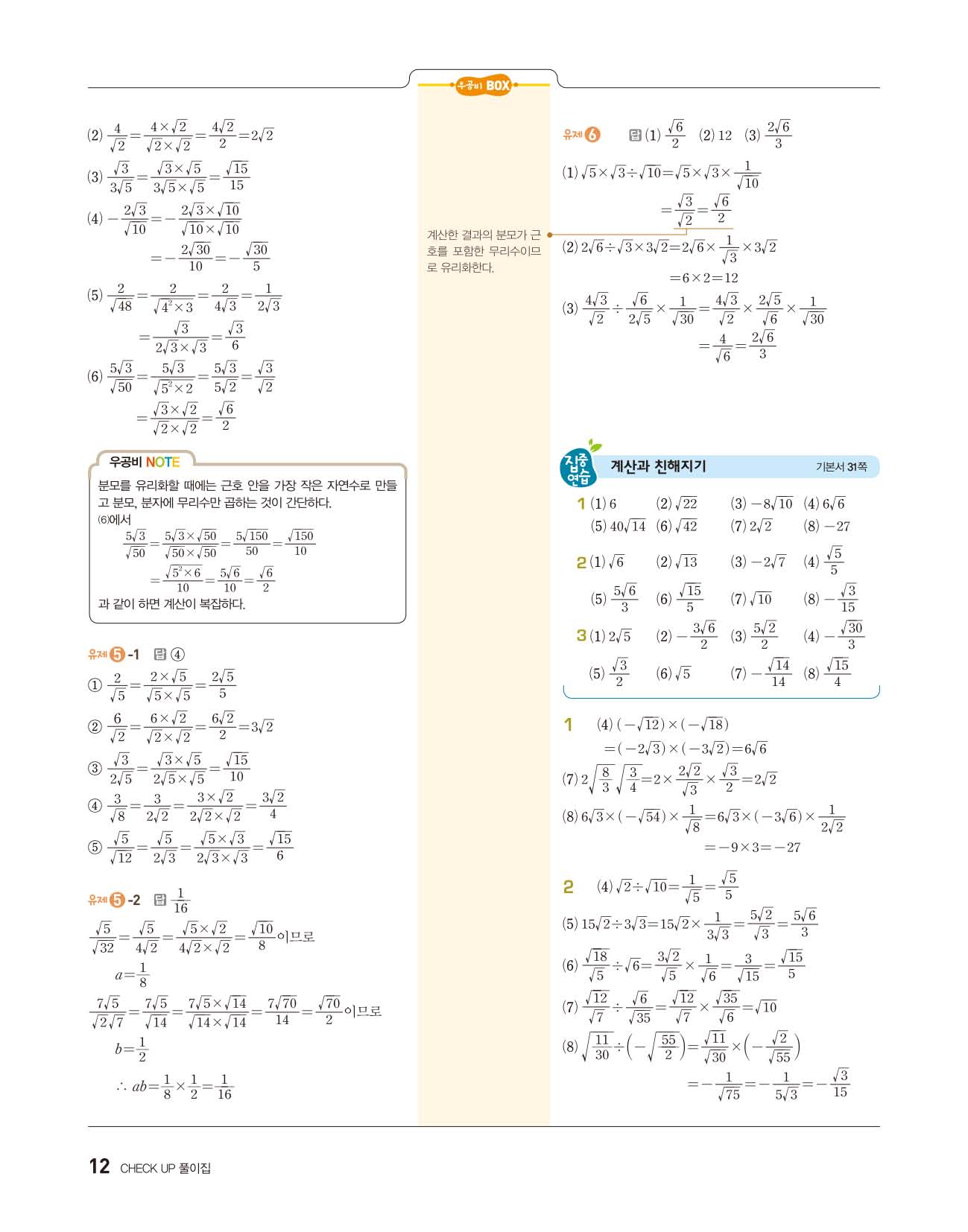 우공비 중등수학 중3상 3-1 답지 해설지 사진답지 빠른답지 모바일최적화